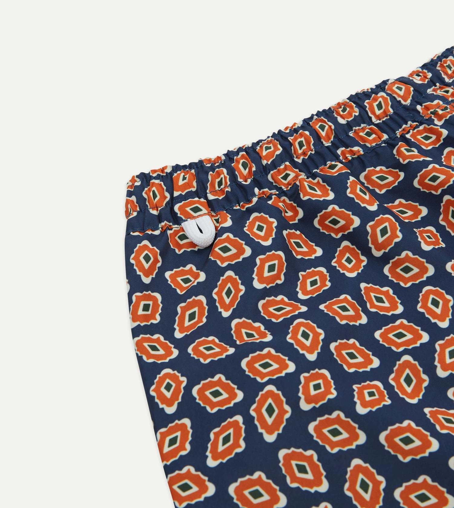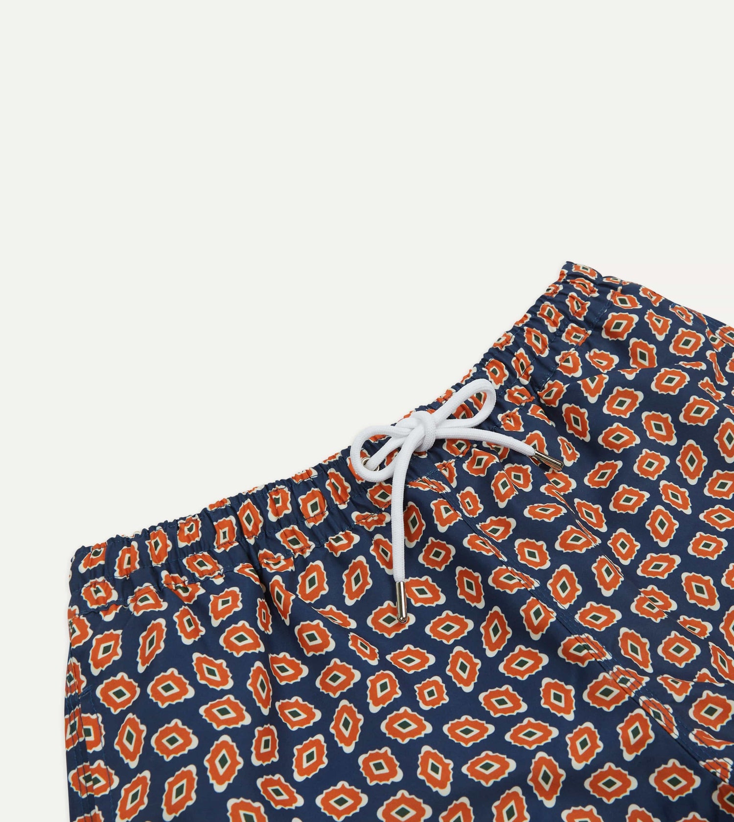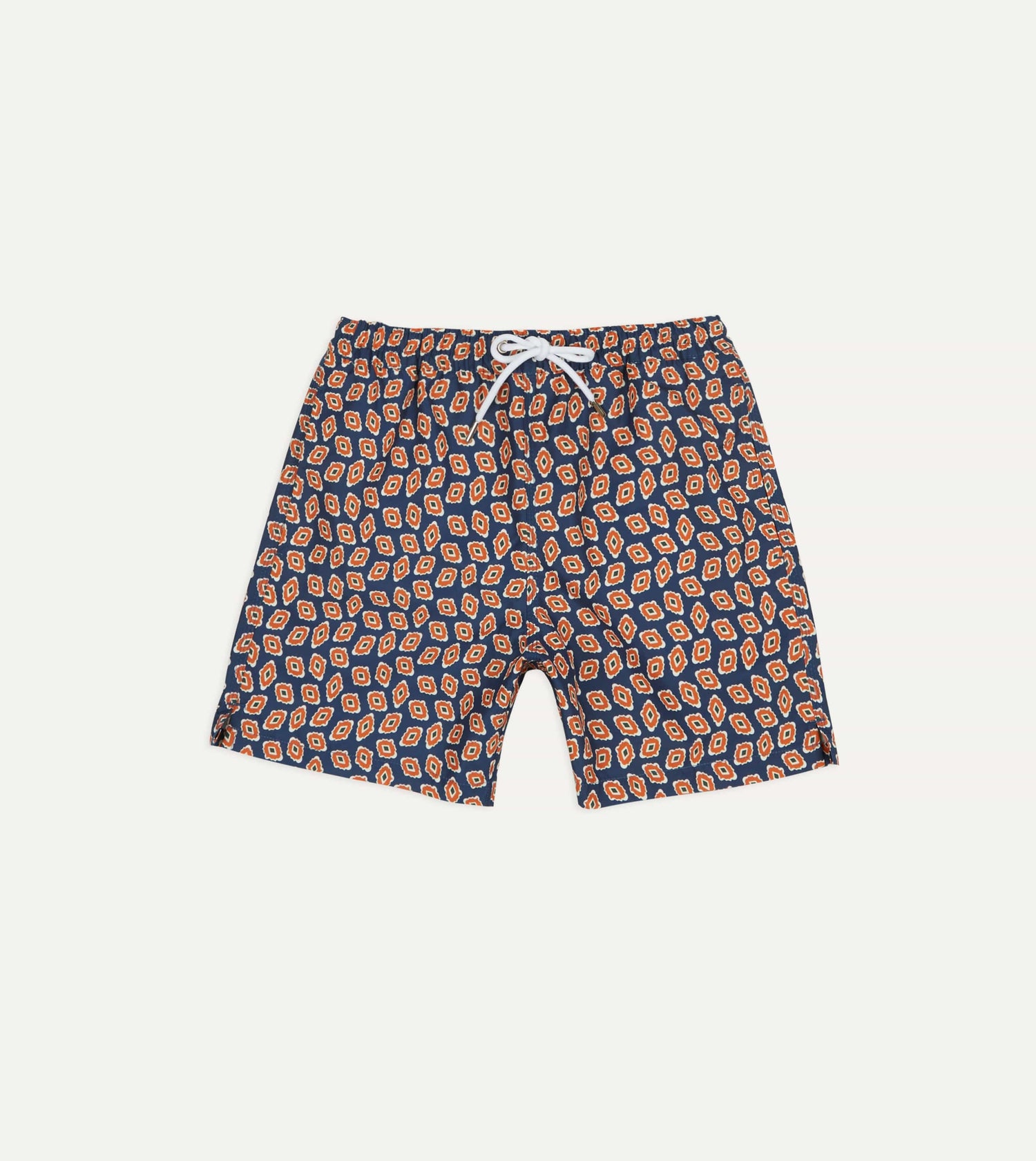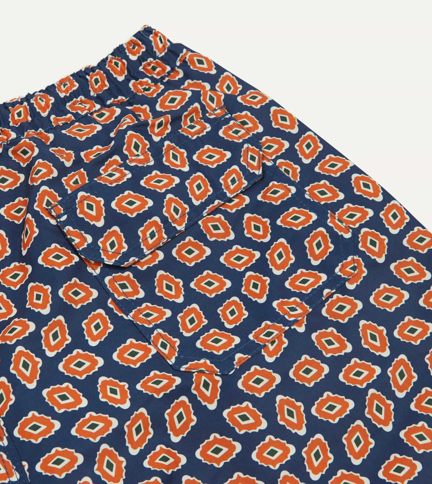 Navy Jumbled Medallion Print Nylon Swim Shorts