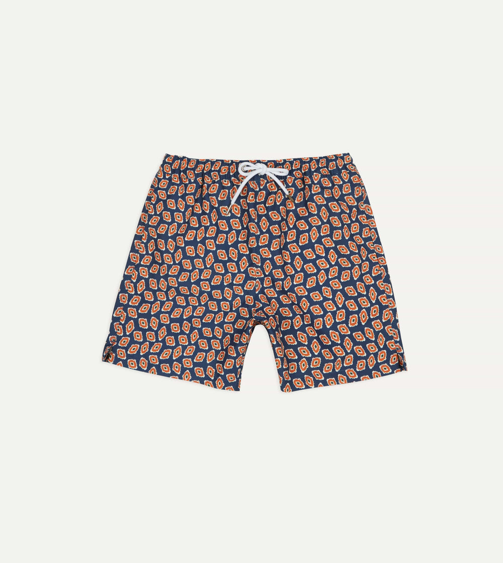 Made from a fast-drying microfibre nylon, these swim shorts feature a full leg and a short hem, redolent of early 20th century seaside glamour.