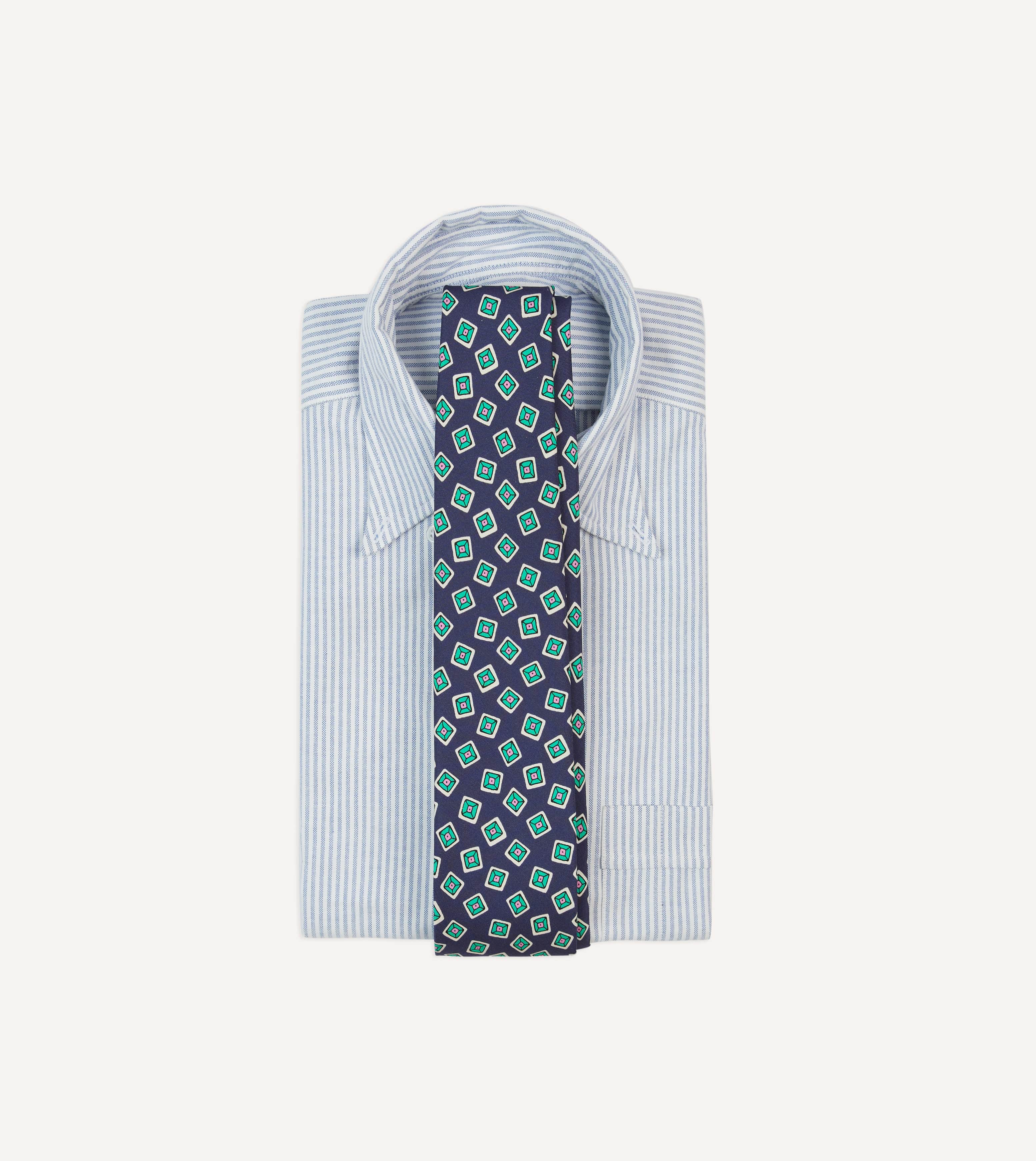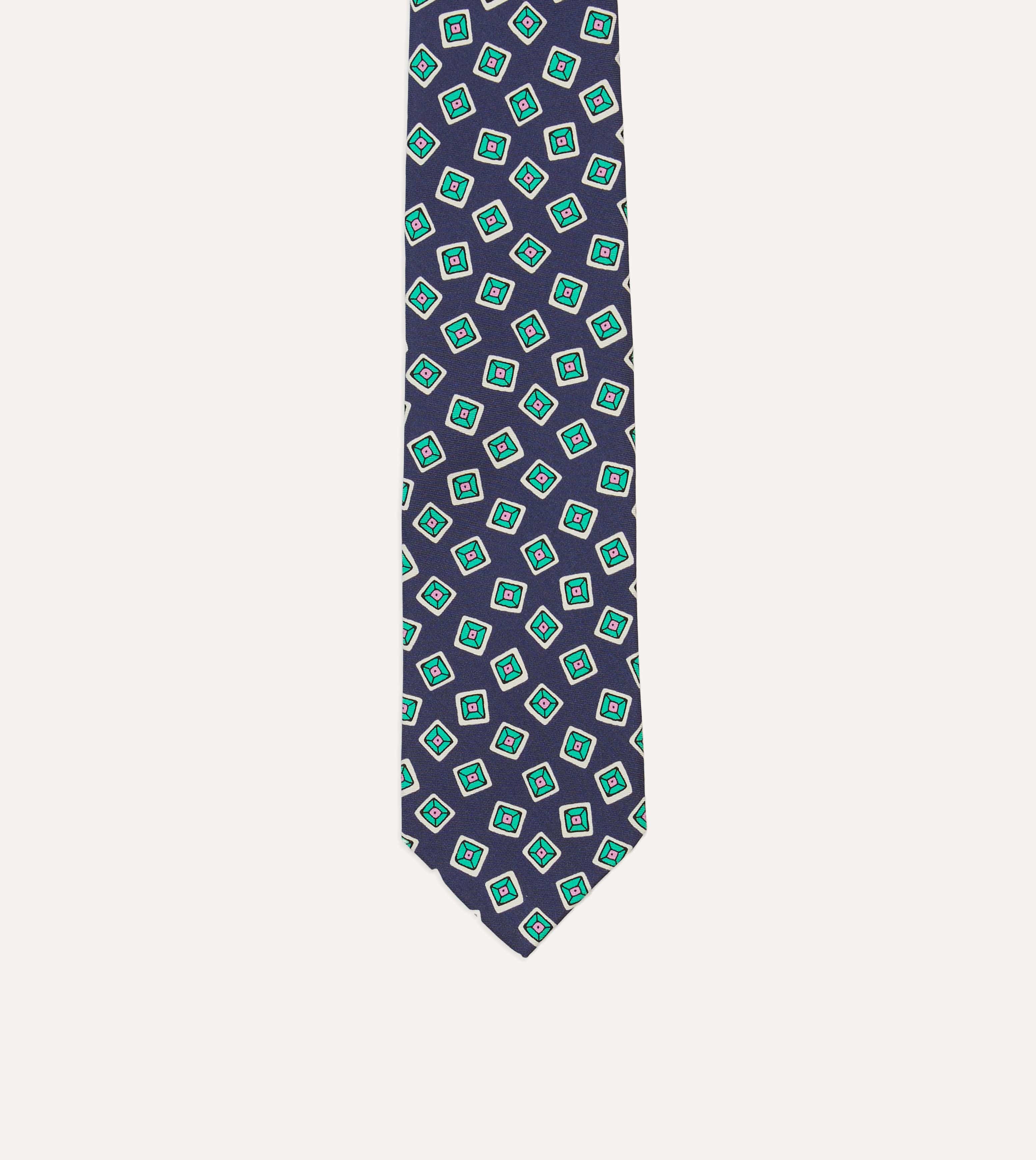 Navy Jumbled Tile Print Silk Self Tipped Tie