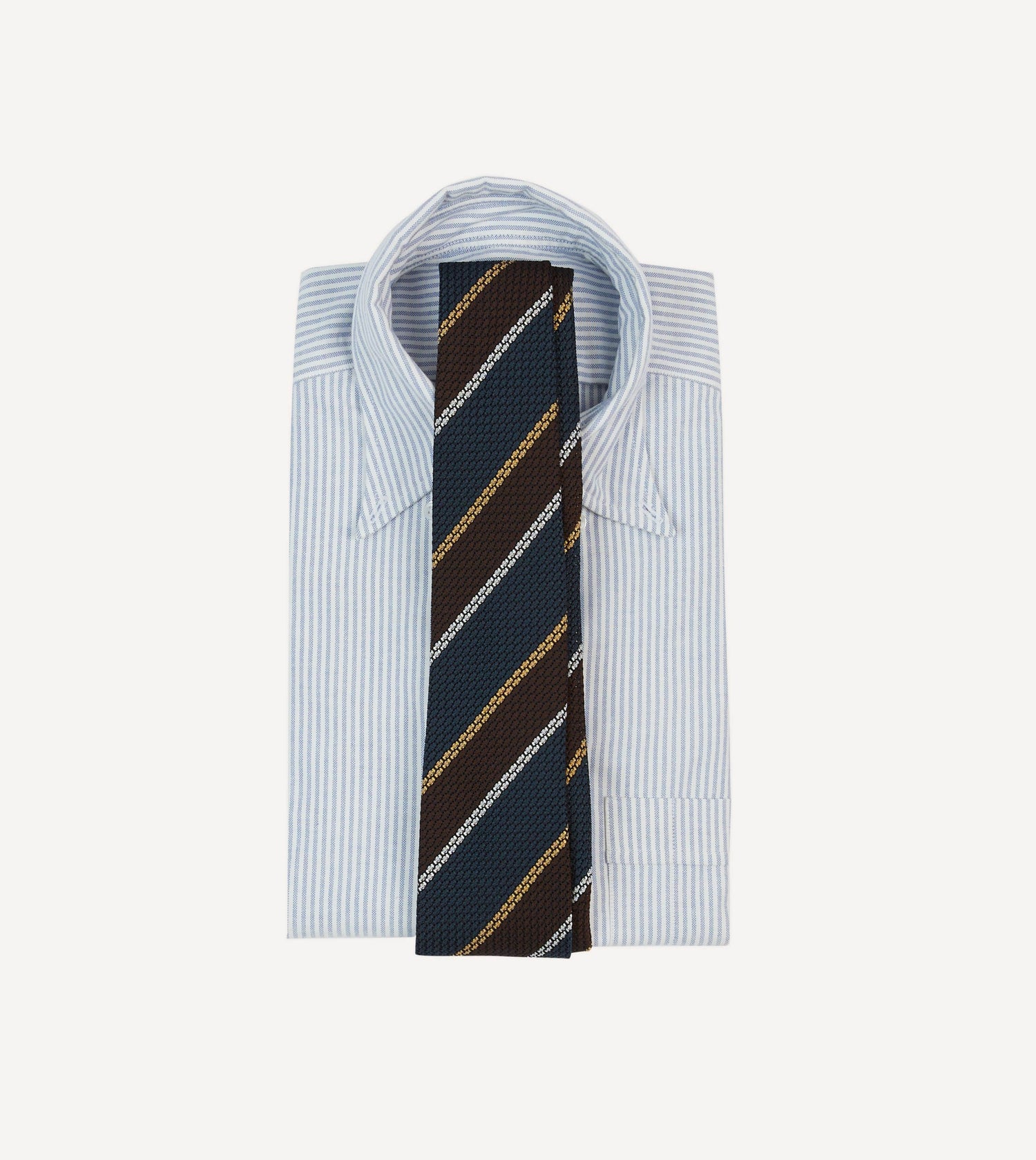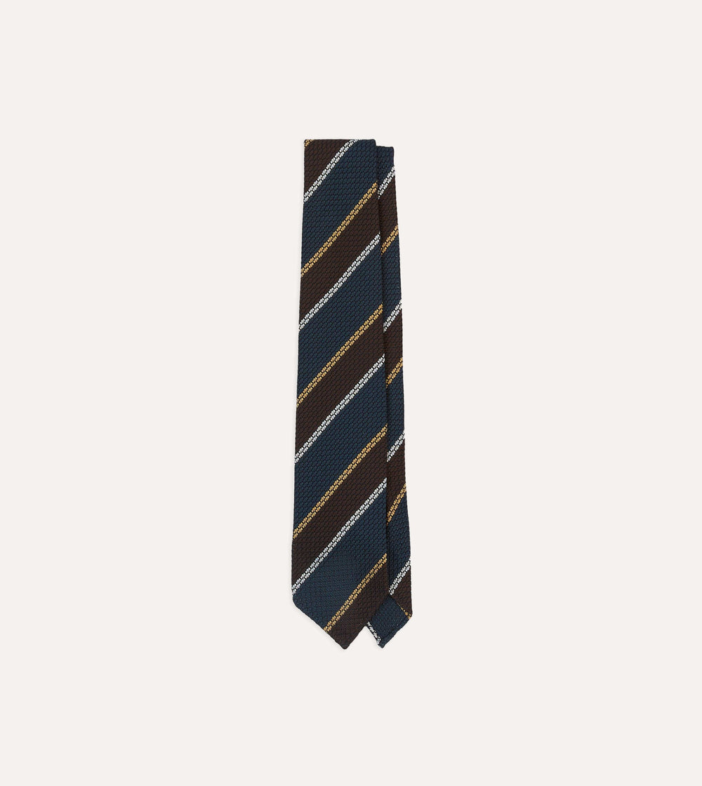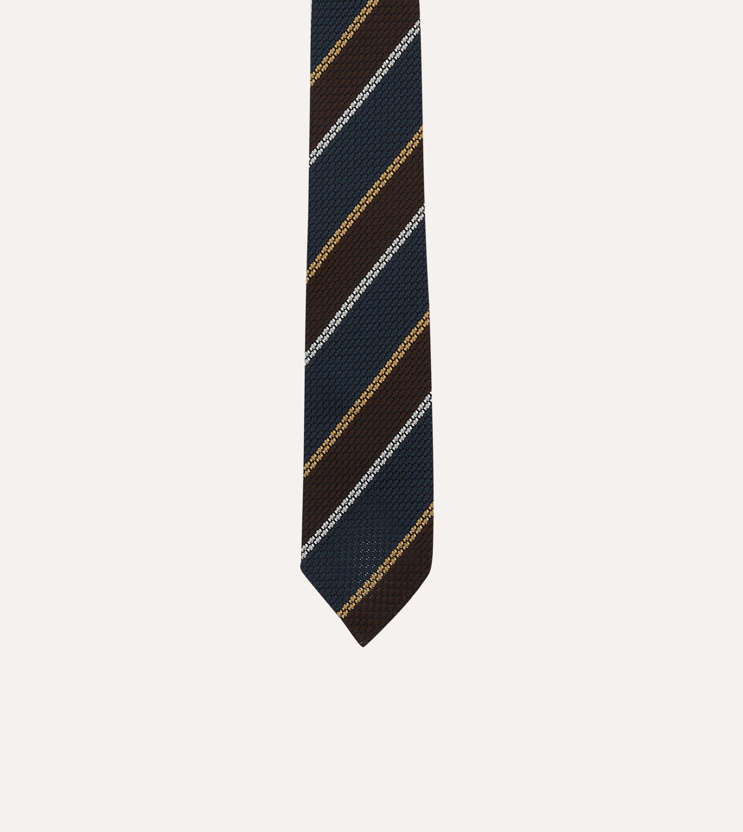 Navy, White and Brown Stripe Hand Rolled Silk Grenadine Tie
