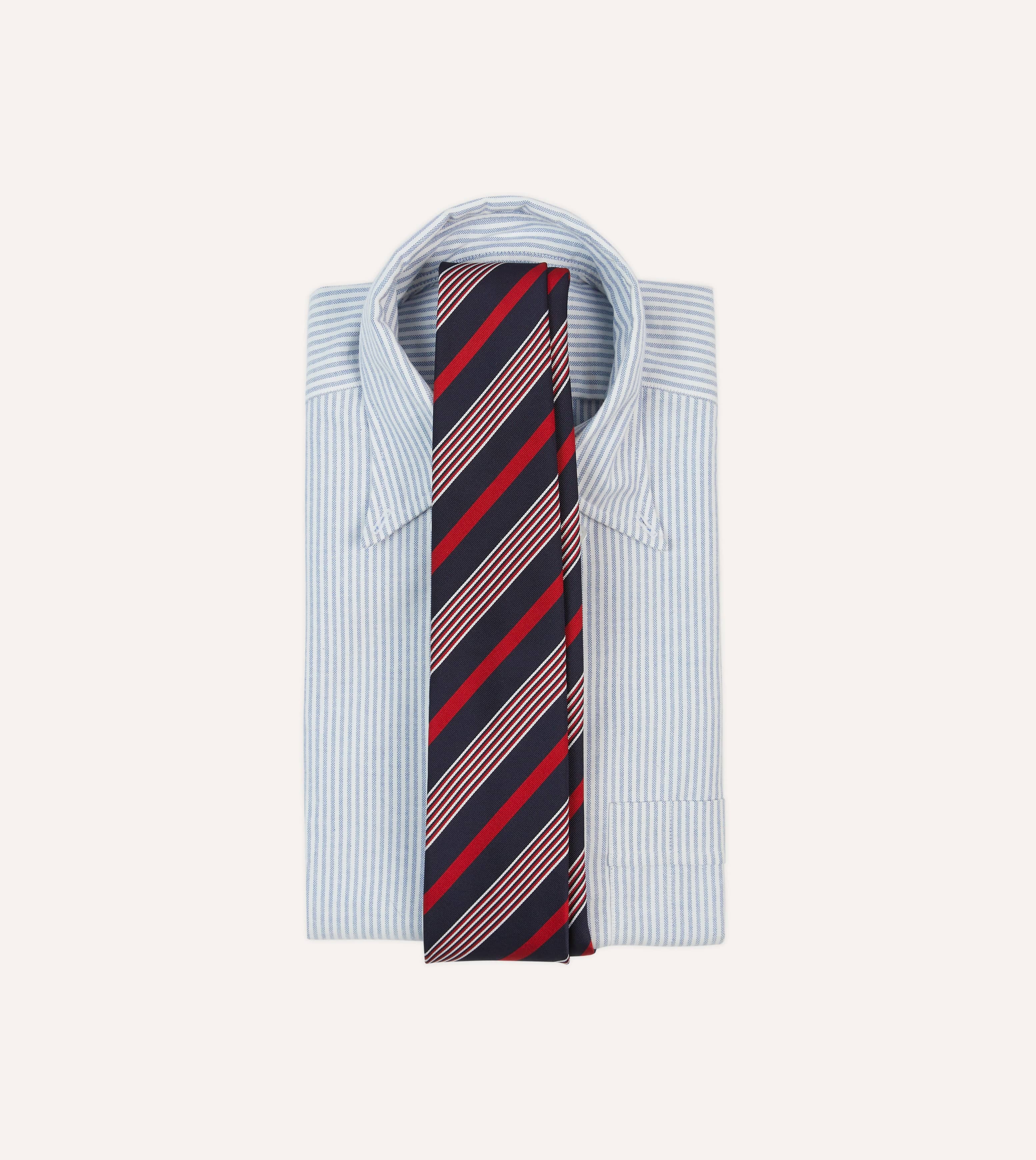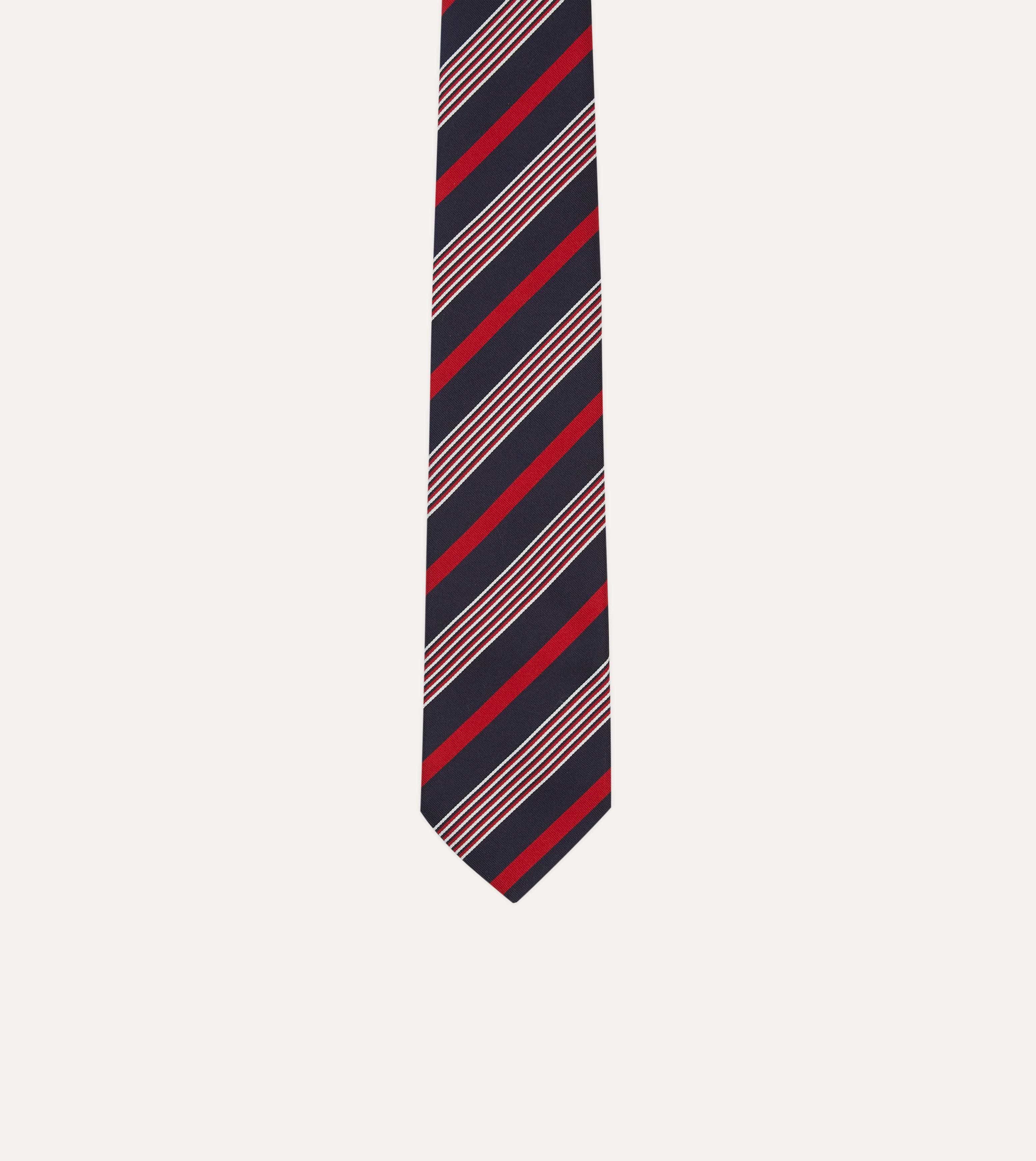 Navy, White and Red Multi Stripe Mogador Silk Tipped Tie