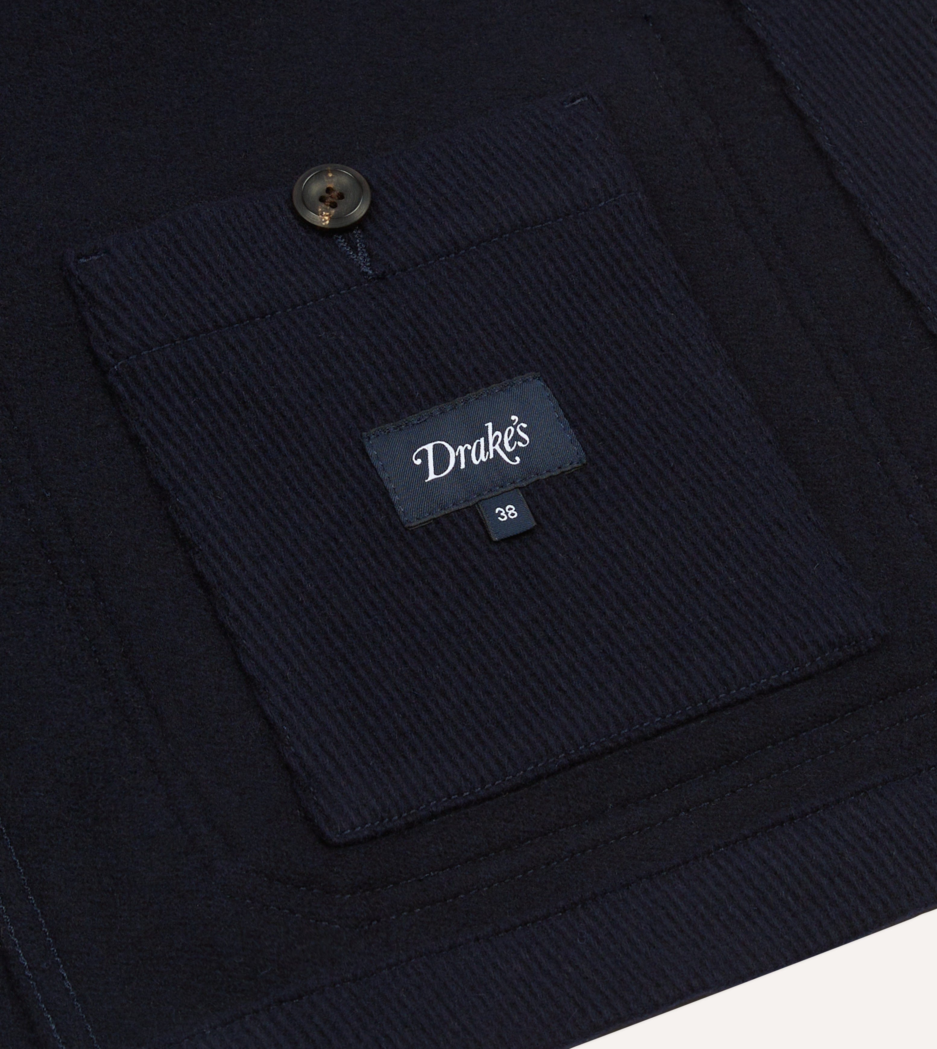 This version is made from an 18oz virgin wool, with three outer pockets (plus a signature Drake's ticket pocket peaking out on the left-hand side), and one inner pocket. It is cut generously, with a slightly boxy shape recalling the original workwear garments worn around the turn of the century, as opposed to their slimmed-down, contemporary counterparts.