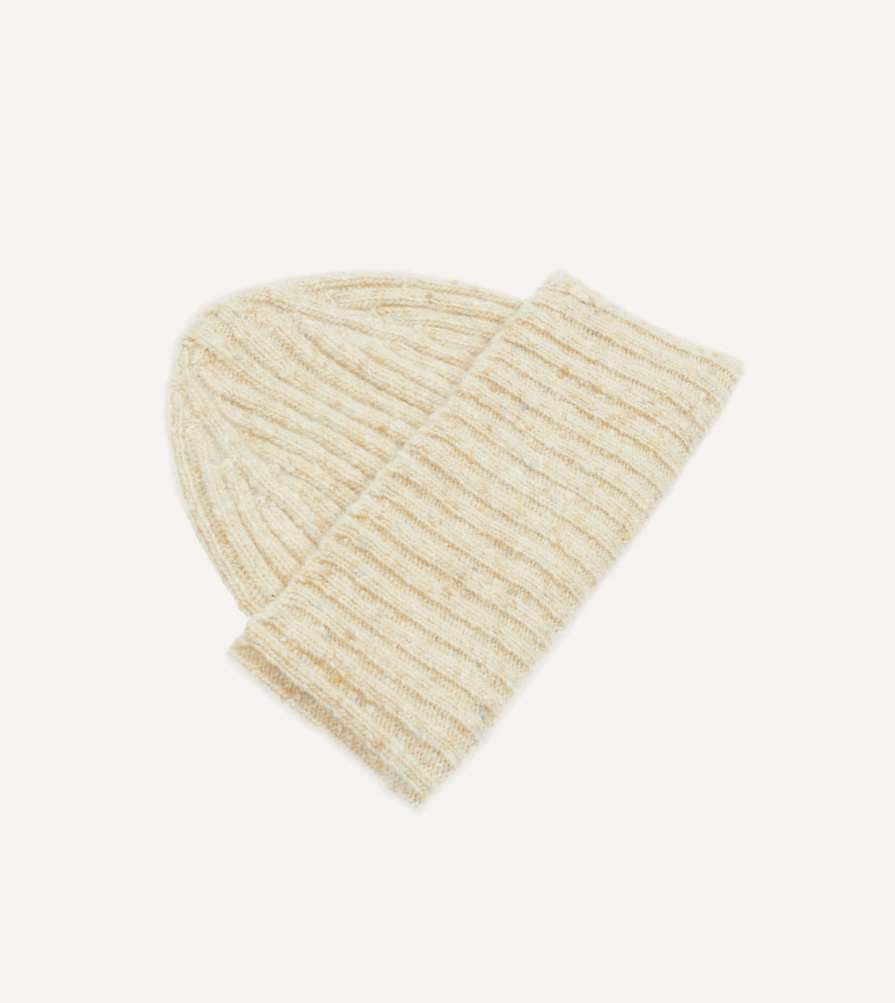 Oatmeal Ribbed Merino Donegal Knit Cap