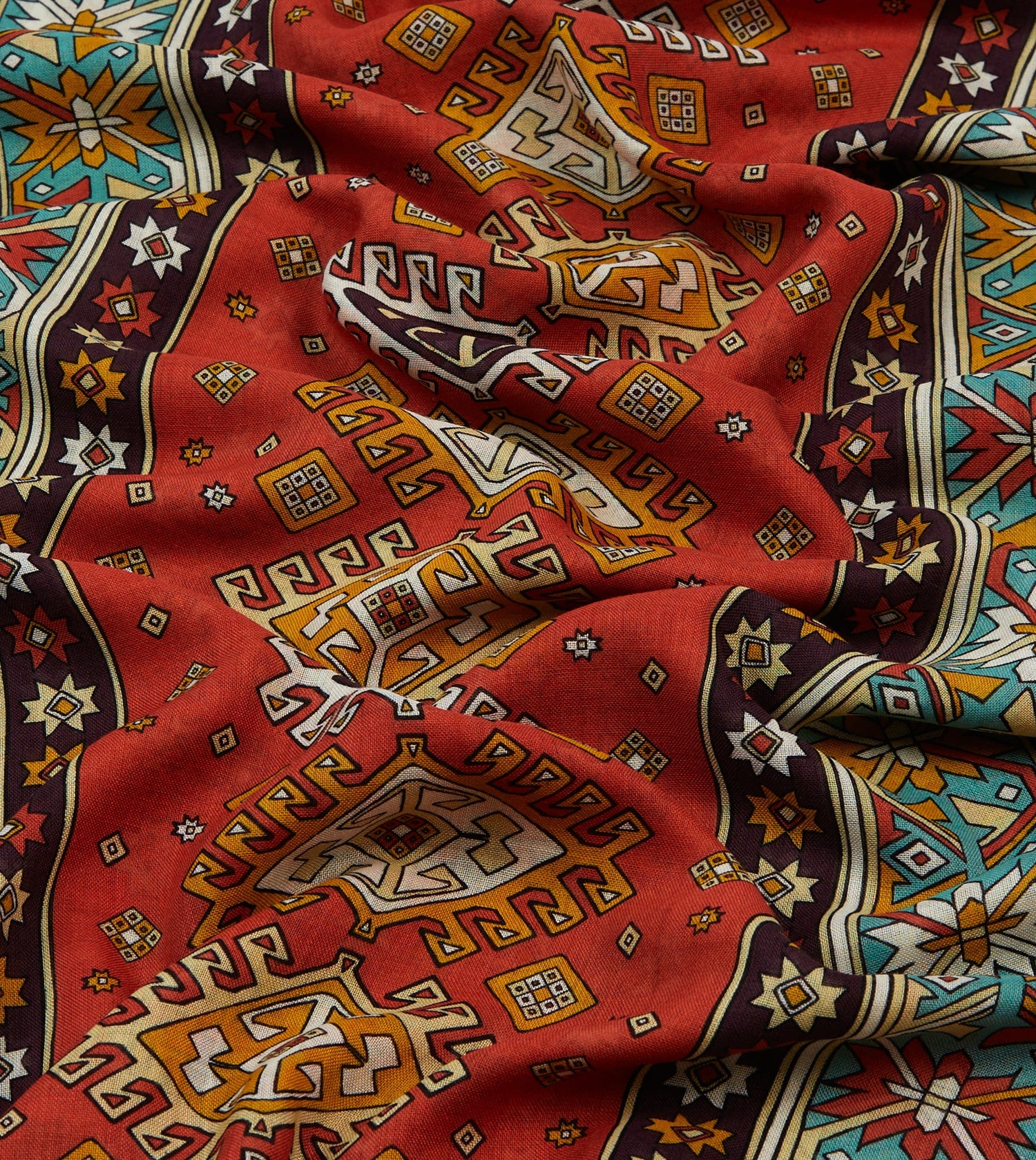 Red and Turquoise Kilim Print Tubular Wool Silk Scarf