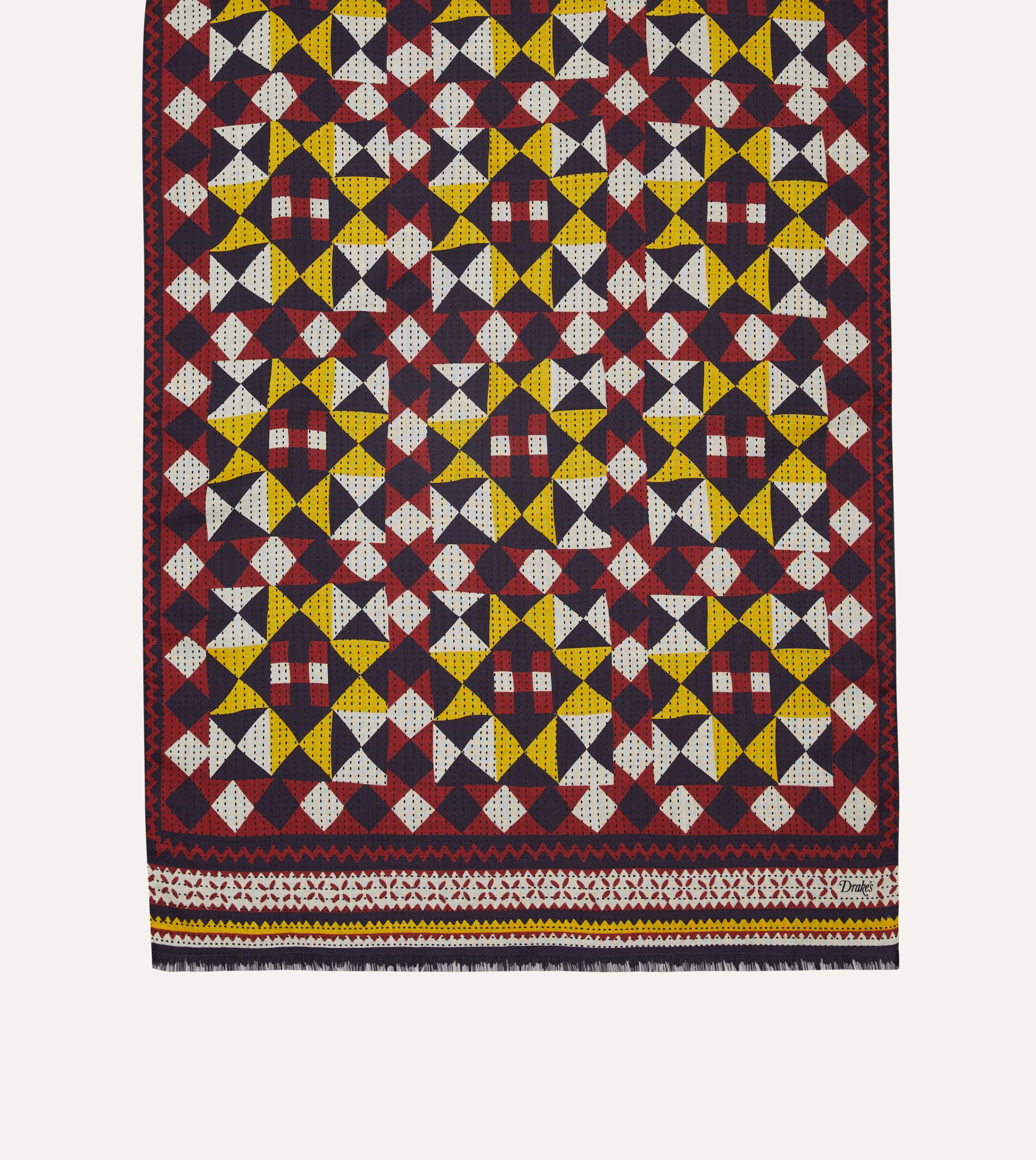 Red and Yellow Patchwork Print Wool-Silk Scarf