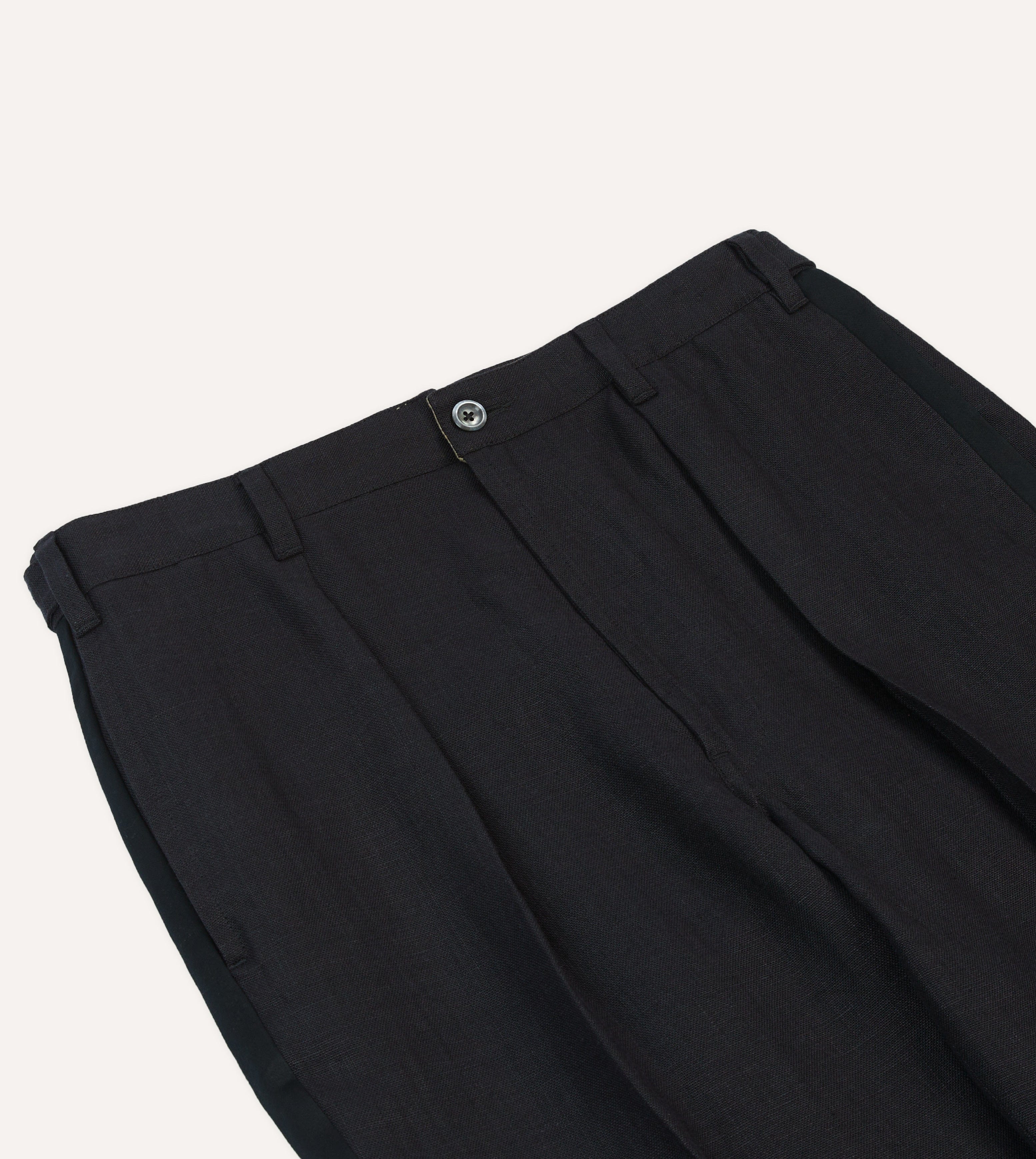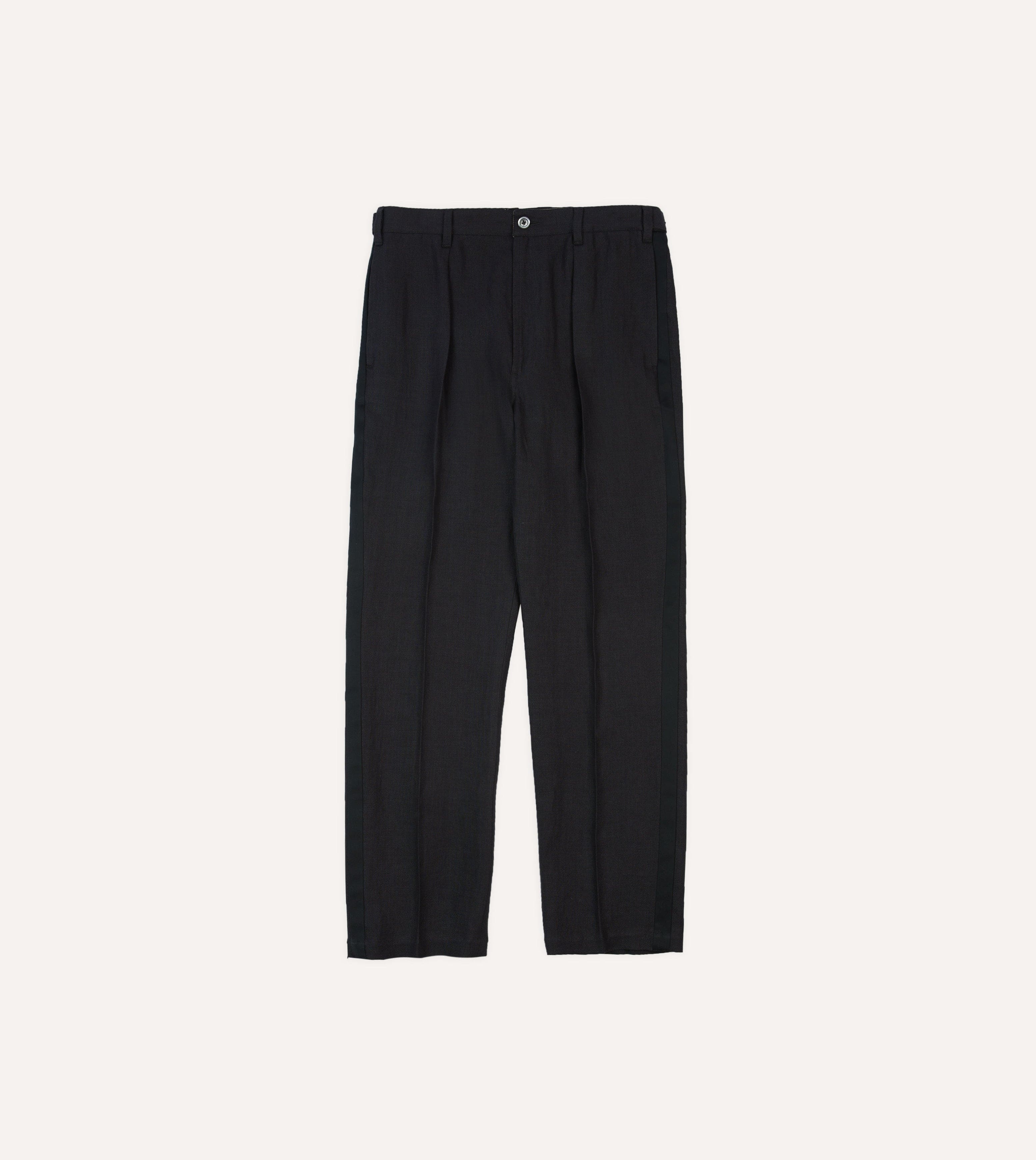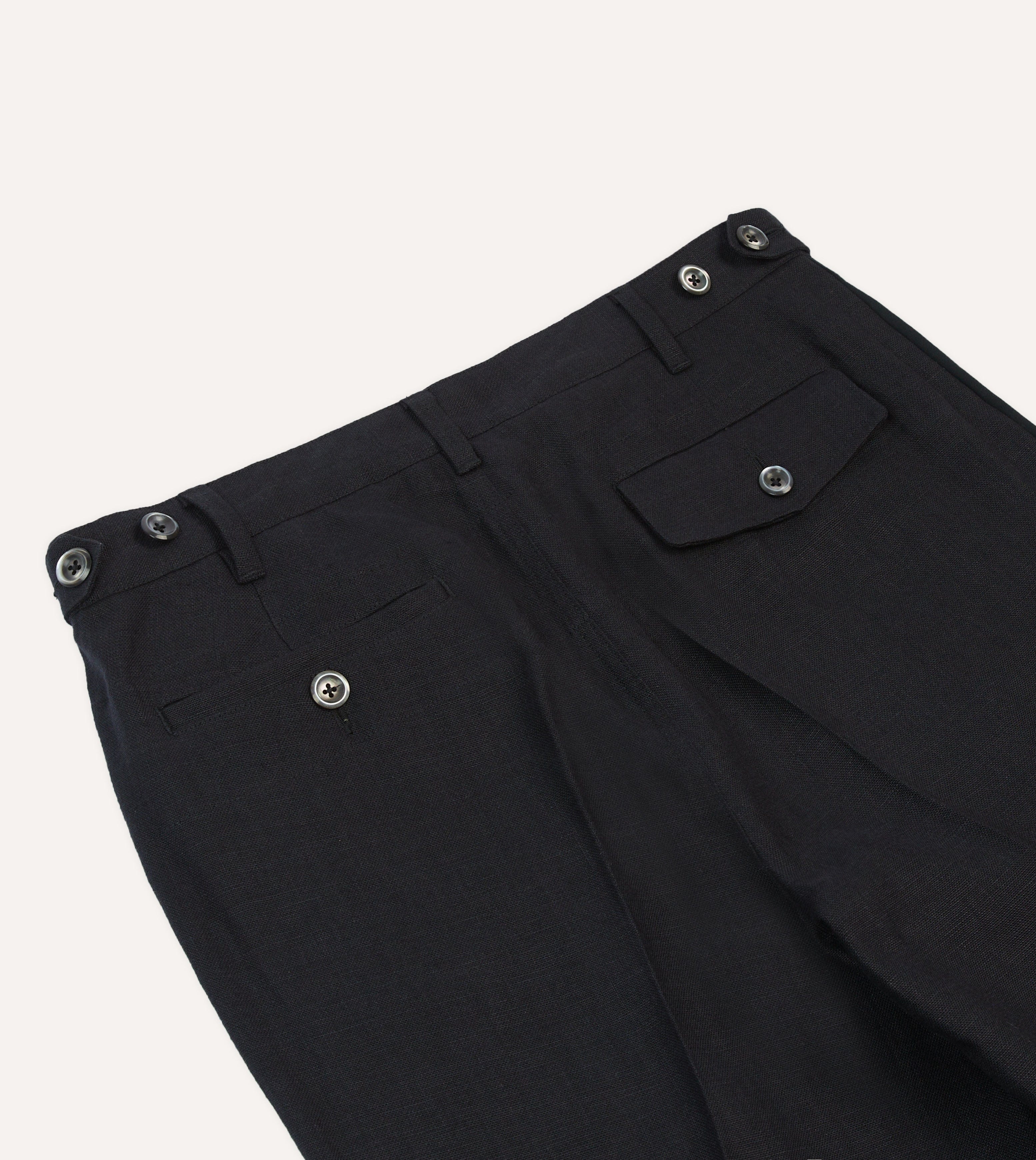 Crafted from a 100% Irish linen, the trousers feature understated details such as side adjusters and French bearer buttoning.