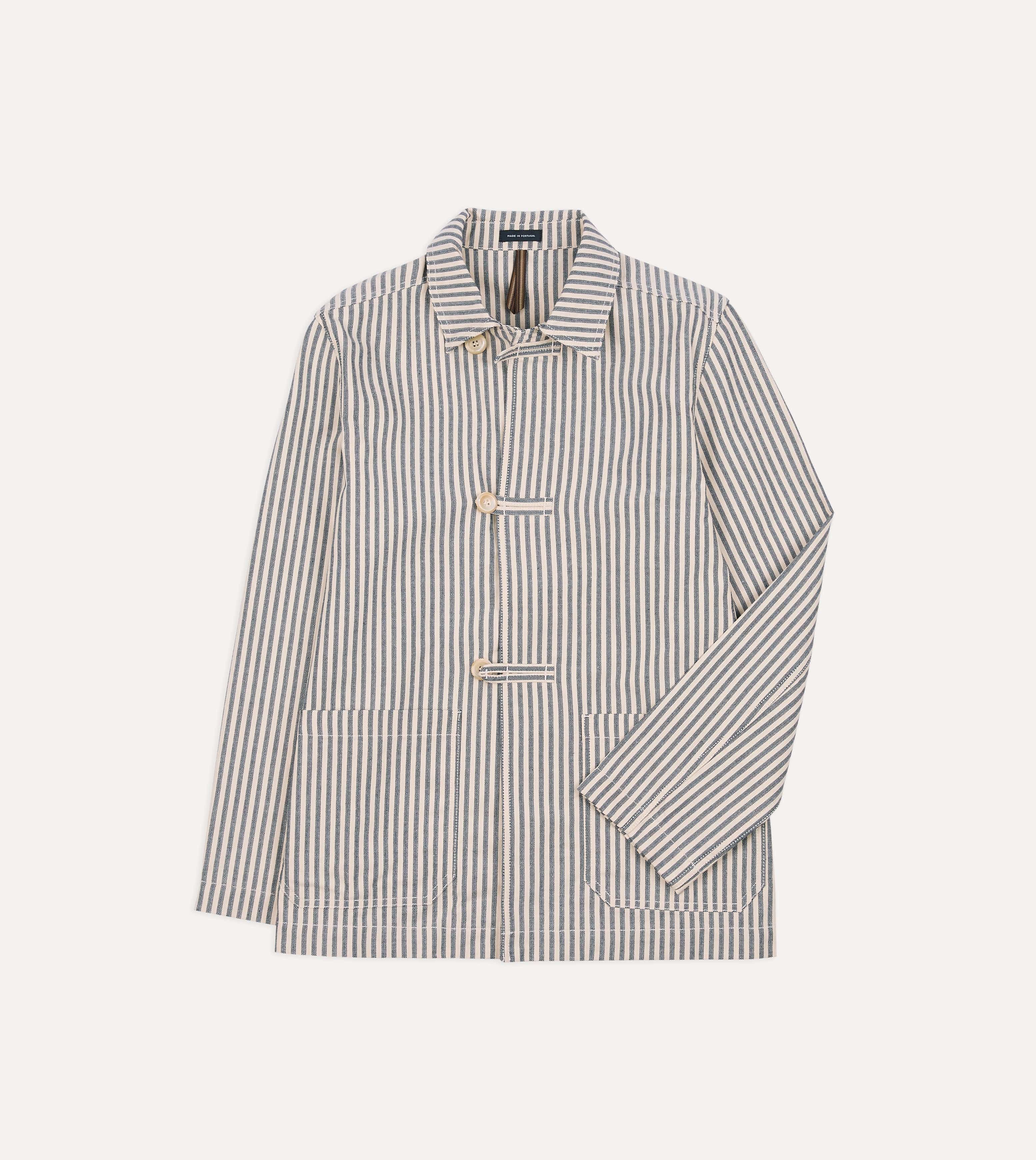 Blue and Ecru Stripe Cotton-Linen Deck Chore Jacket