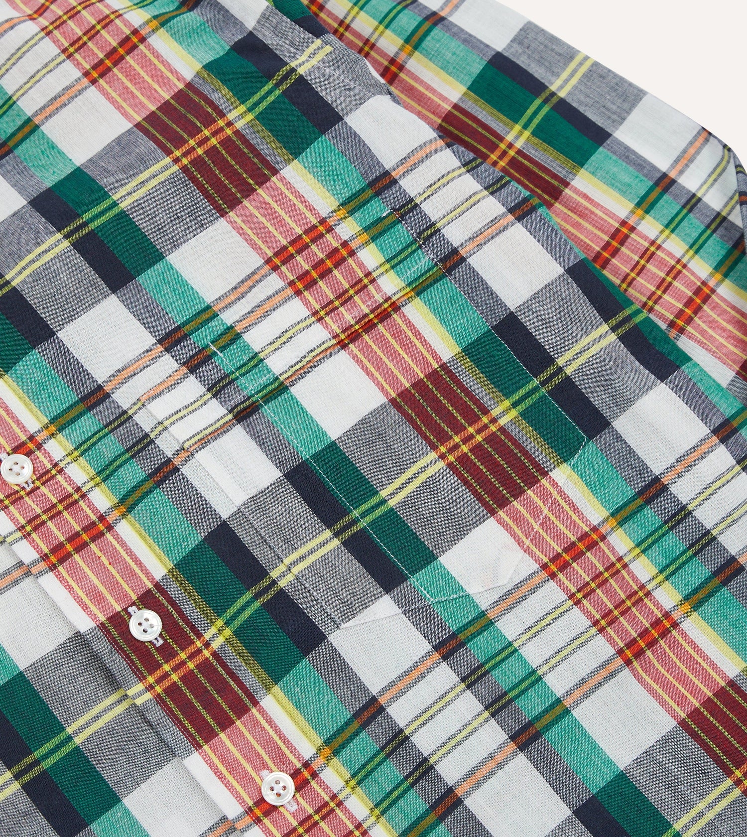 Blue and Red Madras Check Cotton Button-Down Shirt