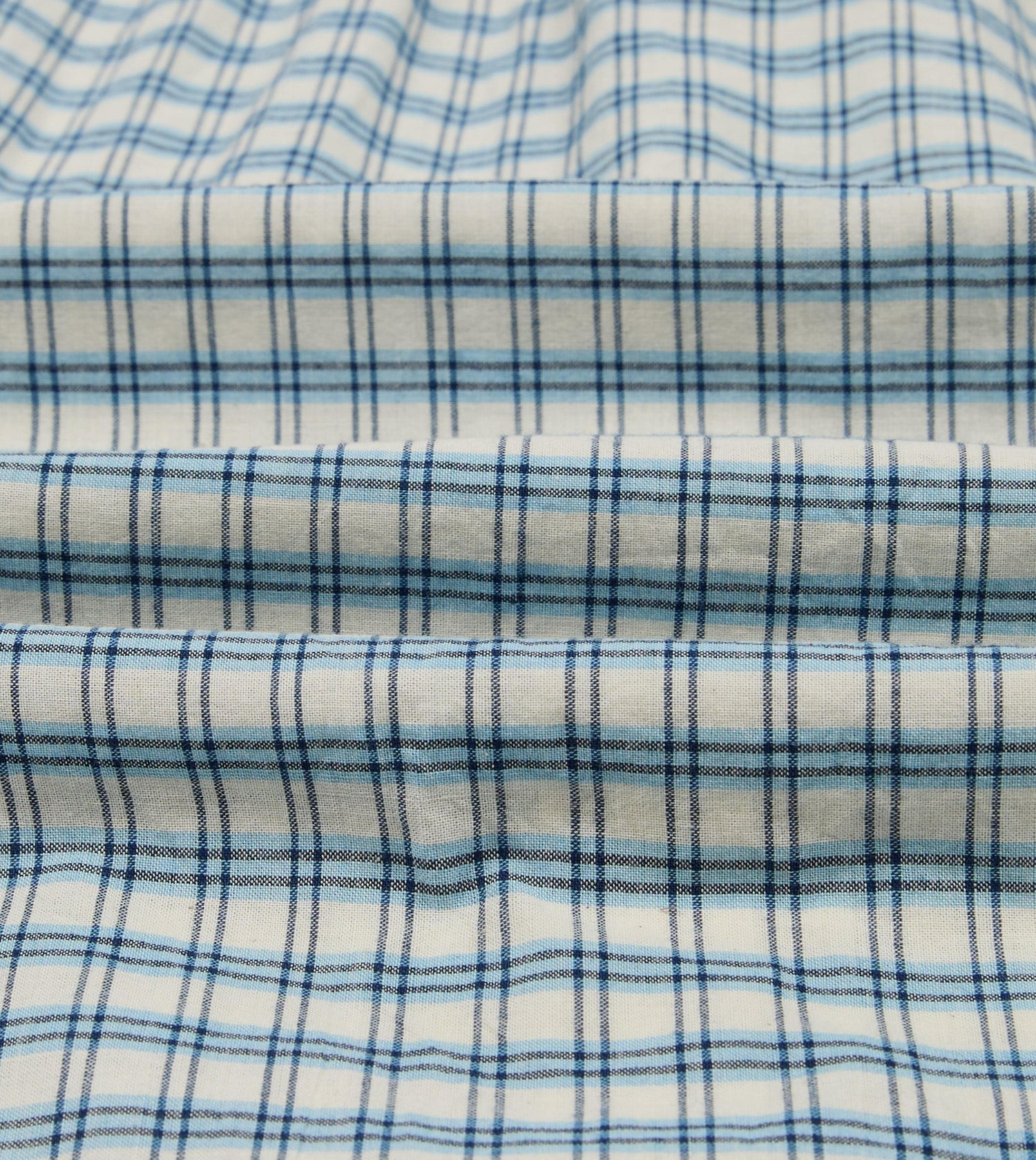 A lightweight warm-weather essential, made in Somerset from an authentic Indian Madras cotton in an exclusive check of sun-bleached colours. The open weave and breezy handle make it ideal for the hotter months, with a relaxed fit that wears well untucked or layered under lightweight tailoring.