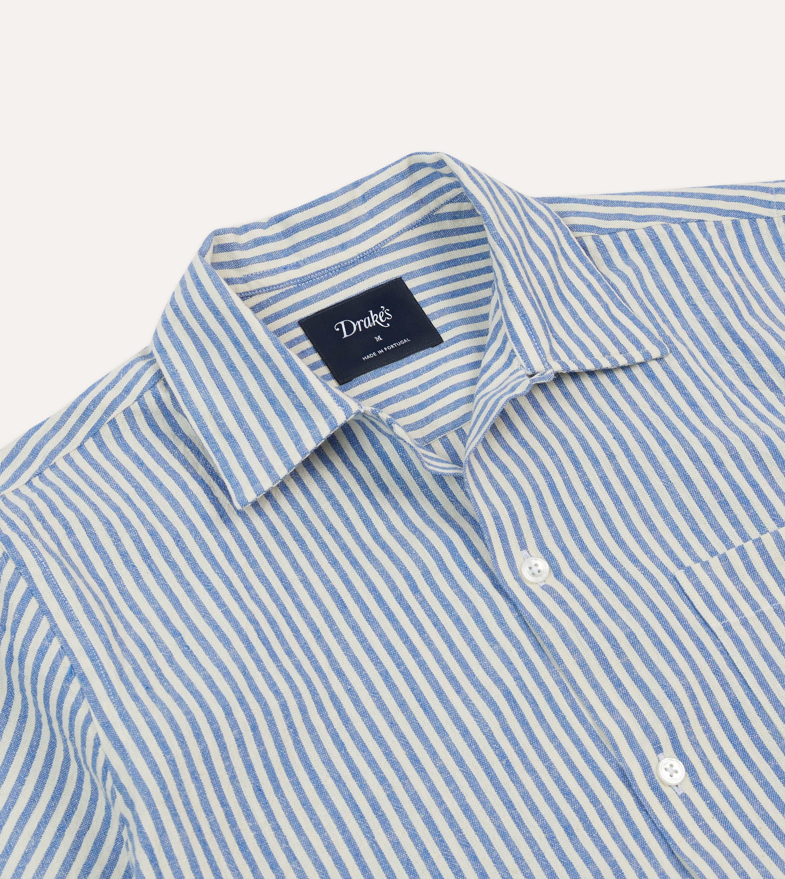 The Drake's take on this warm weather staple brings the story up-to-date; cut with a neat open collar, pointed chest pocket, plain front and straight hemline, all constructed from a soft blend of cotton and linen. It is, quite simply, the quintessential high summer shirt.