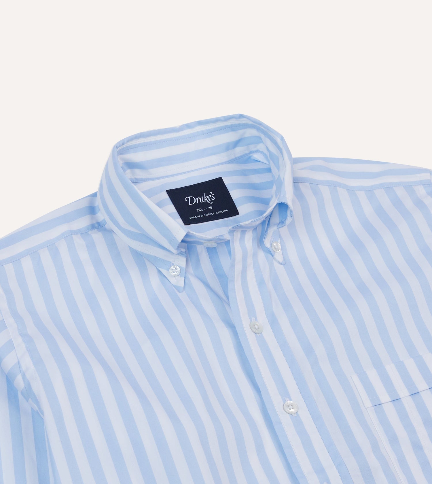 Blue Broad Stripe Cotton Poplin Button-Down Shirt