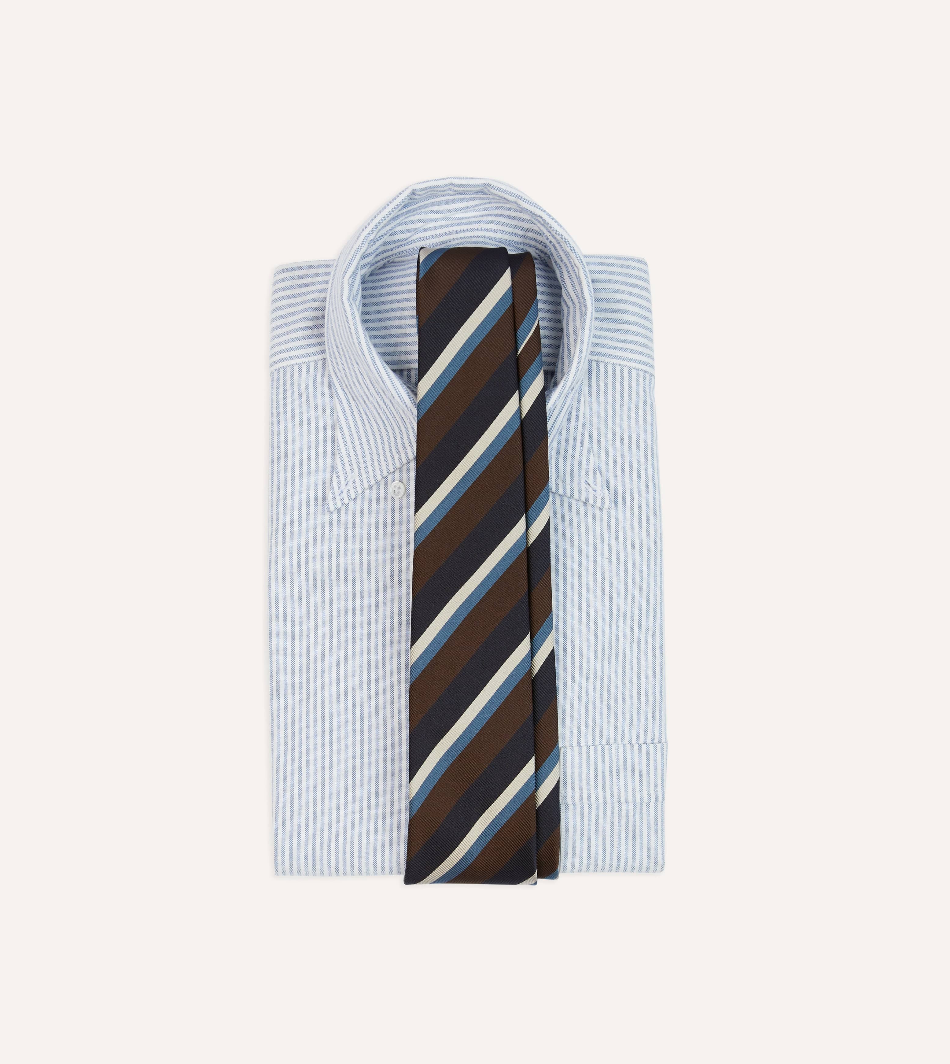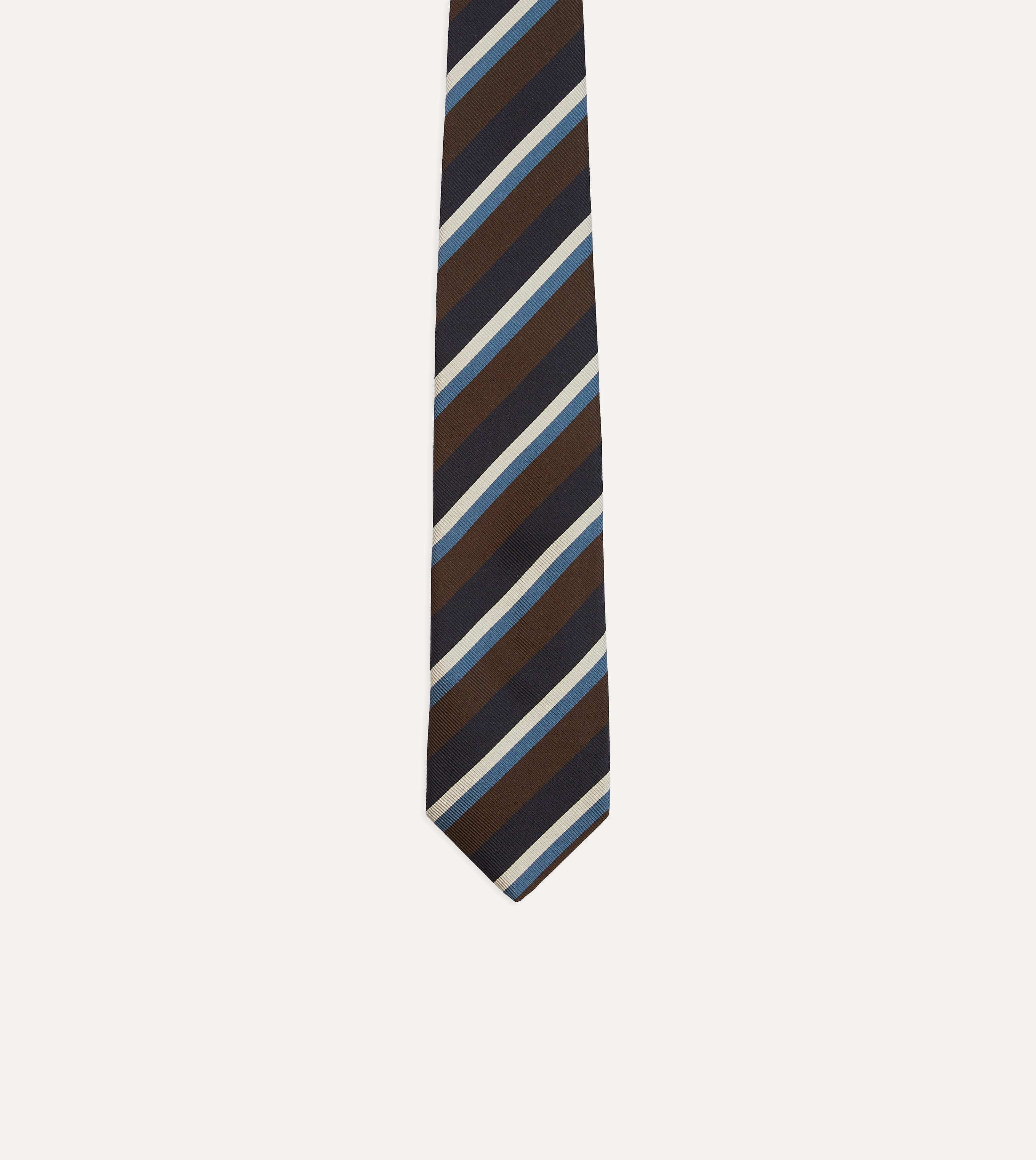 Brown, Blue and White Multi Stripe Mogador Silk Tipped Tie
