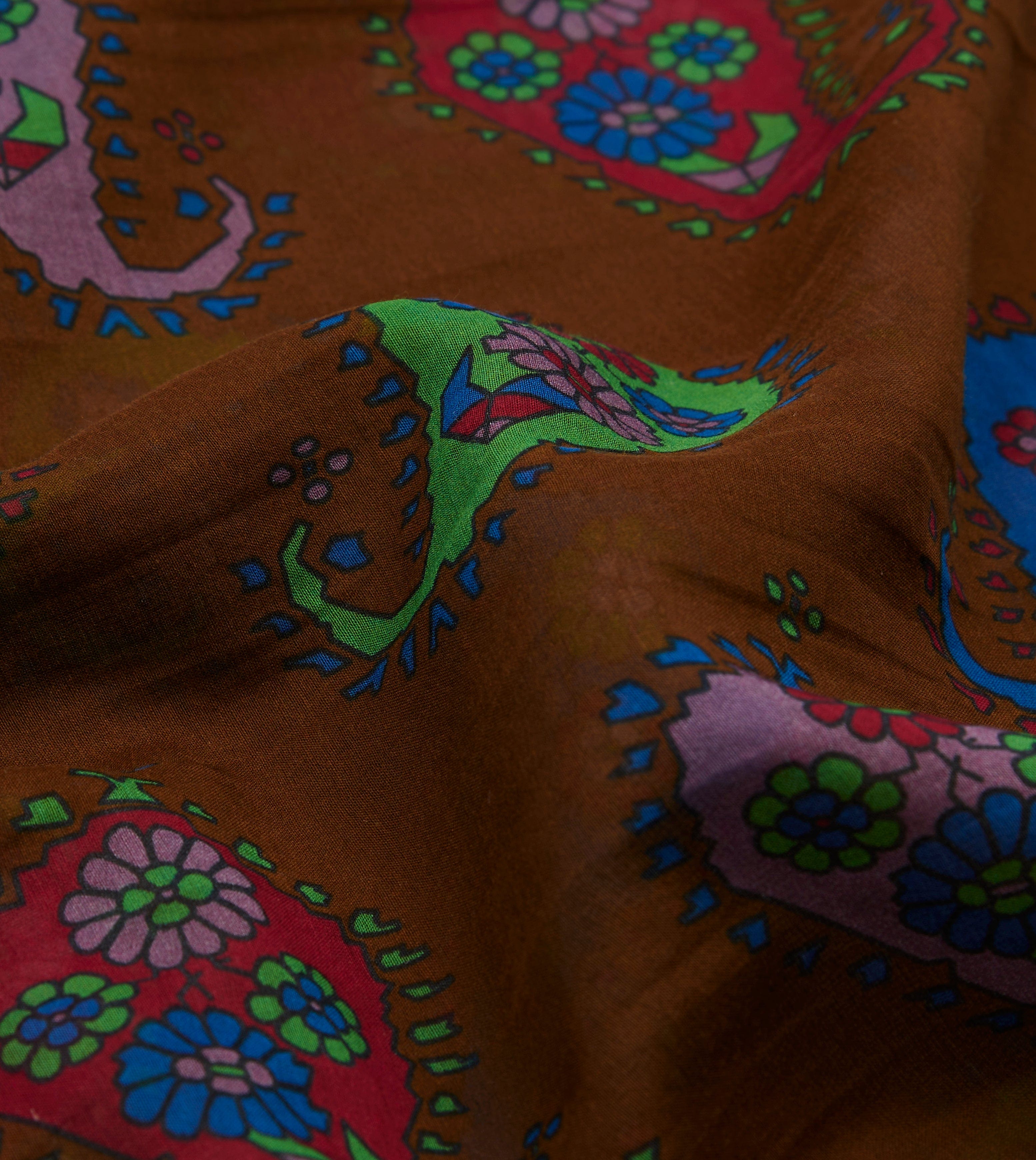 Brown Flower Paisley Print Silk-Cotton Bandana