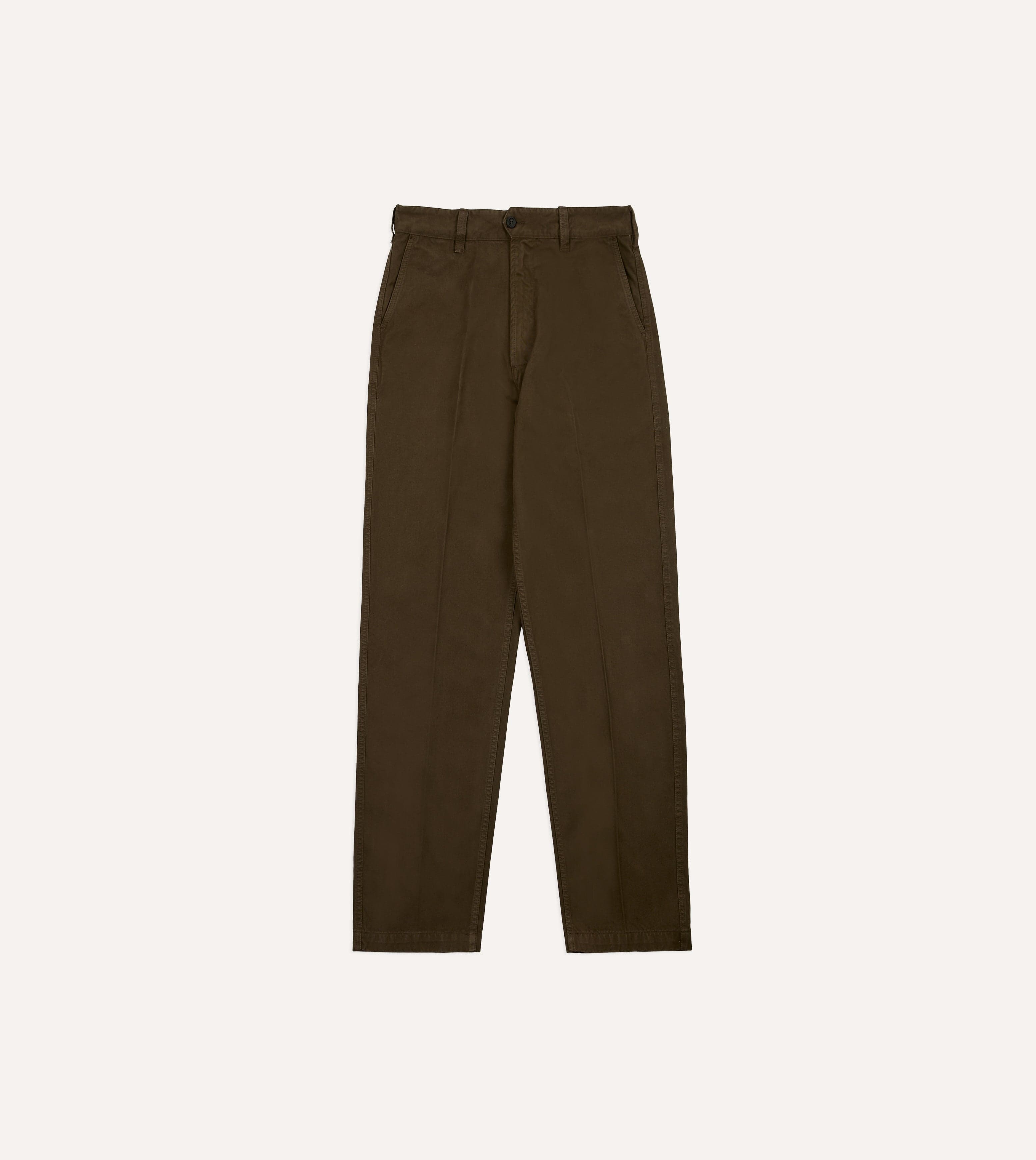 Brown Heavy Cotton Flat Front Chino
