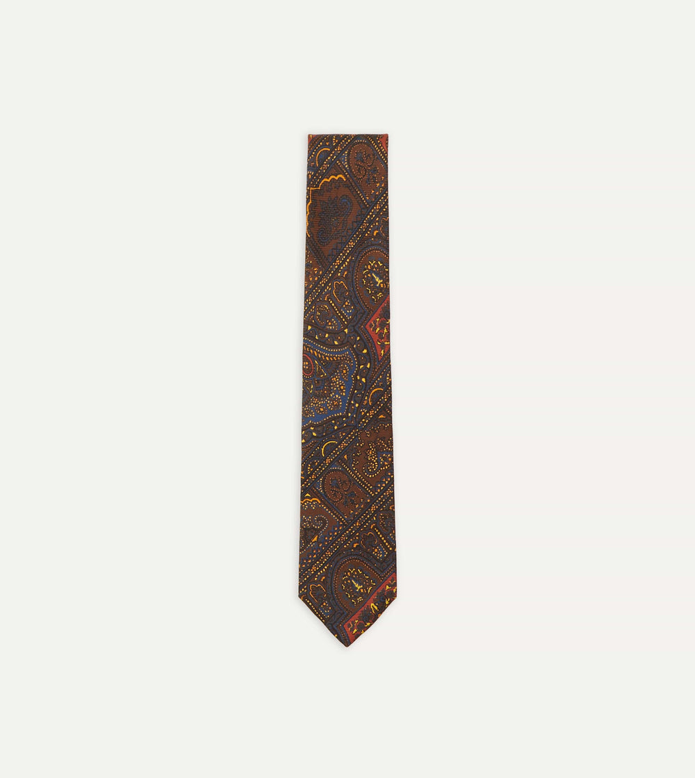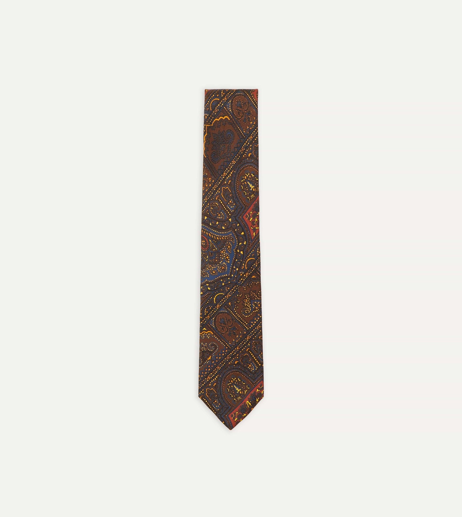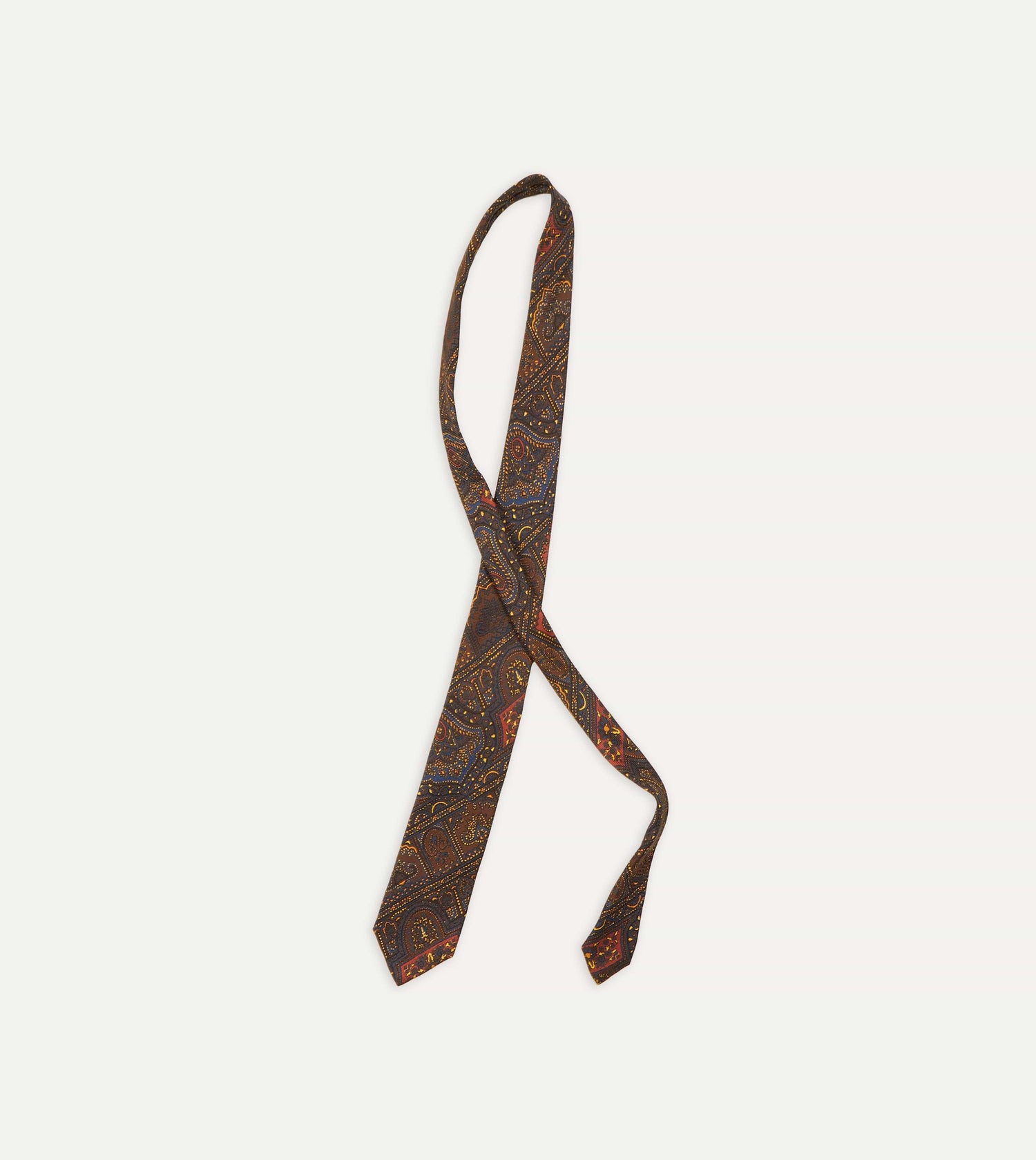 Brown, Navy and Red Paisley Print Madder Twill Silk Tie