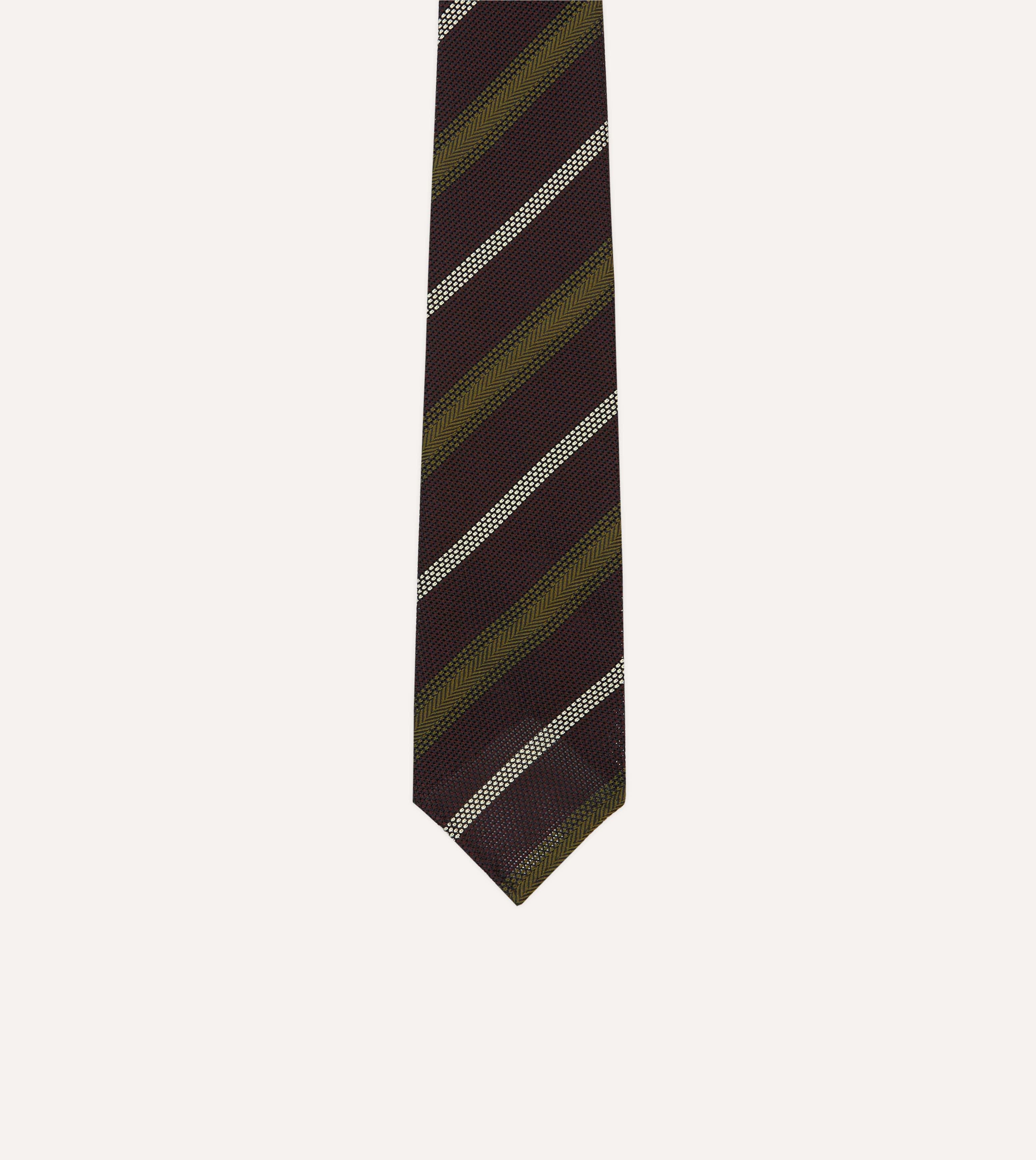Burgundy, Olive and Ecru Stripe Hand Rolled Silk Grenadine Tie