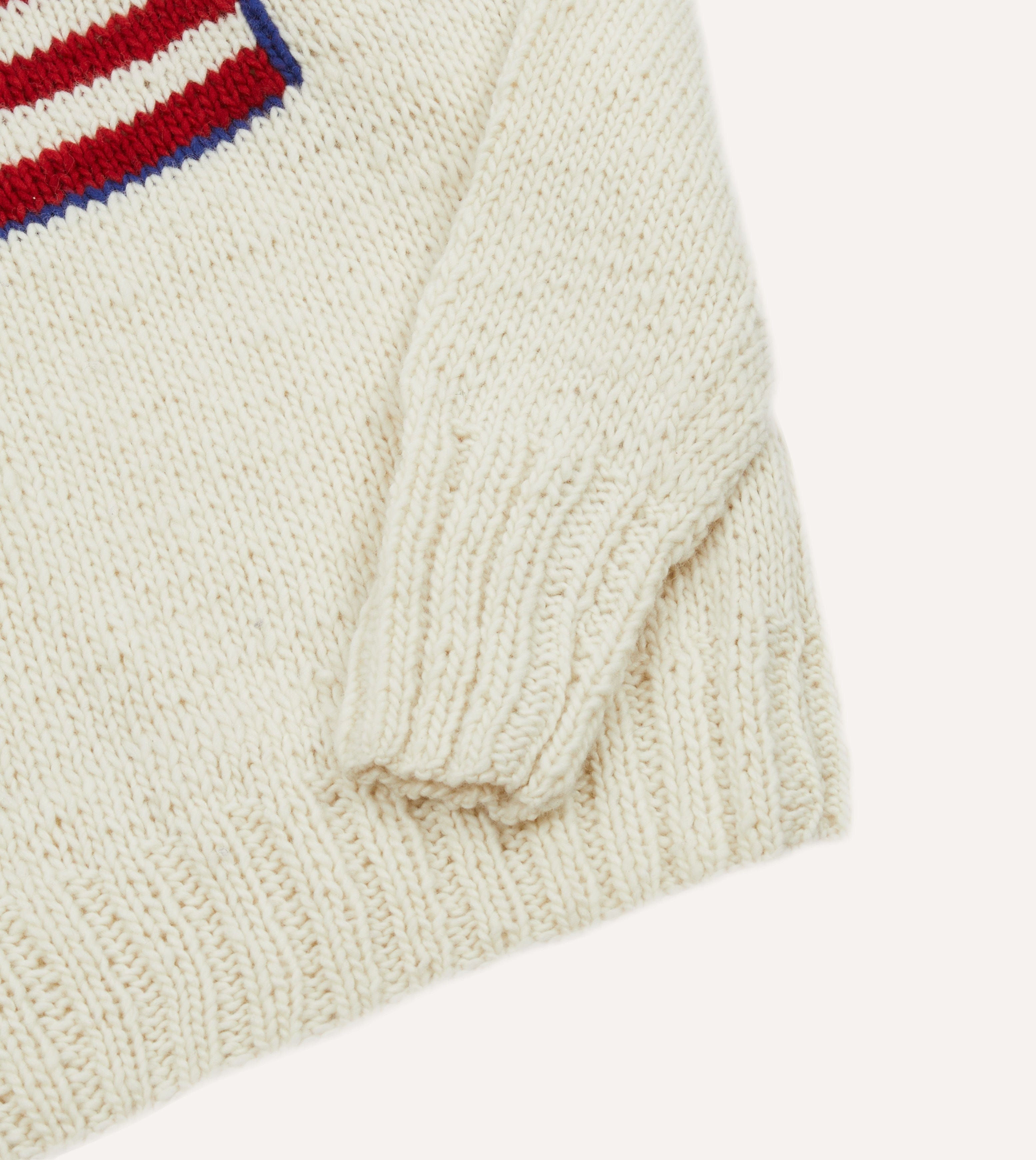 Made expressly for Drake’s, Chamula’s knitwear is completely hand made in Mexico, spinning the yarn on small hand-built spinning wheels and hand-dyeing wool from purebred Merino sheep grazing in the Mexican mountains.