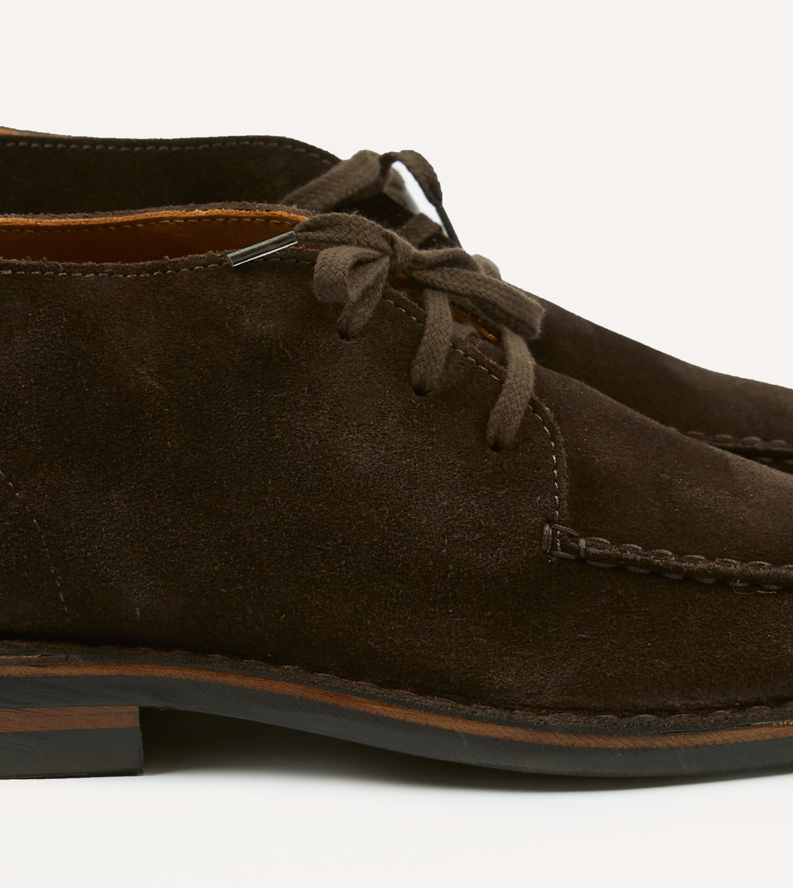 Crosby Moc-Toe Chukka Boot Dark Brown Roughout Suede with Rubber Sole