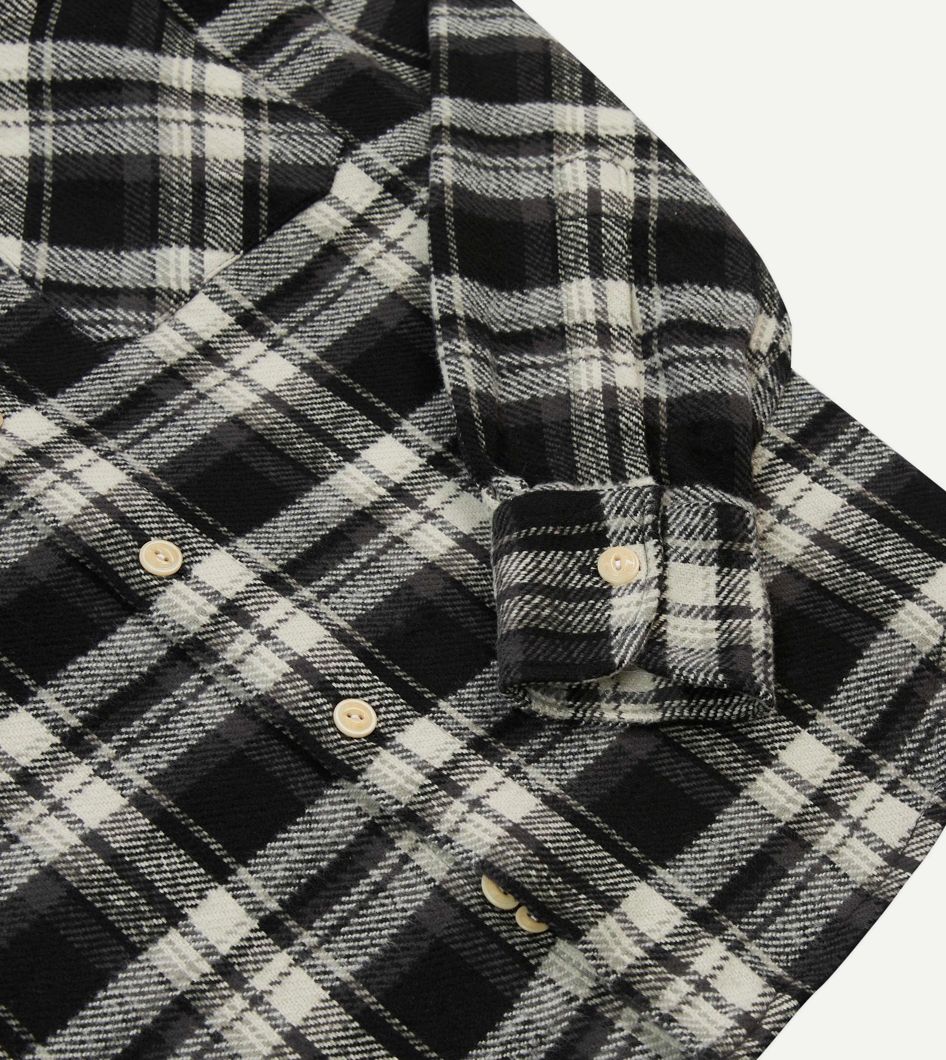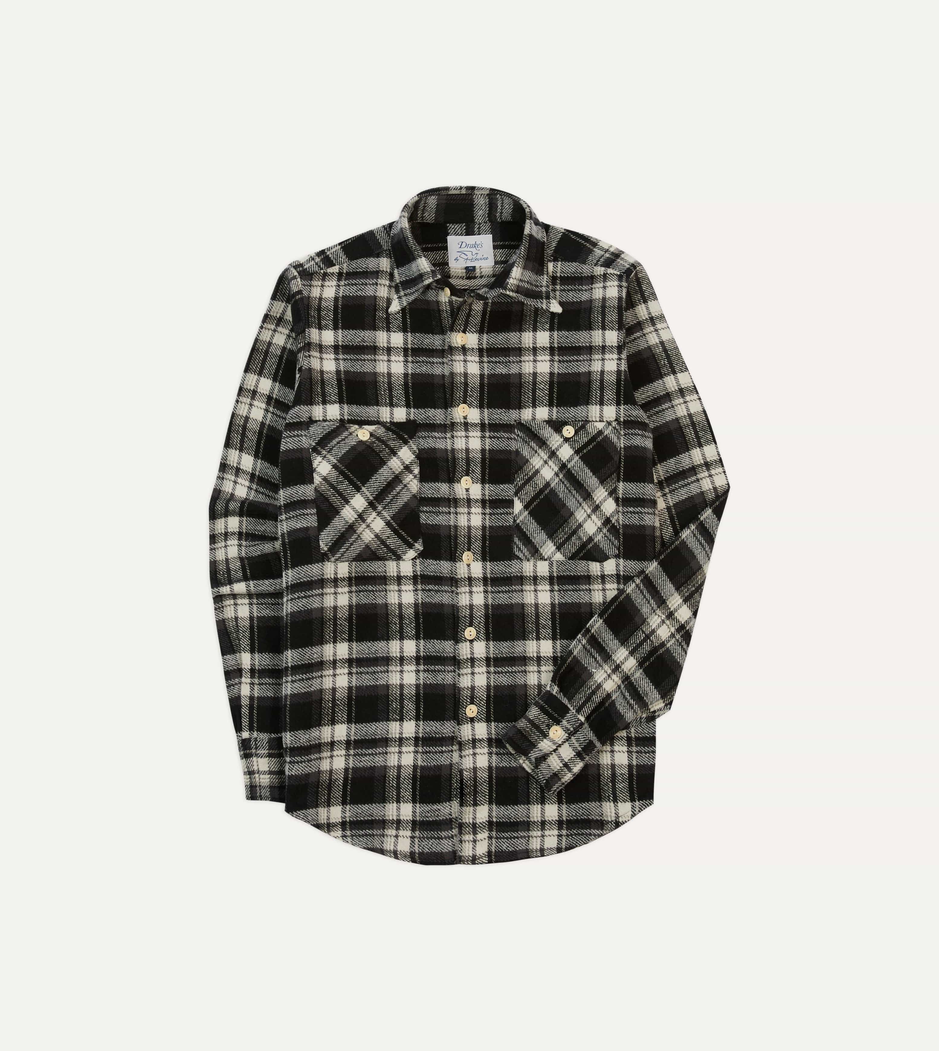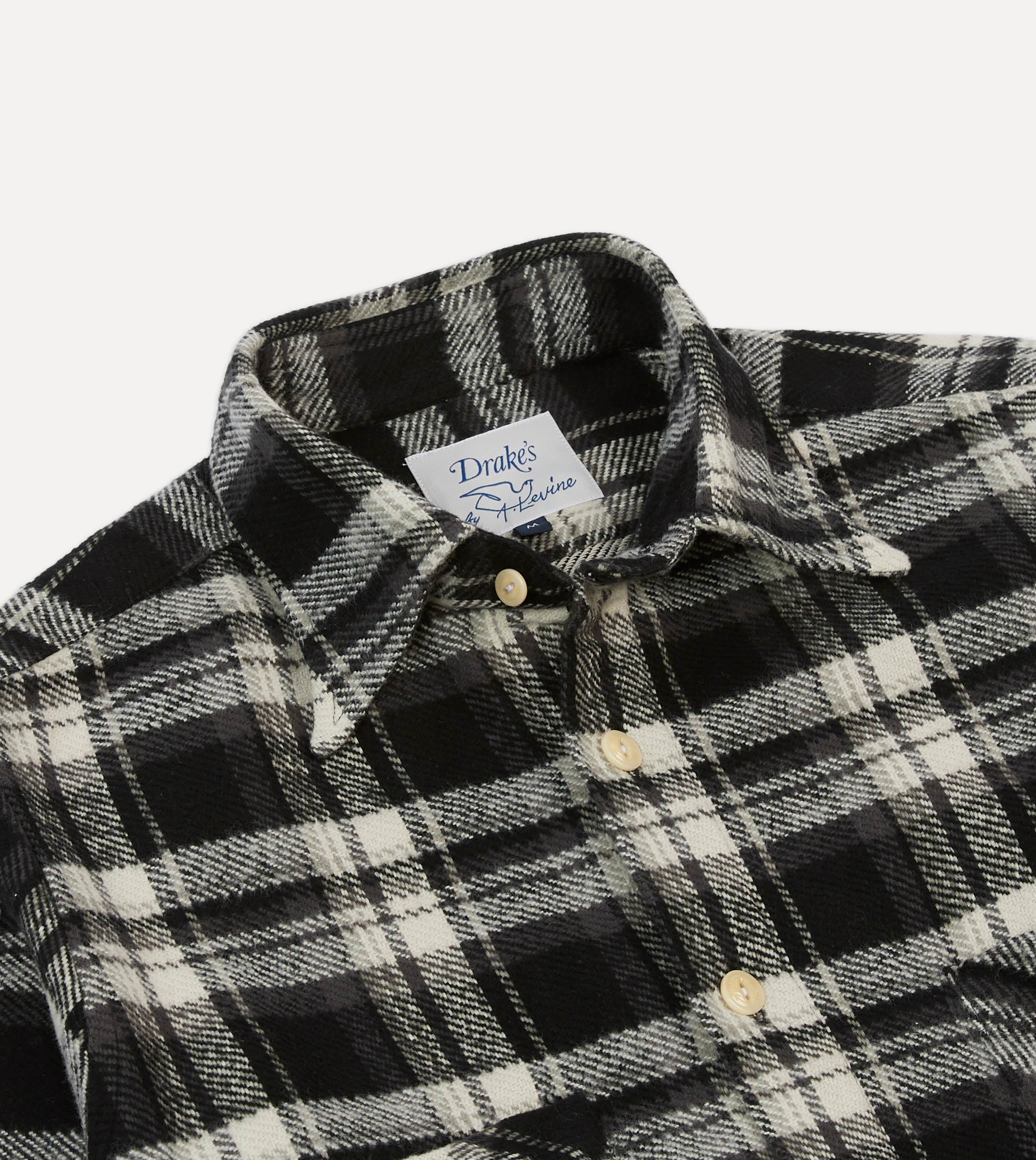Drake's by A. Levine Black Check Cotton Two-Pocket Work Shirt