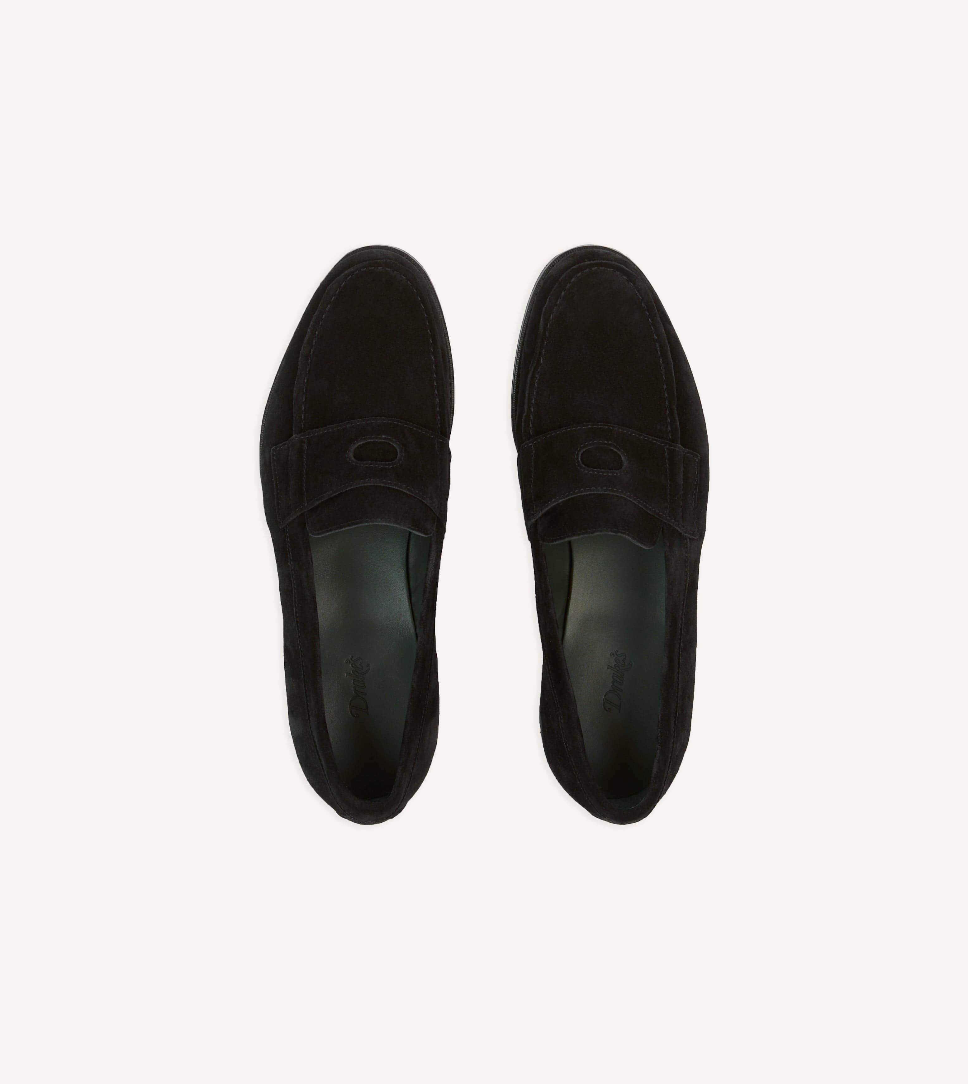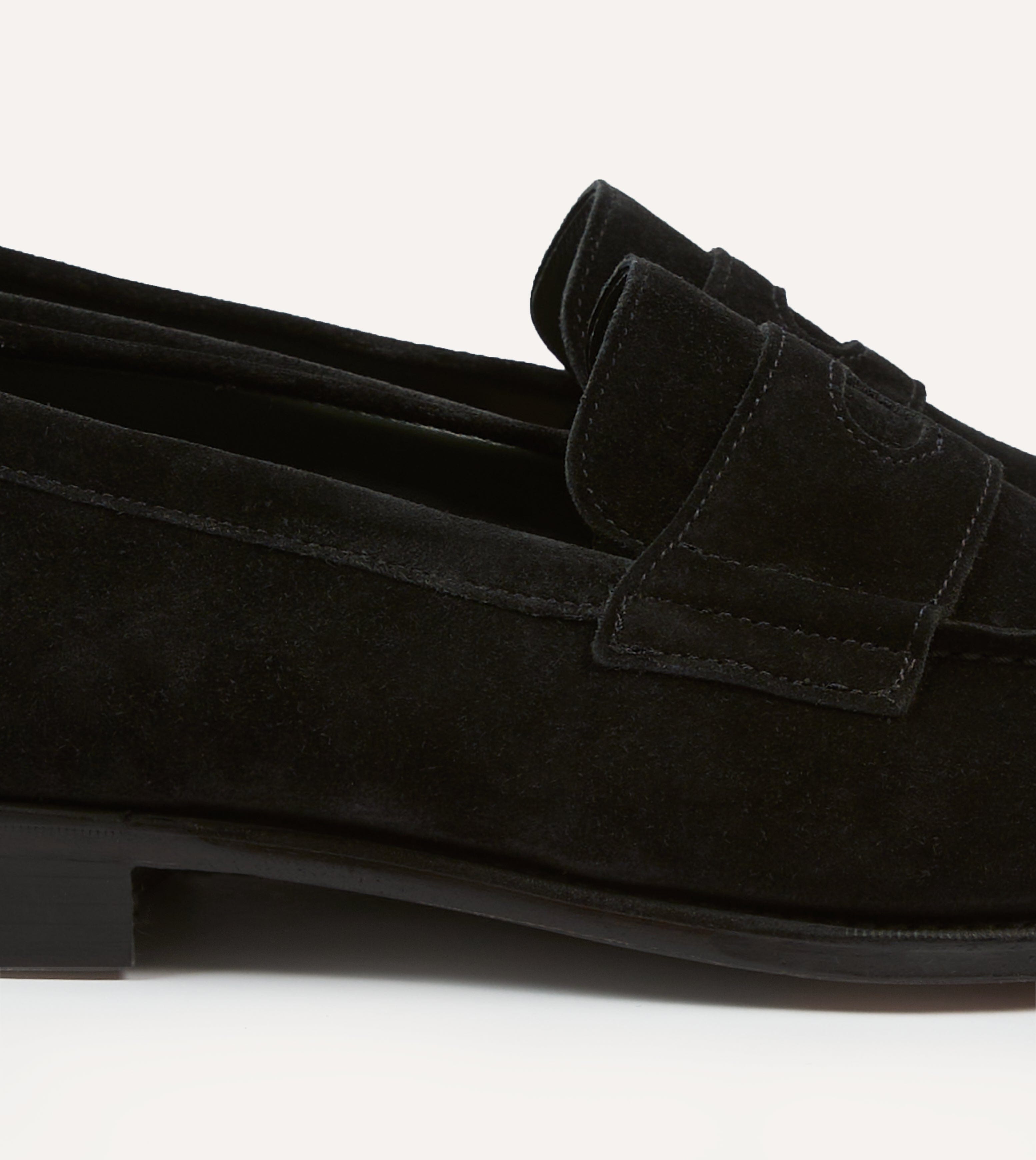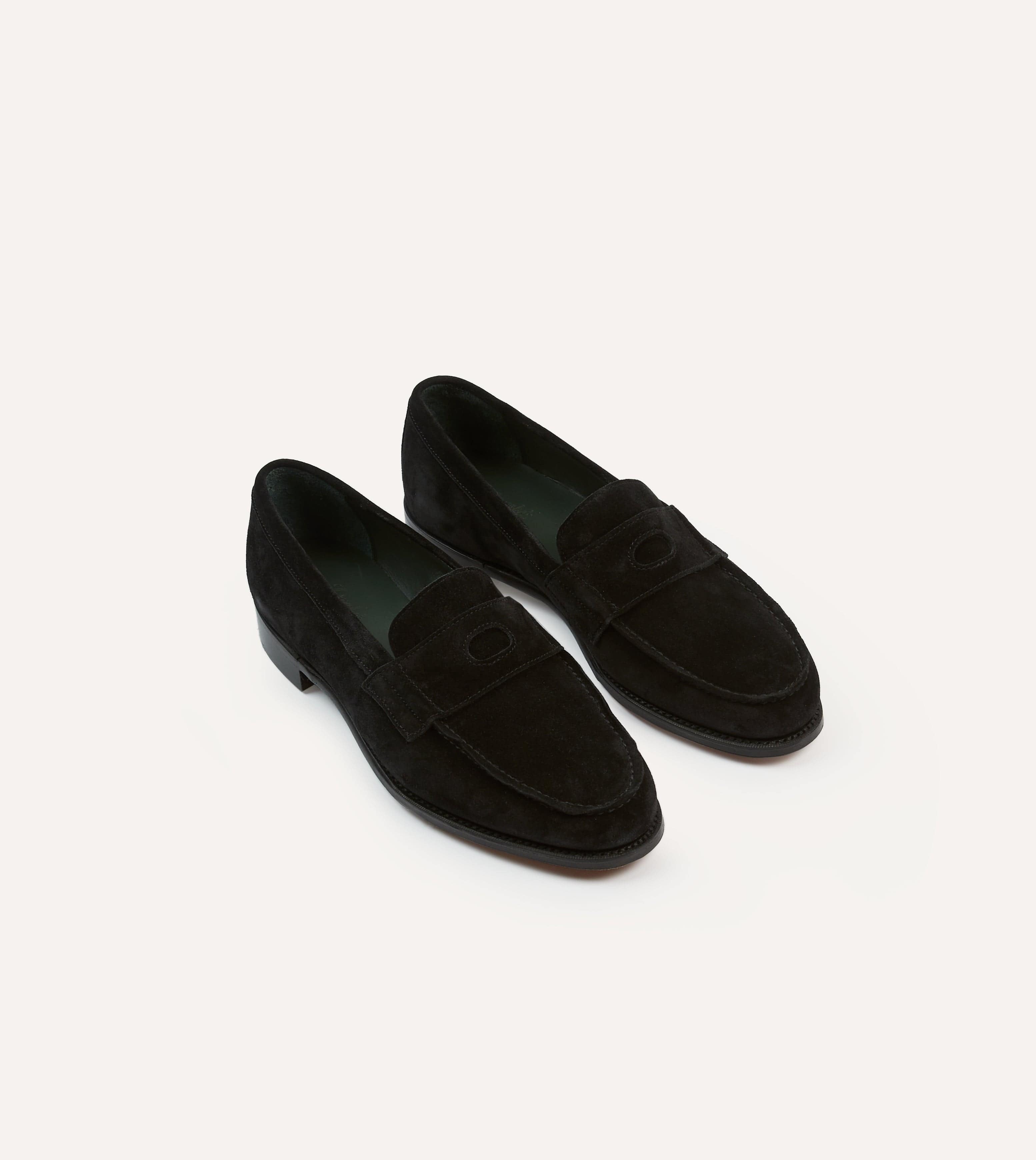 Drake's by A. Levine Black Suede Charles Mk II Goodyear Welted Penny Loafer