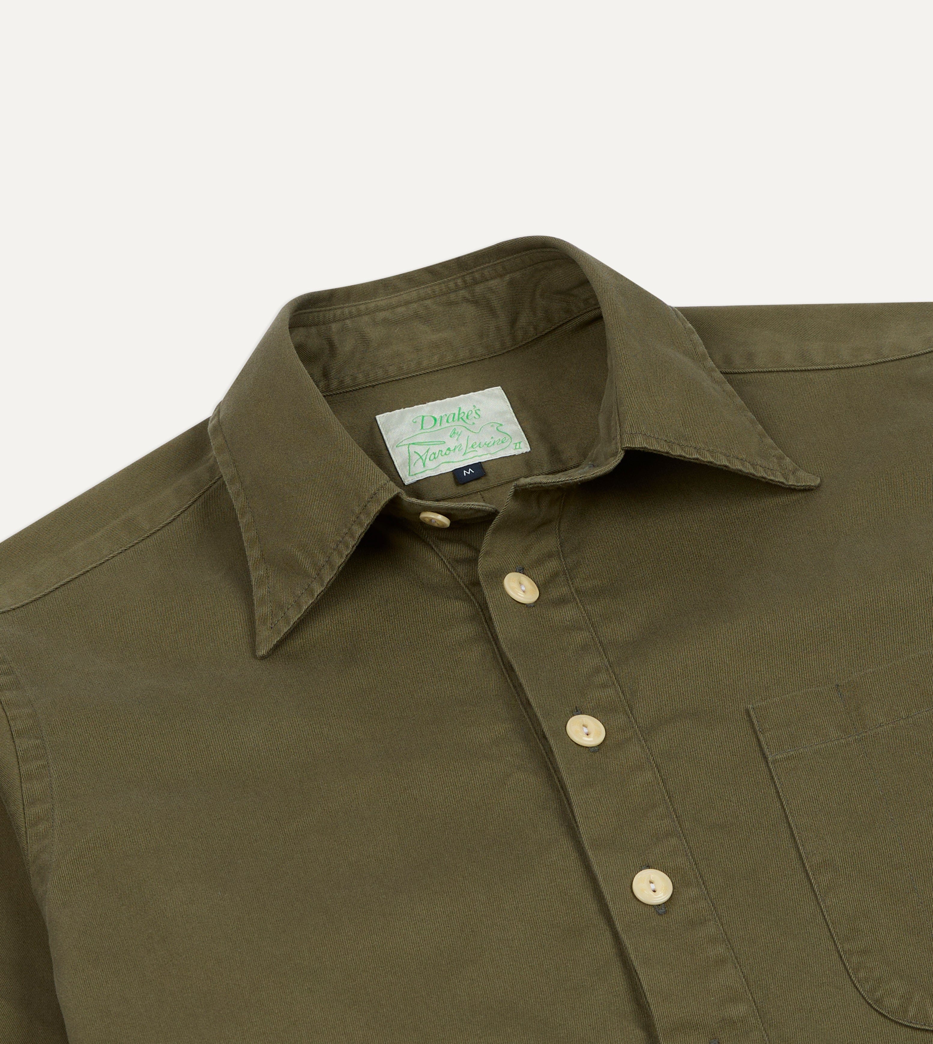 Drake's by A. Levine Olive Cotton Popover Shirt