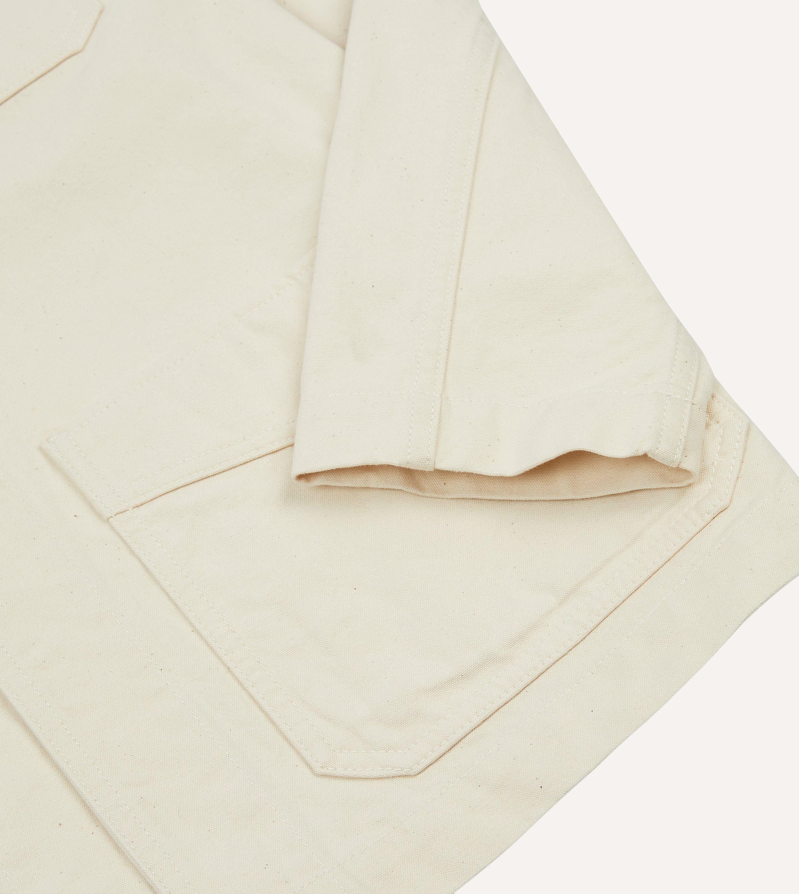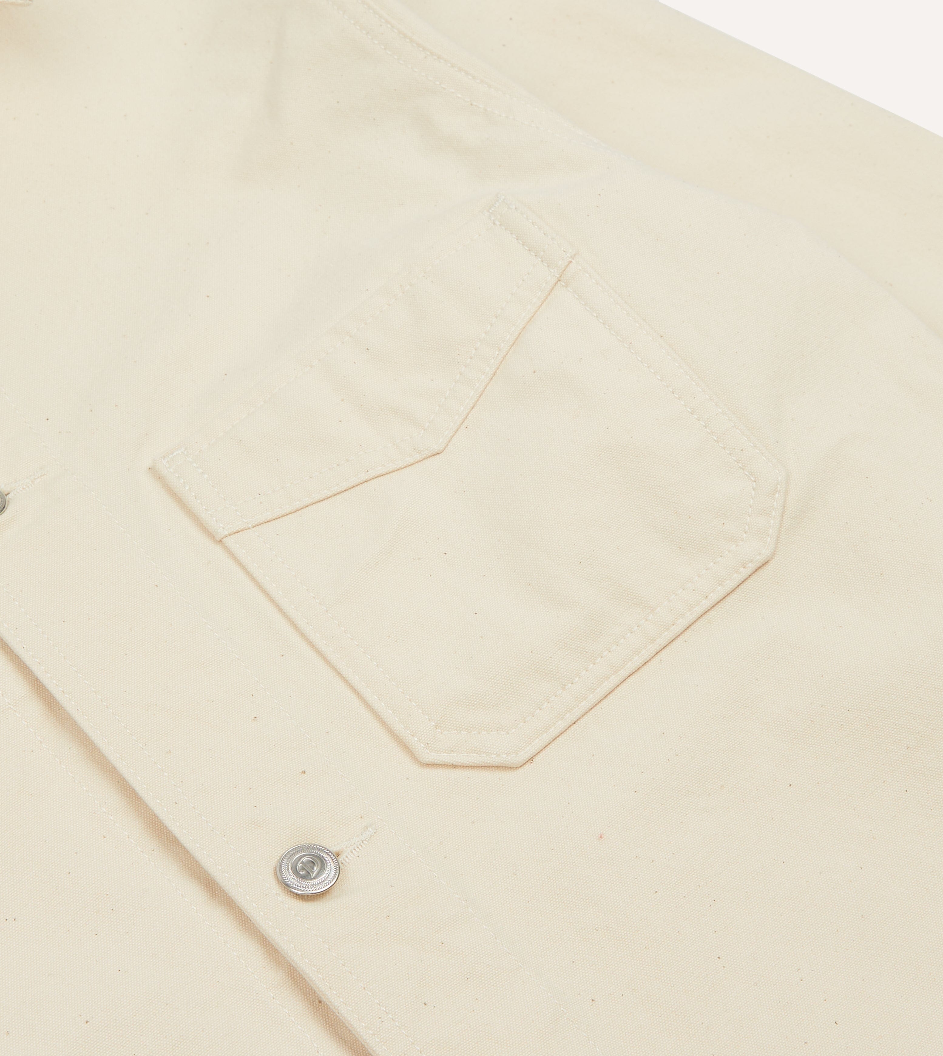Ecru Cotton Duck Canvas Five-Pocket Chore Jacket