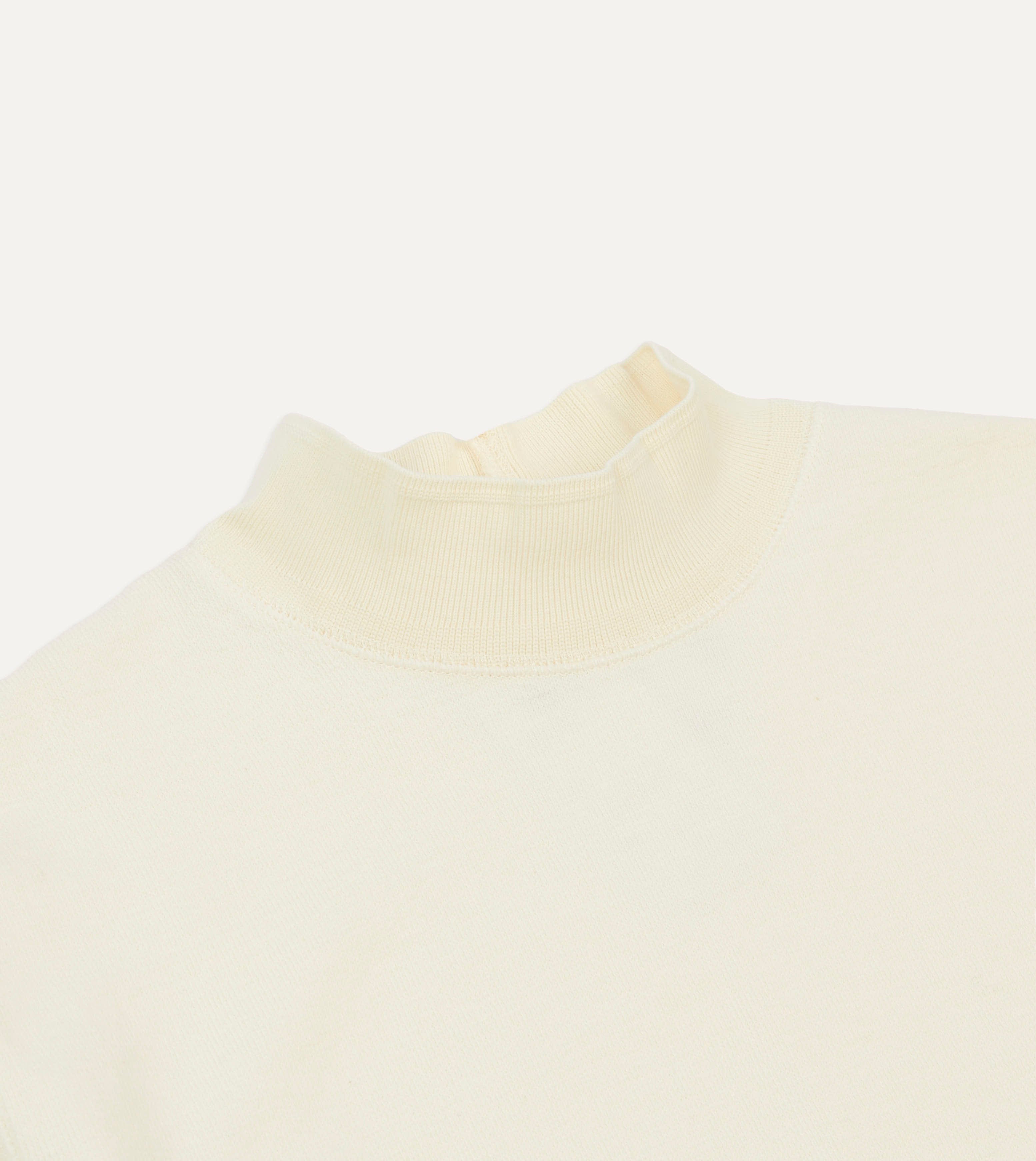 Ecru Cotton Long-Sleeve Mock Neck Hiking T-Shirt
