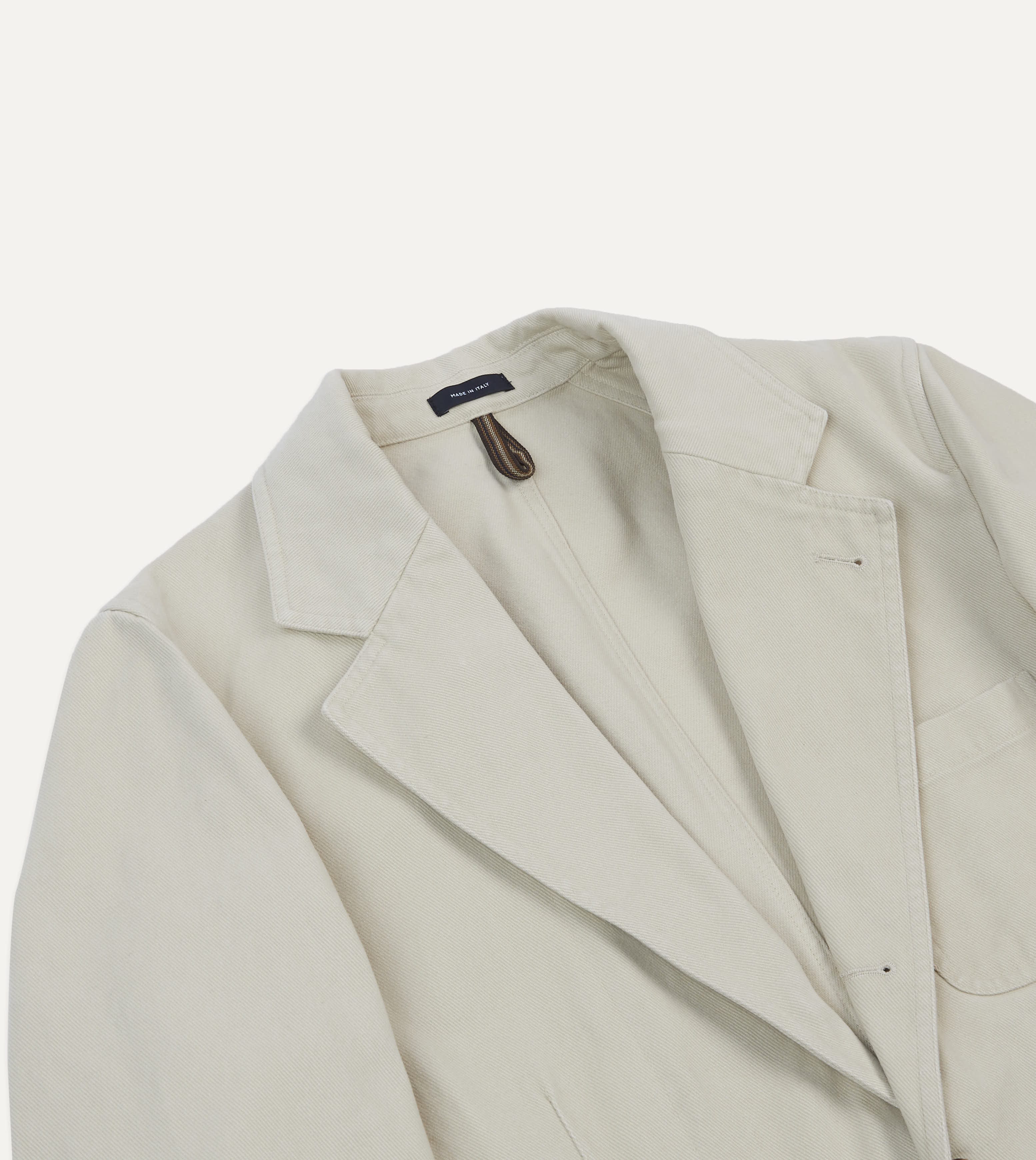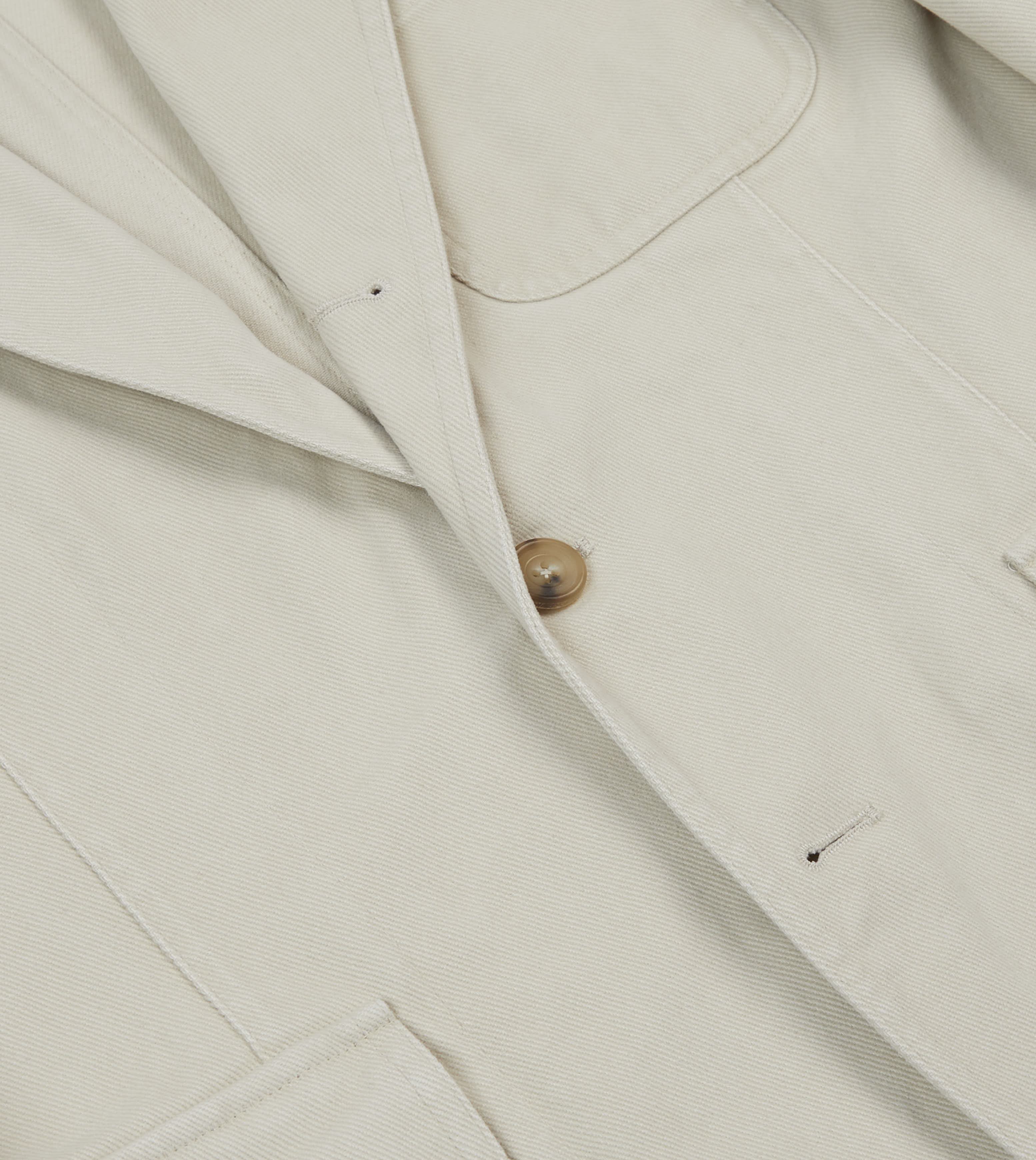 Cut from a heavy 11.6oz cotton twill woven in Yorkshire, pair it with the matching trousers for an informal take on the classic two-piece suit.