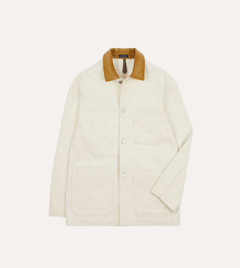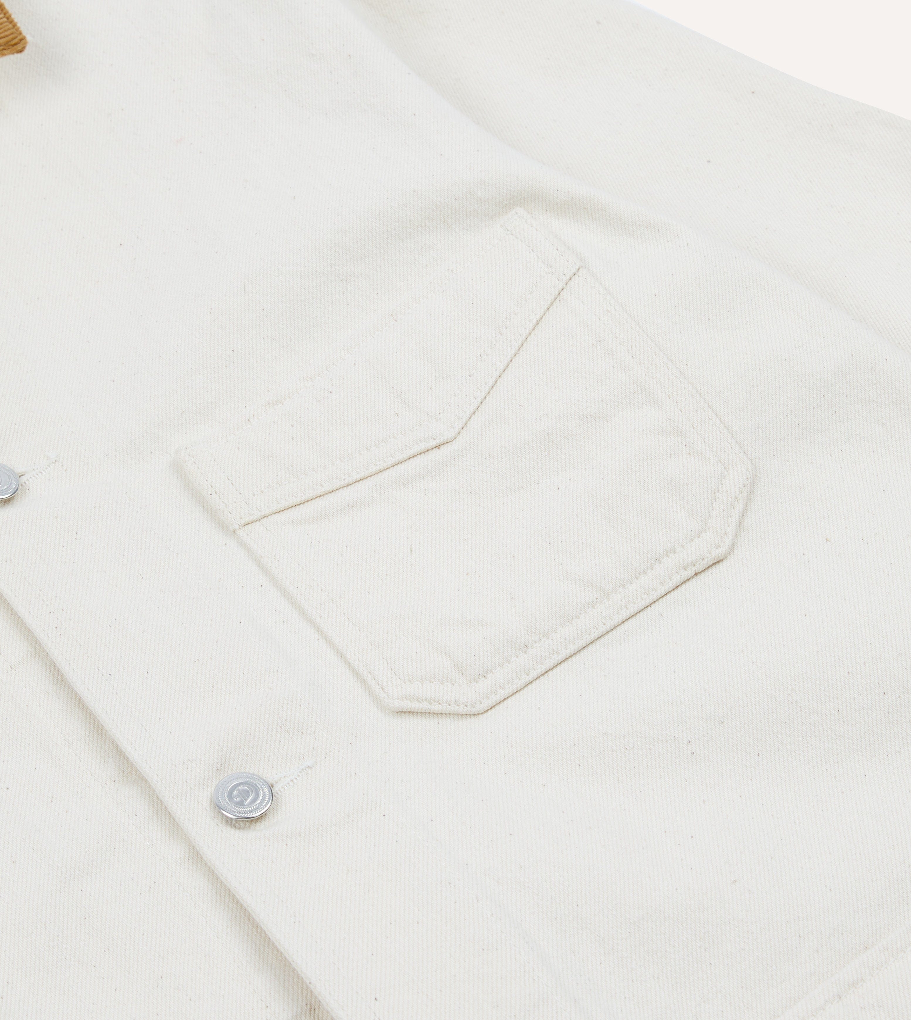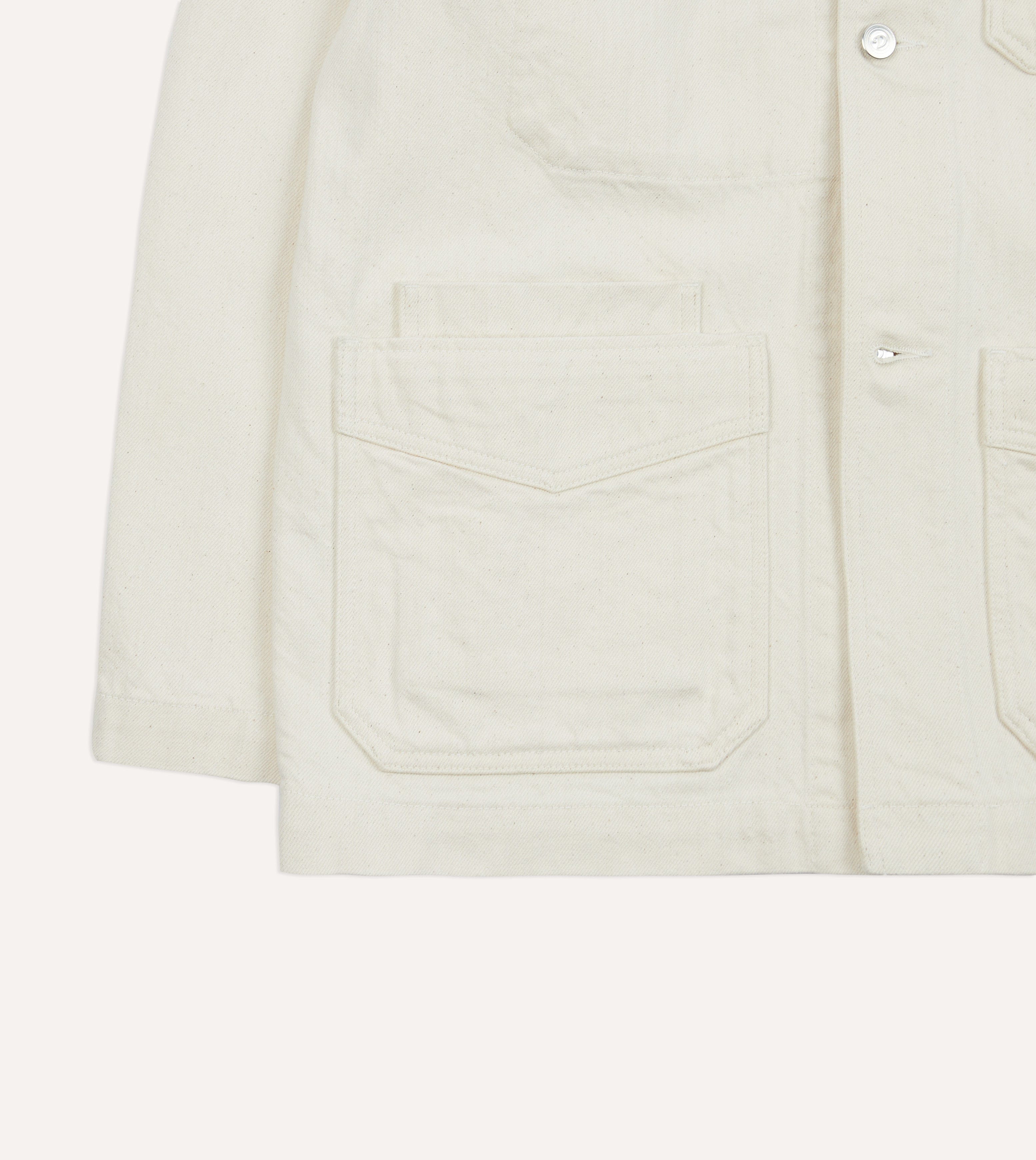 Ecru Heavy Twill Cotton Five-Pocket Chore Jacket