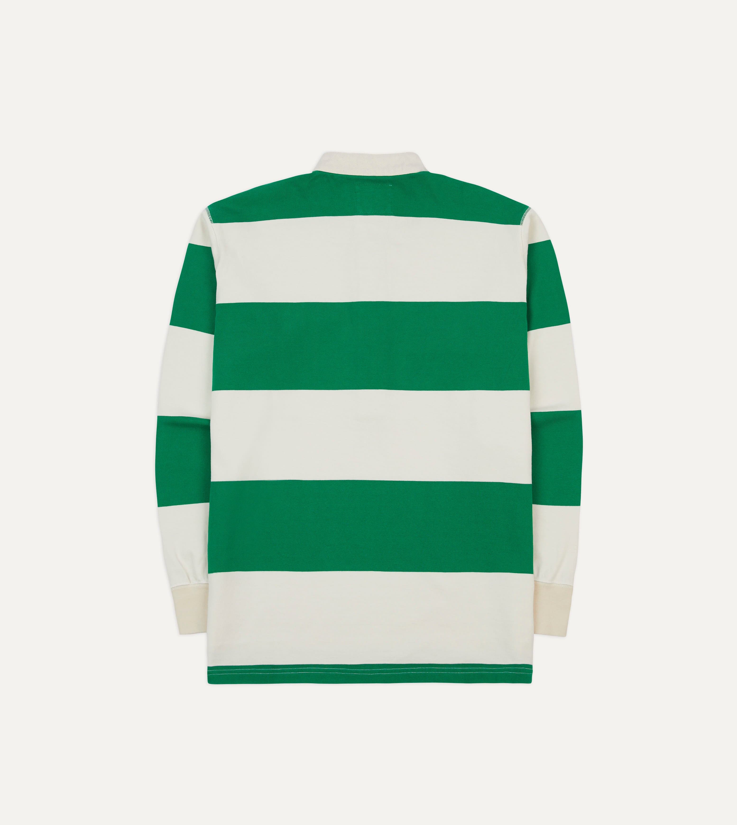 Green and White Stripe Cotton Mandarin Collar Rugby Shirt