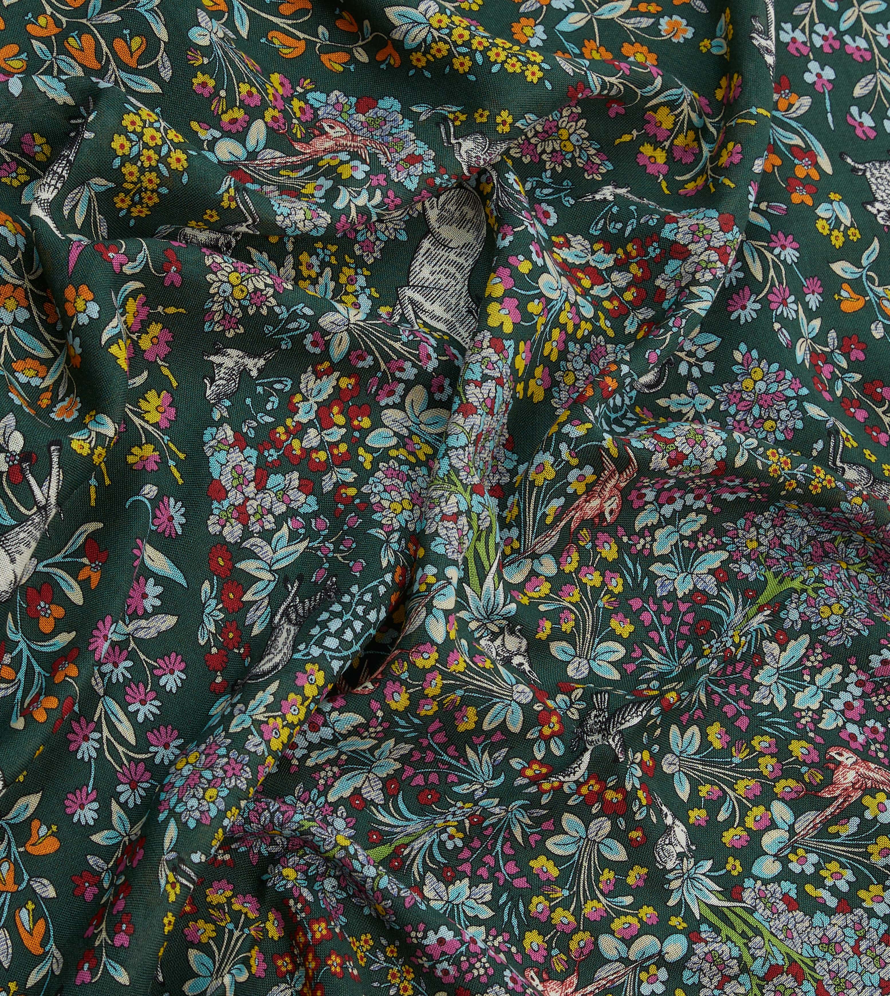 Taken from our extensive design archive, this forest animals motif has been vividly applied to a blend of pure wool and silk, perfect for introducing a subtle and sophisticated dash of pattern to one's ensemble.