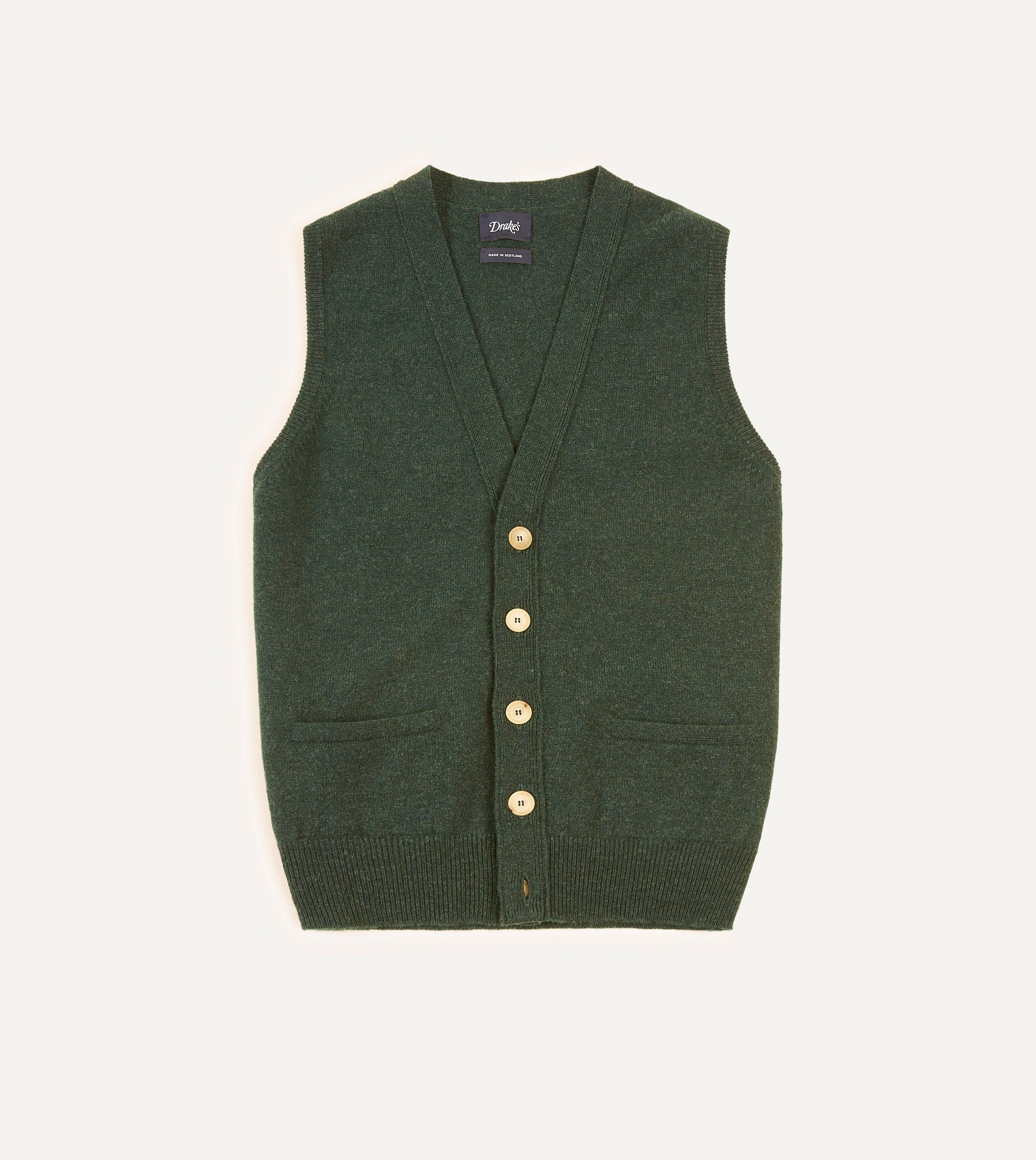 Our classic sleeveless cardigan is a staple for many men, providing an elegant layer in the cooler weather.
