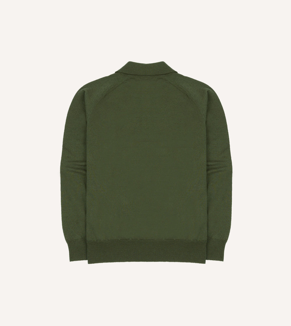 Green Linen-Cotton Knitted Long-Sleeve Polo Shirt