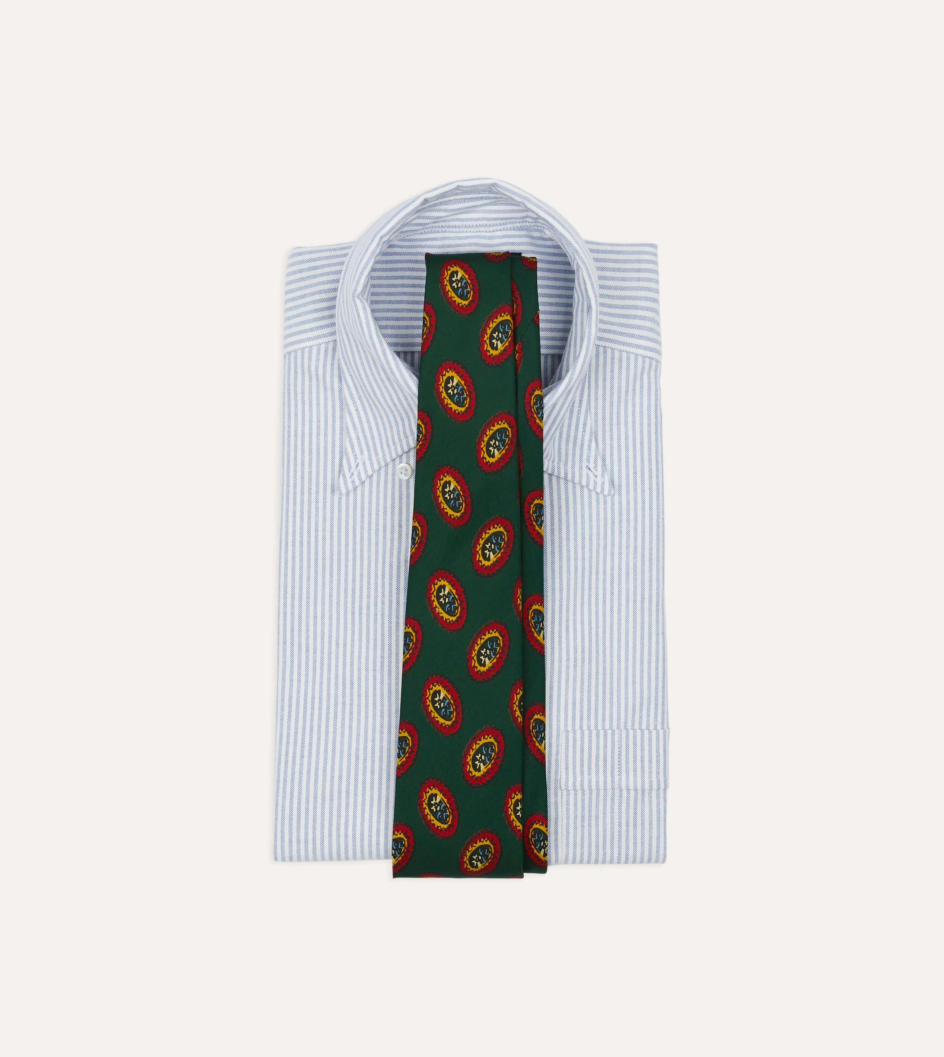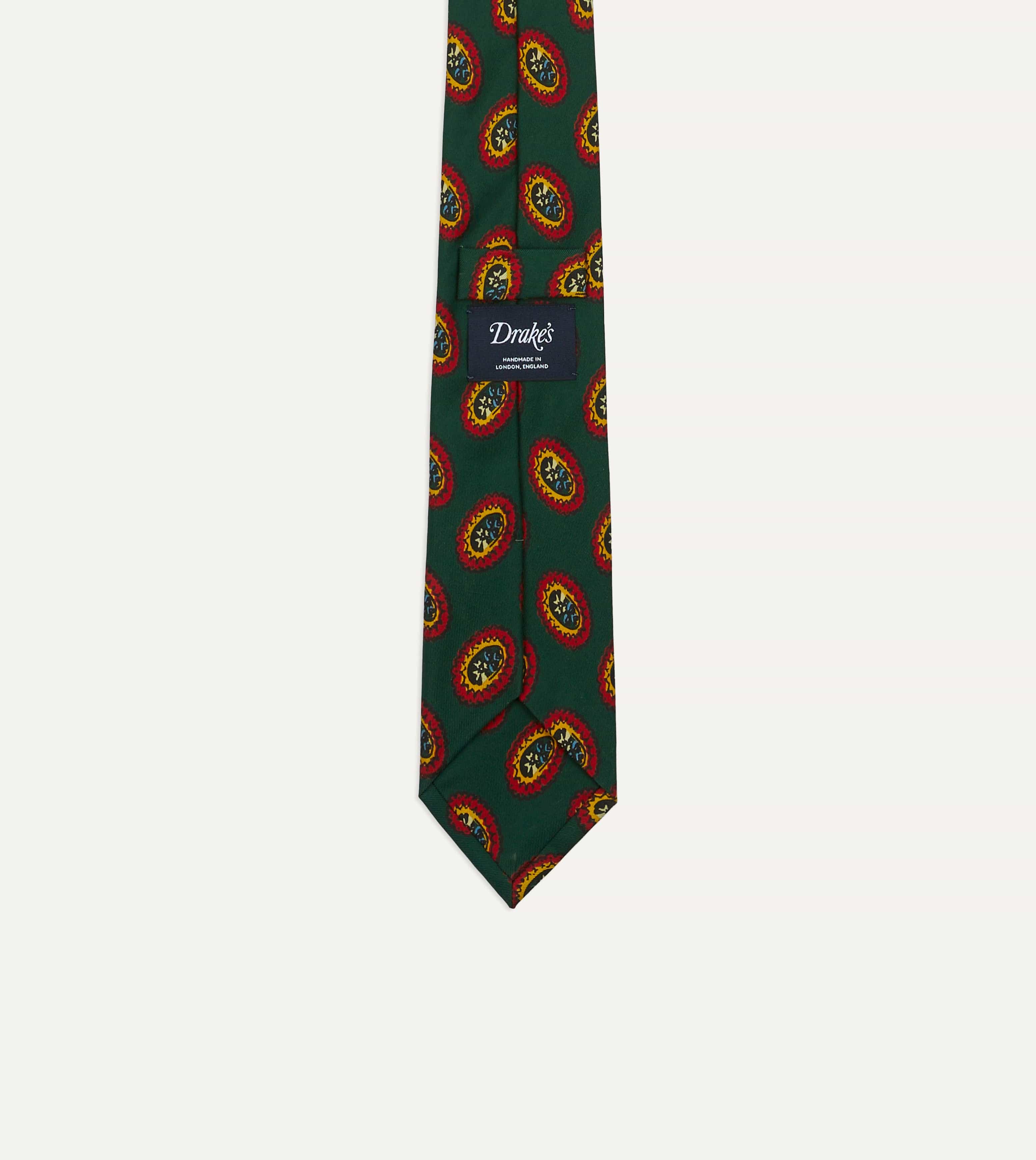 An ornate medallion design simply exudes elegance, particularly when printed on pure silk and hand rolled by our dedicated tiemakers in the heart of east London.
