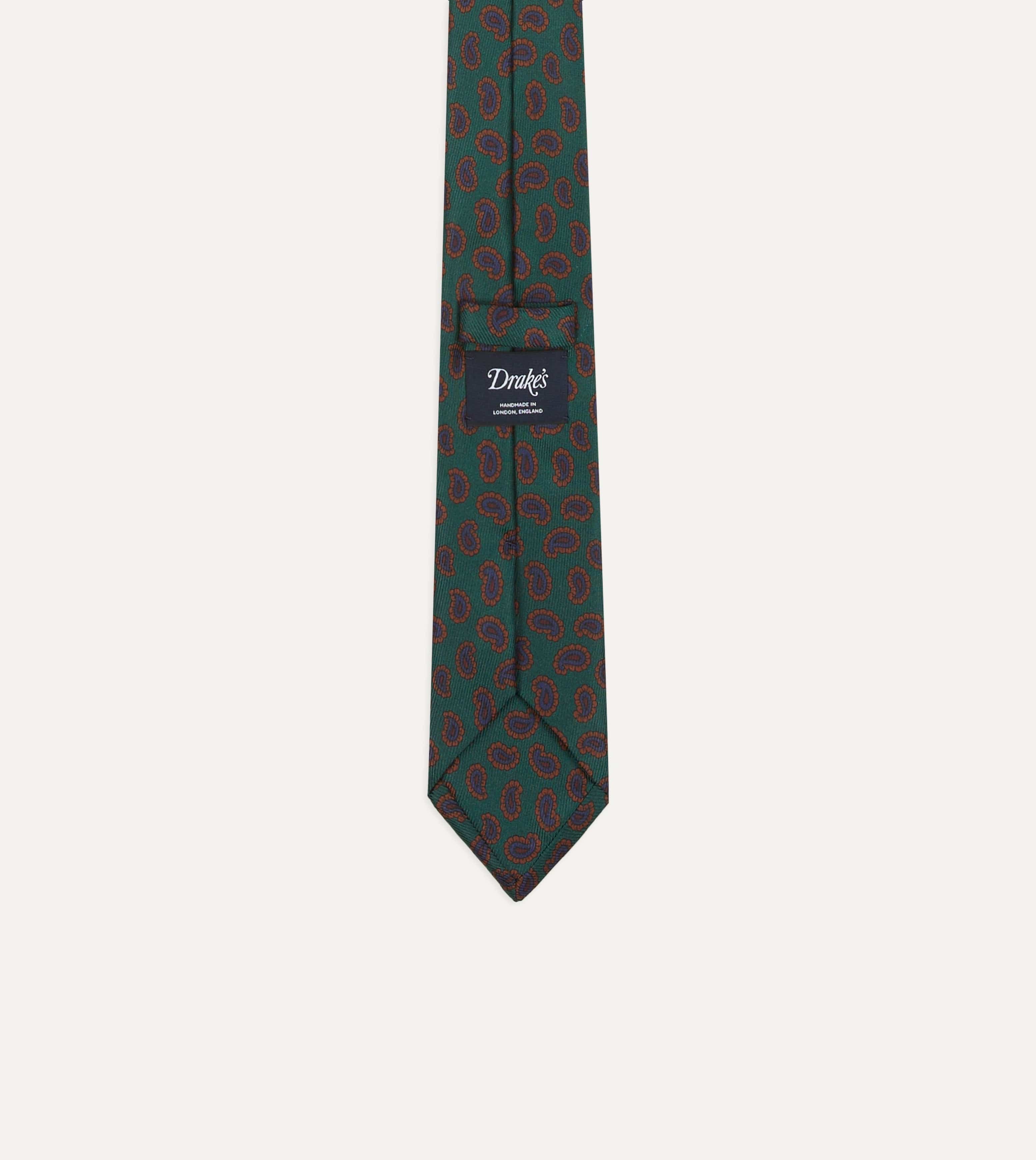 This design, printed in Macclesfield on pure silk, features a classic paisley, and is reminiscent of the elegant late 1960s neckwear favoured by rockstars and royalty alike. Made by hand in London.