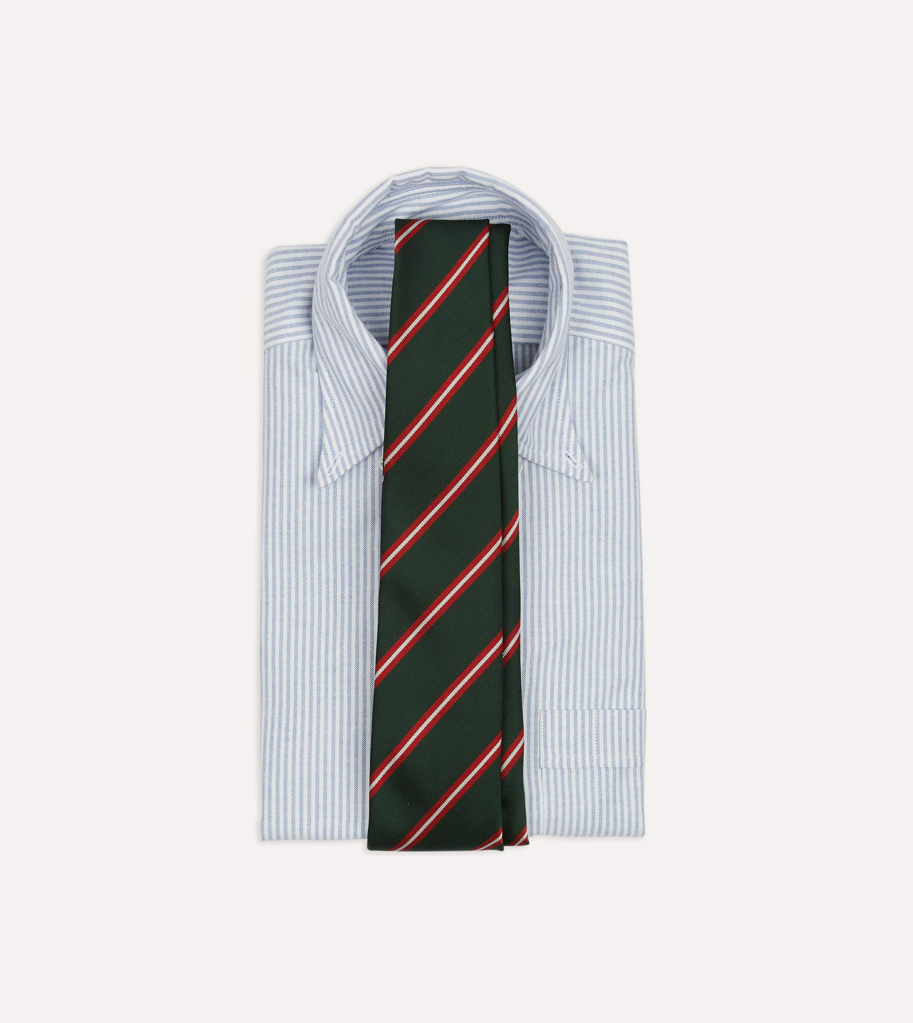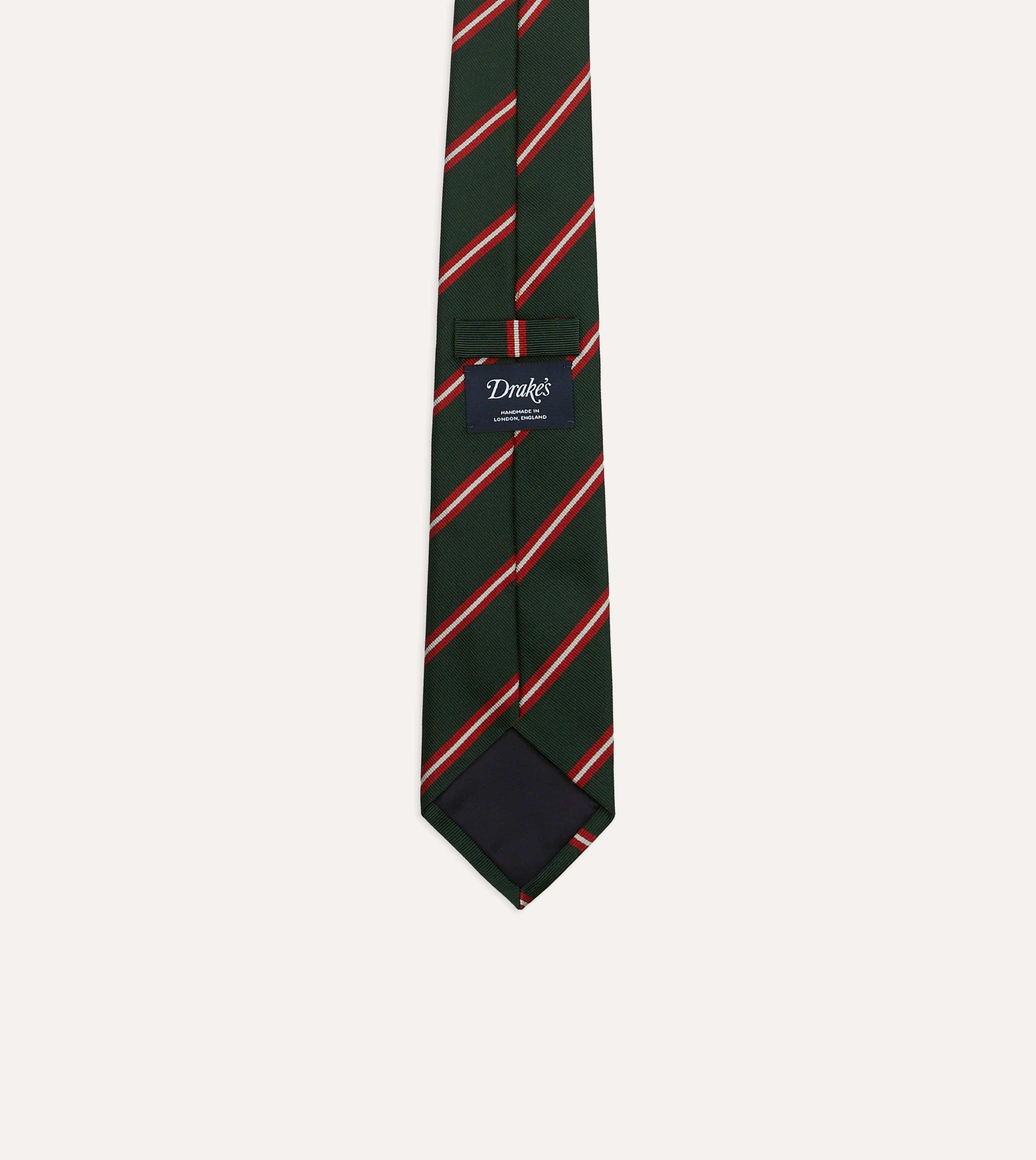 Green, Red and Ecru Stripe Silk Tipped Tie