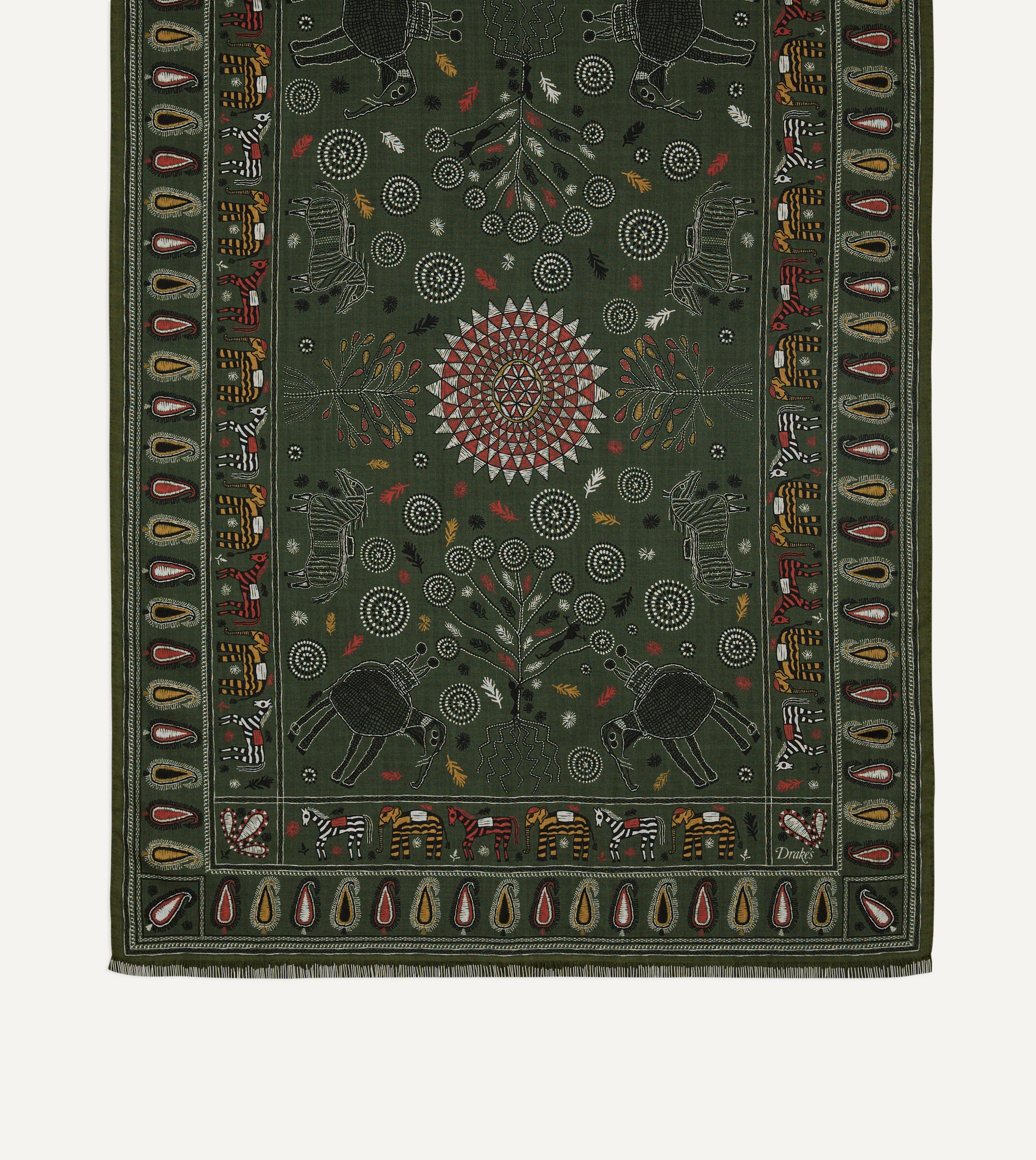 Taken from our extensive design archive, this elephant motif has been vividly applied to a blend of pure wool and silk, perfect for introducing a subtle and sophisticated dash of pattern to one's ensemble.