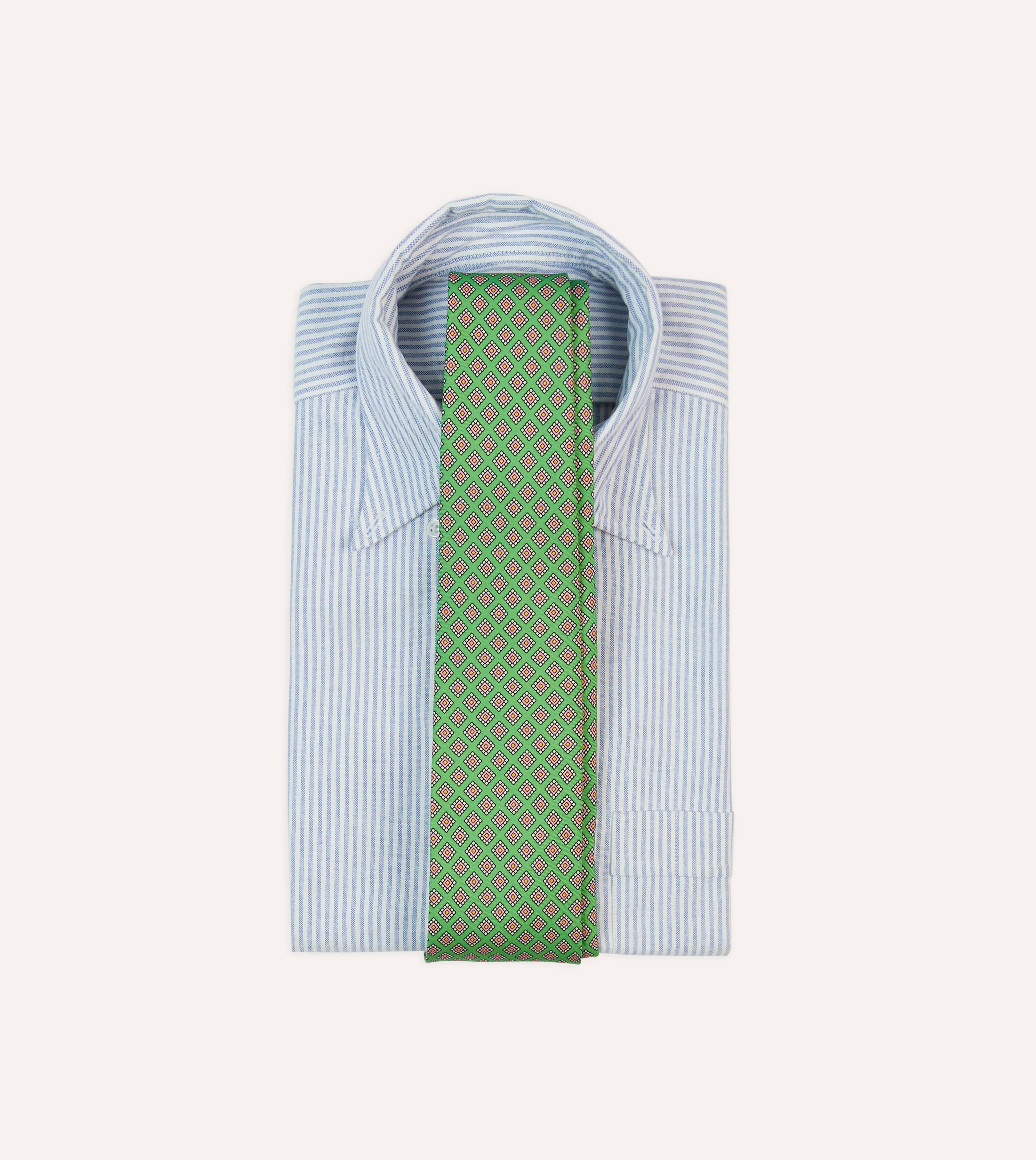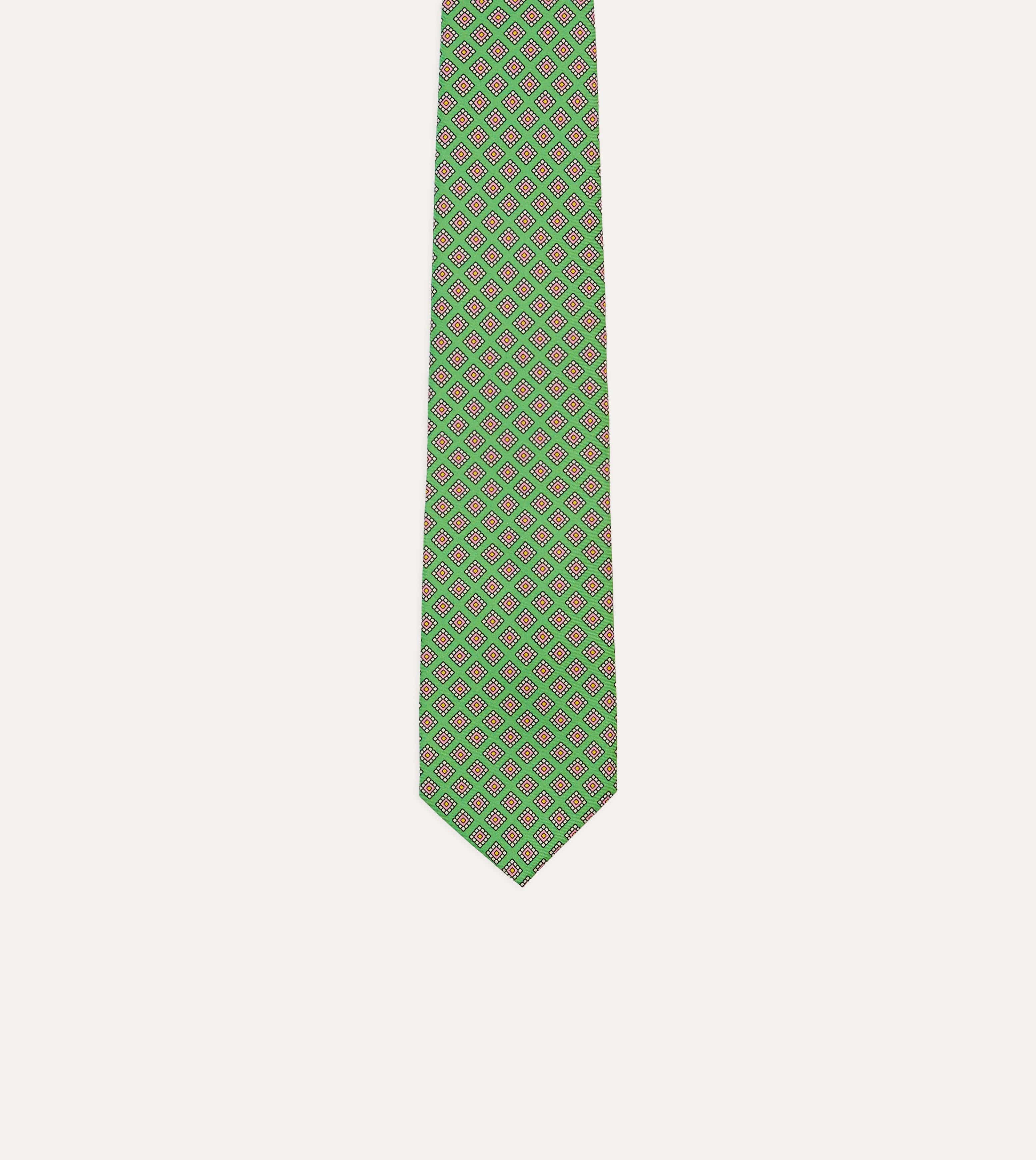 An ornate square motif simply exudes elegance, particularly when printed on pure silk and hand rolled by our dedicated tiemakers in the heart of east London.