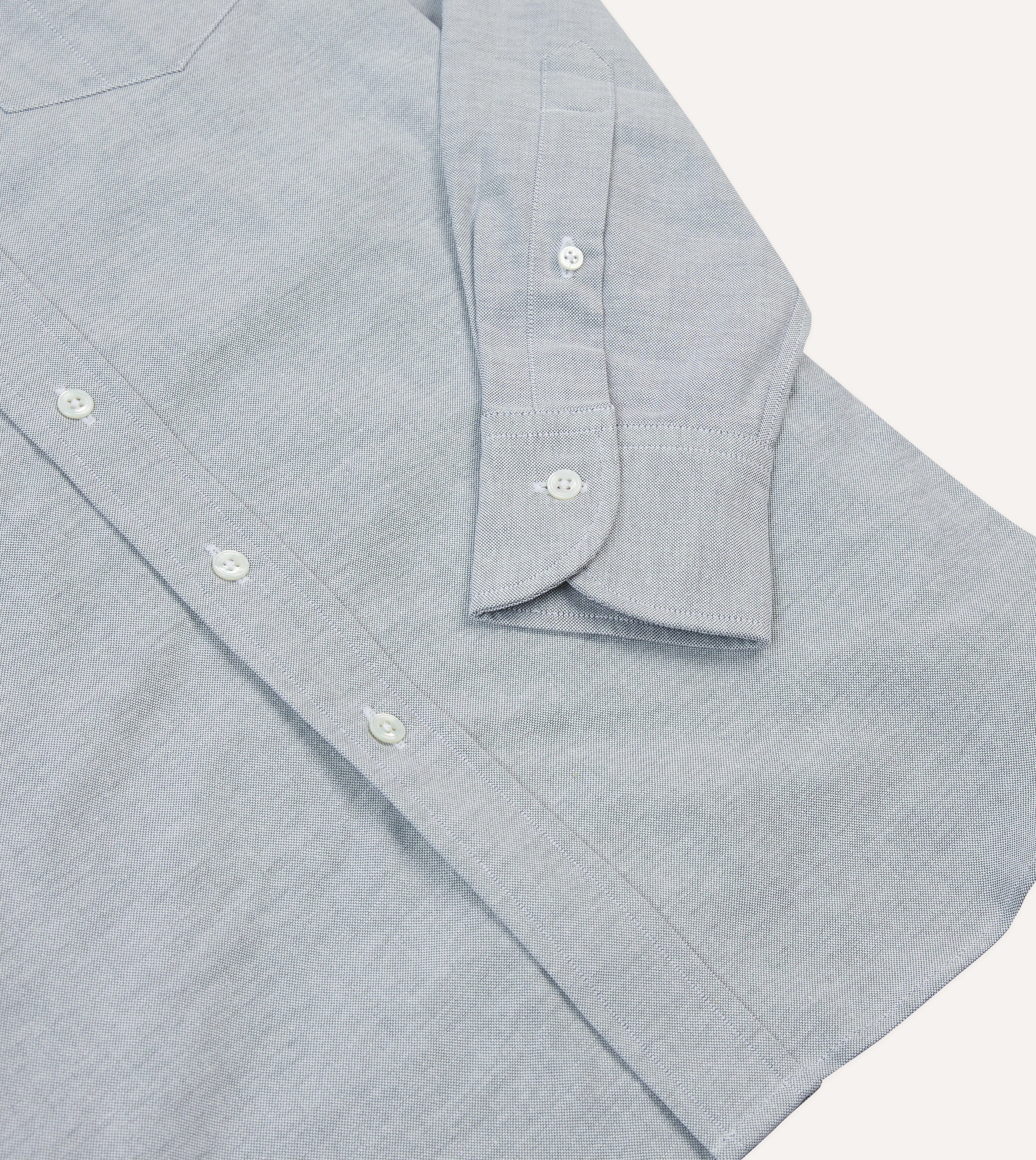 Grey Cotton Oxford Cloth Button-Down Shirt