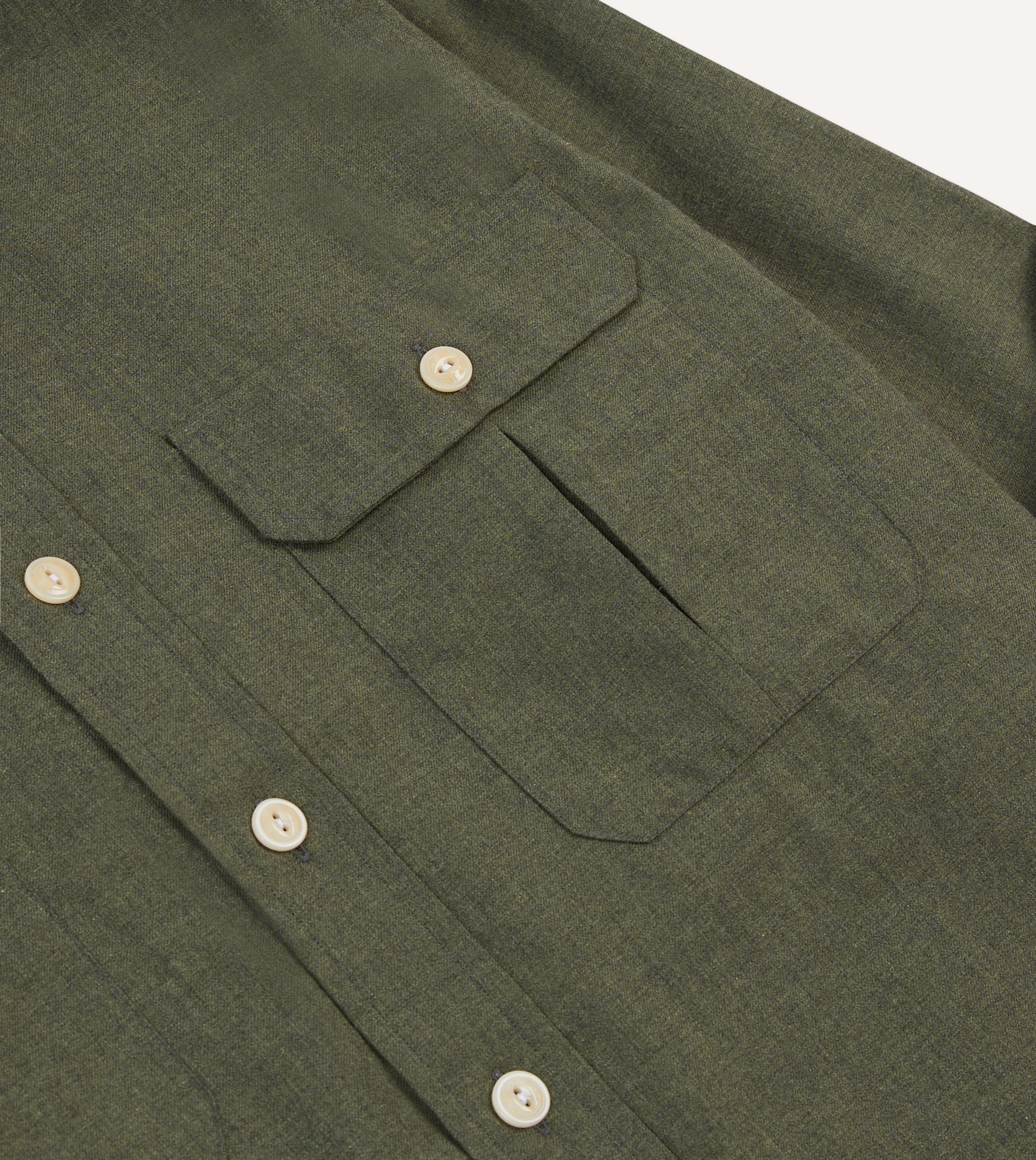 Khaki Green Cotton Flannel Two-Pocket Work Shirt