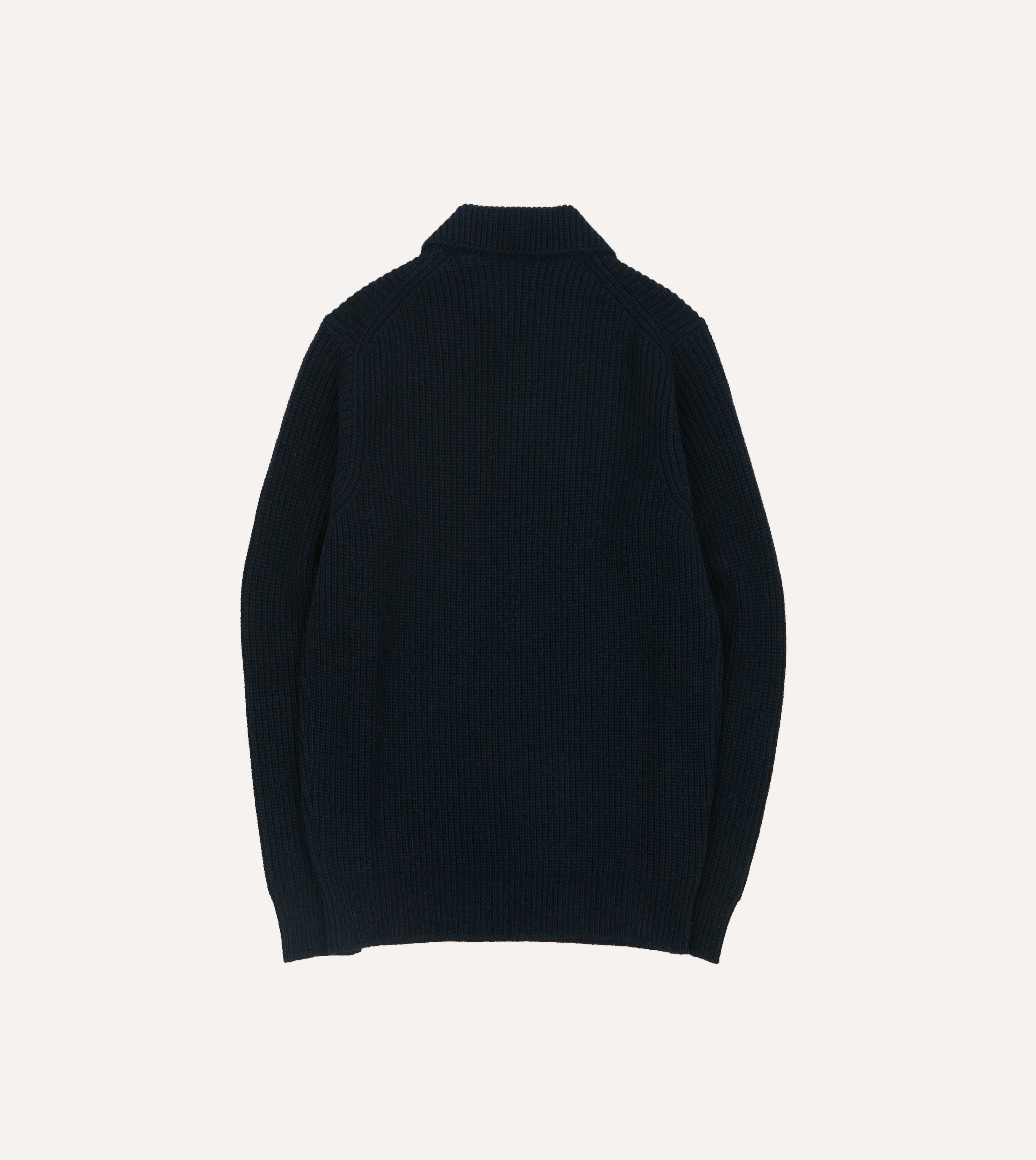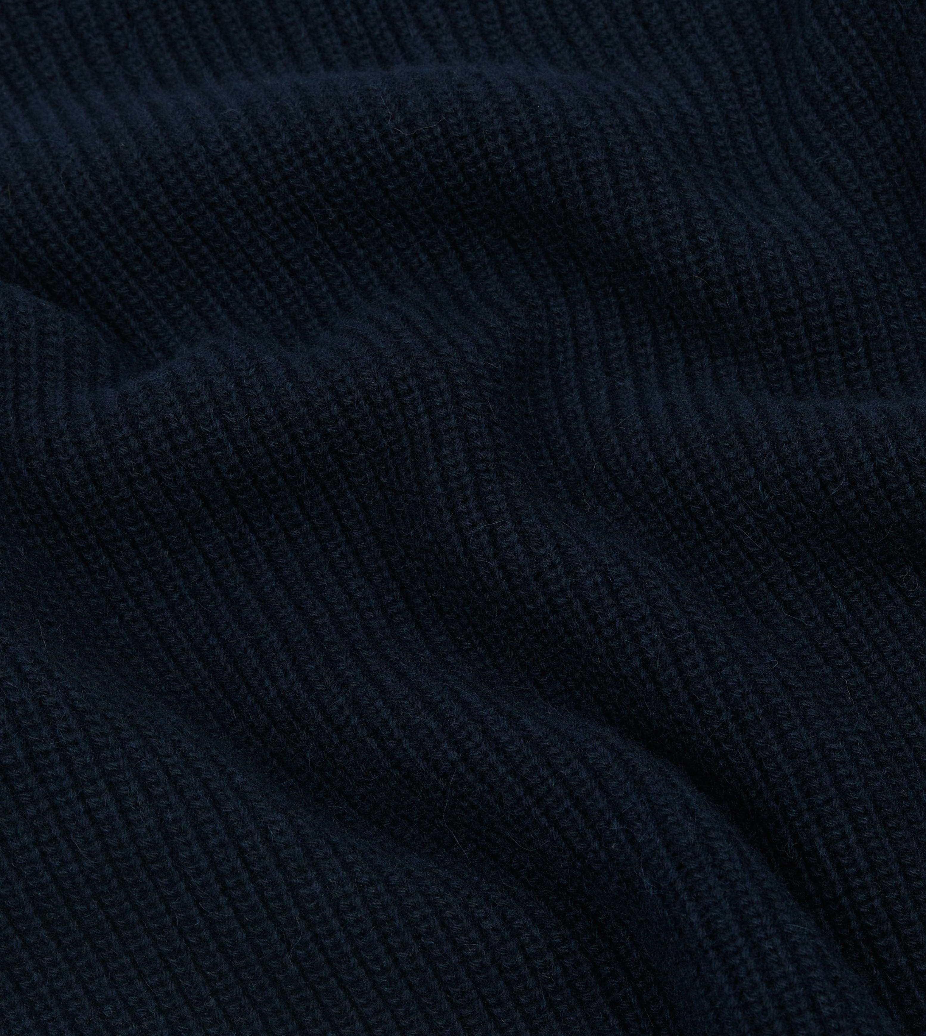 Navy Alpaca Lambswool Ribbed Integral Collar Jumper