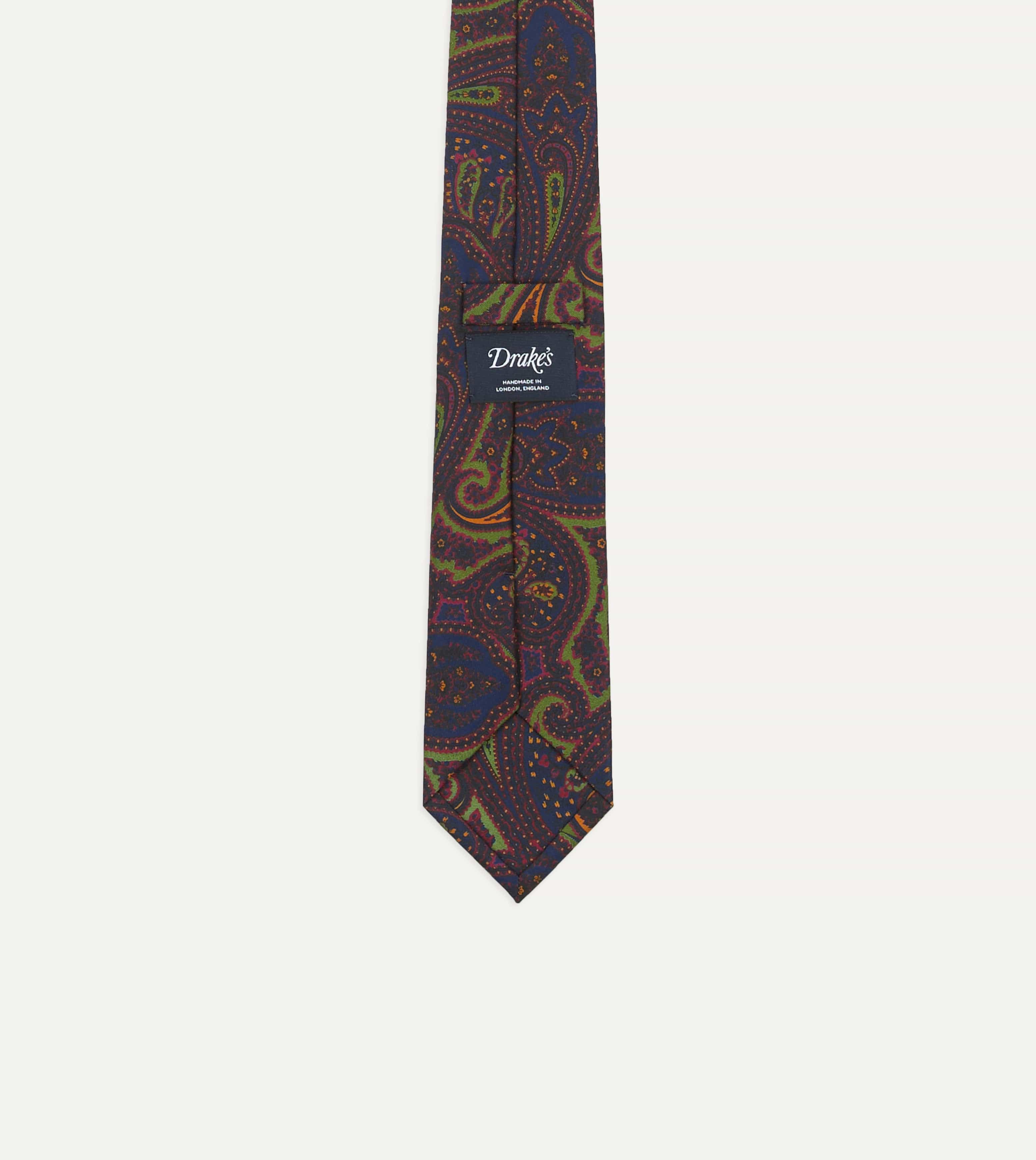 Navy and Green Large Paisley Print Madder Silk Self Tipped Tie