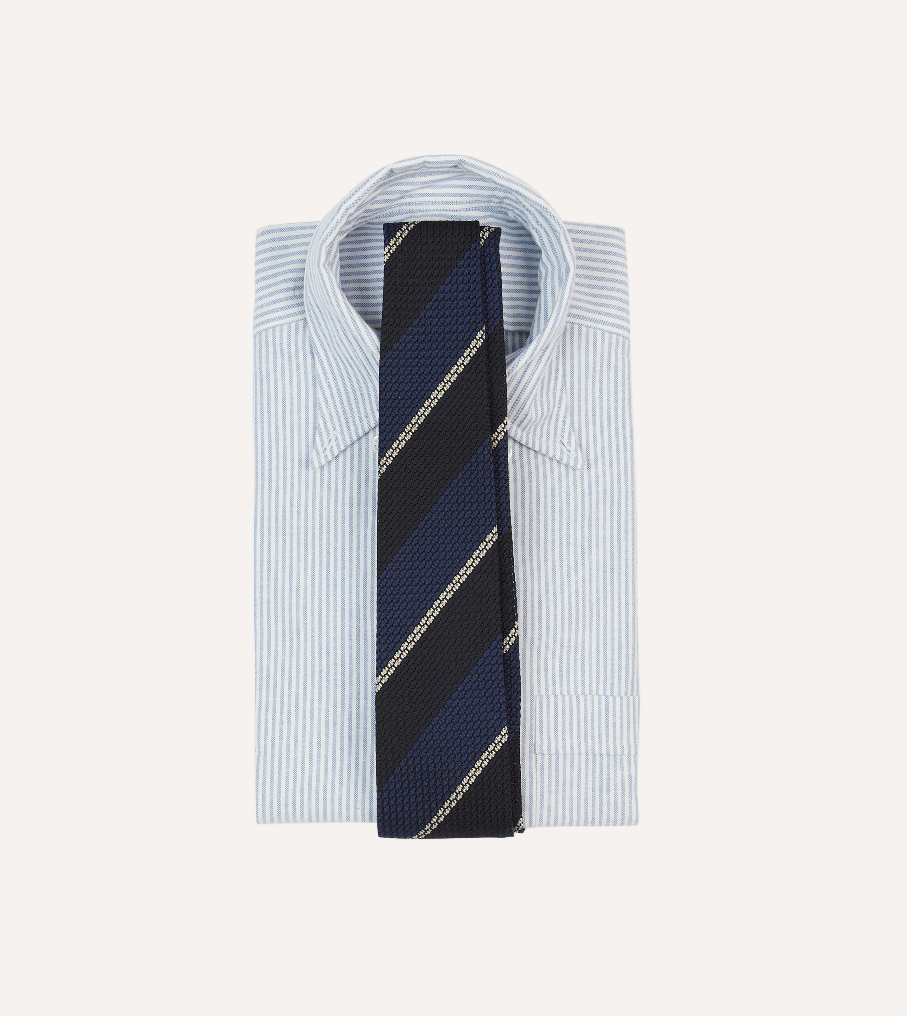 Navy and White Multi Stripe Hand Rolled Silk Grenadine Tie