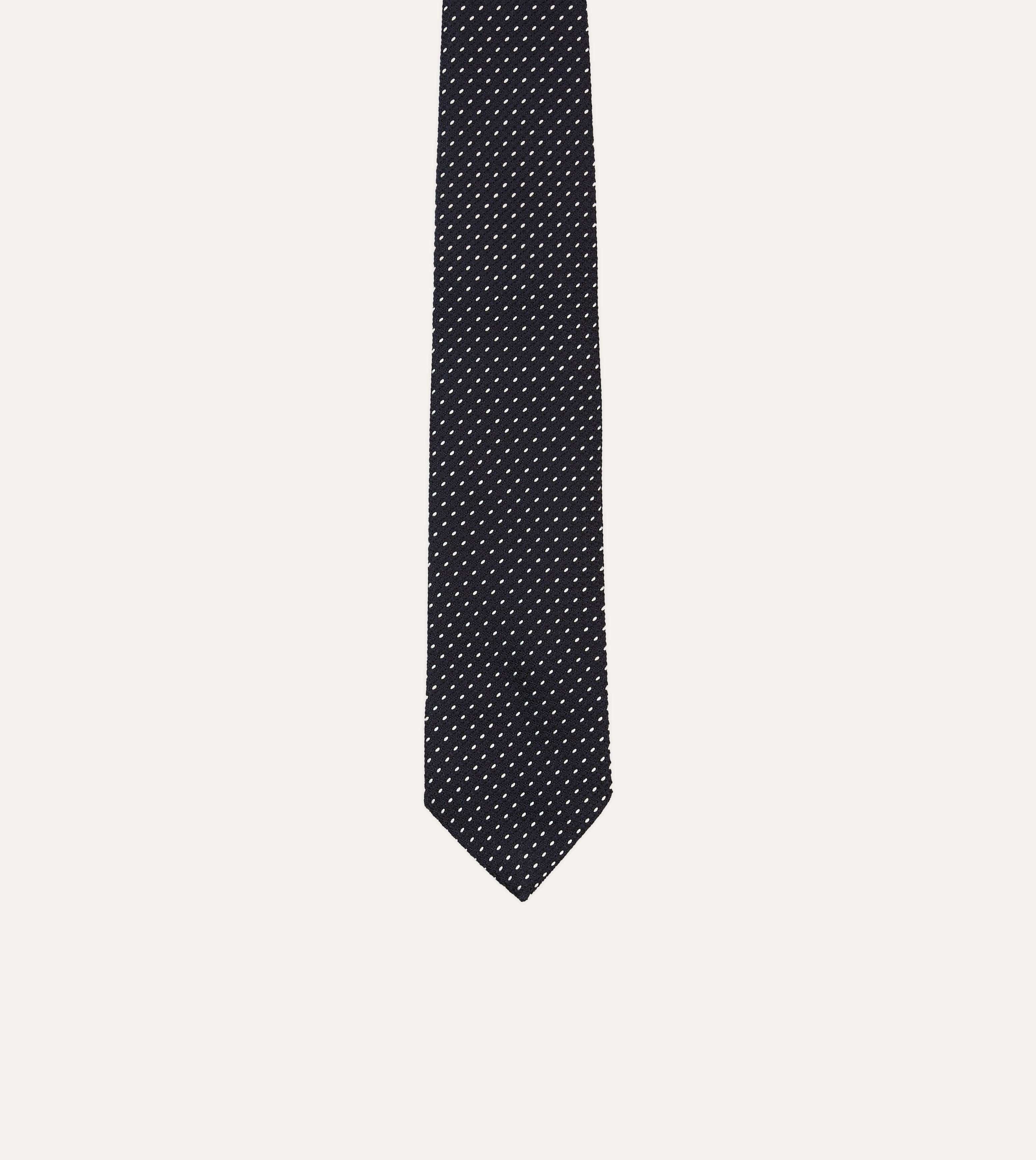 Navy and White Stitching Woven Grenadine Silk Tipped Tie