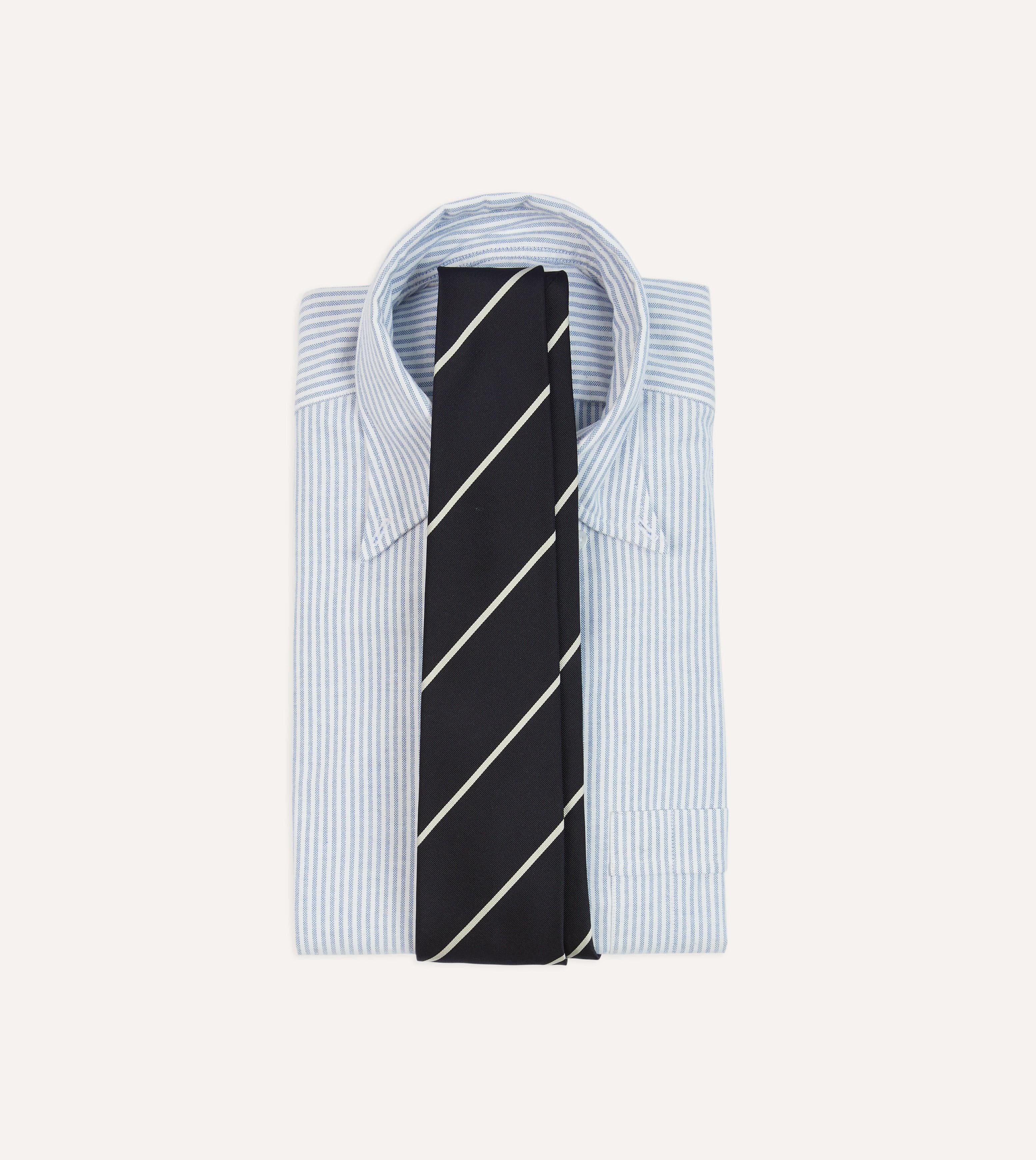 A striped pure silk tie is one of the most enduring pieces of neckwear available, redolent of earlier periods of style, while retaining a distinctly modern feel.
