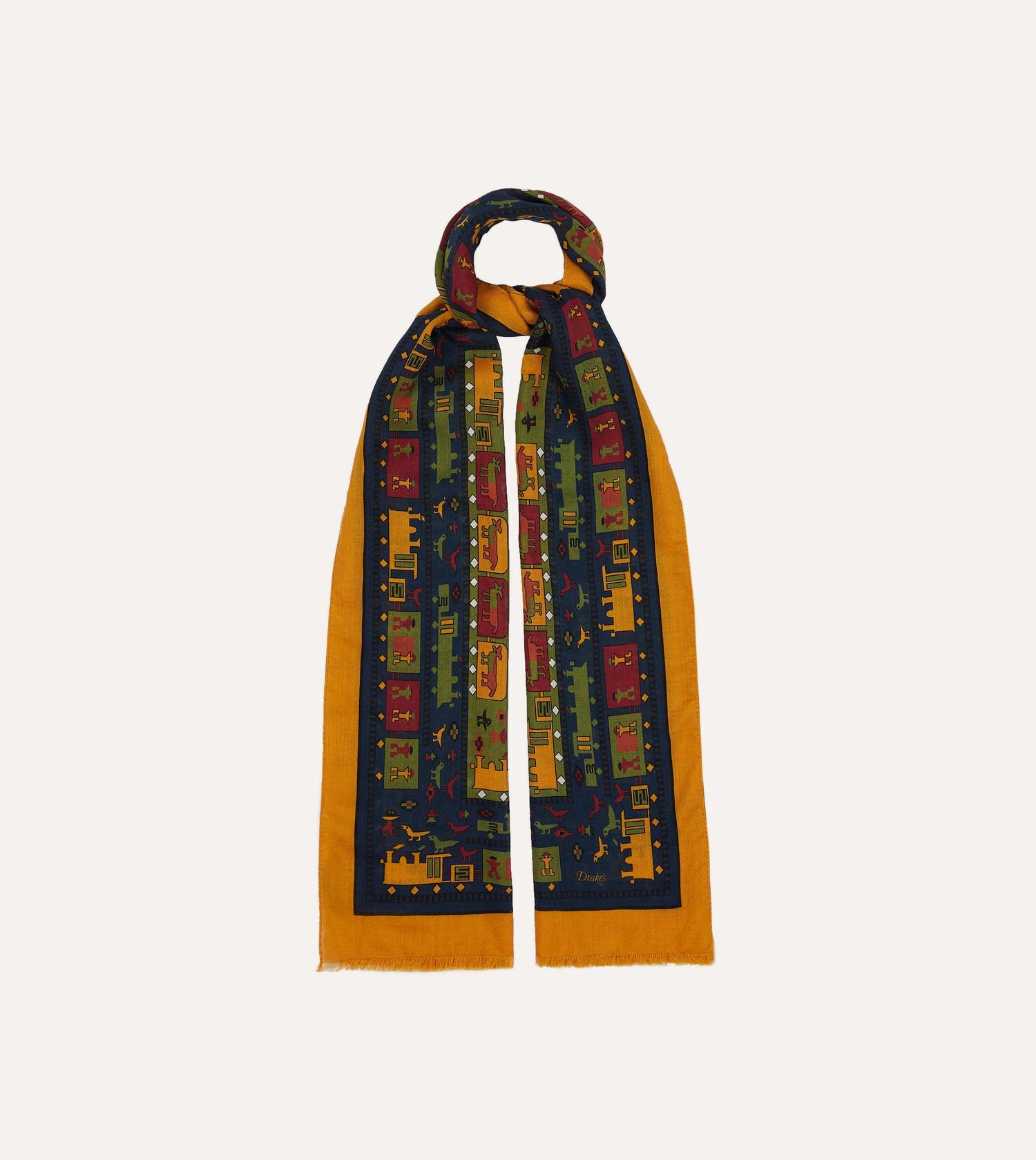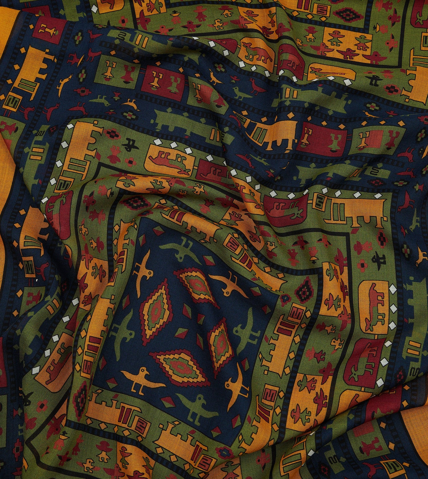 Navy and Yellow Navajo Print Wool-Silk Scarf