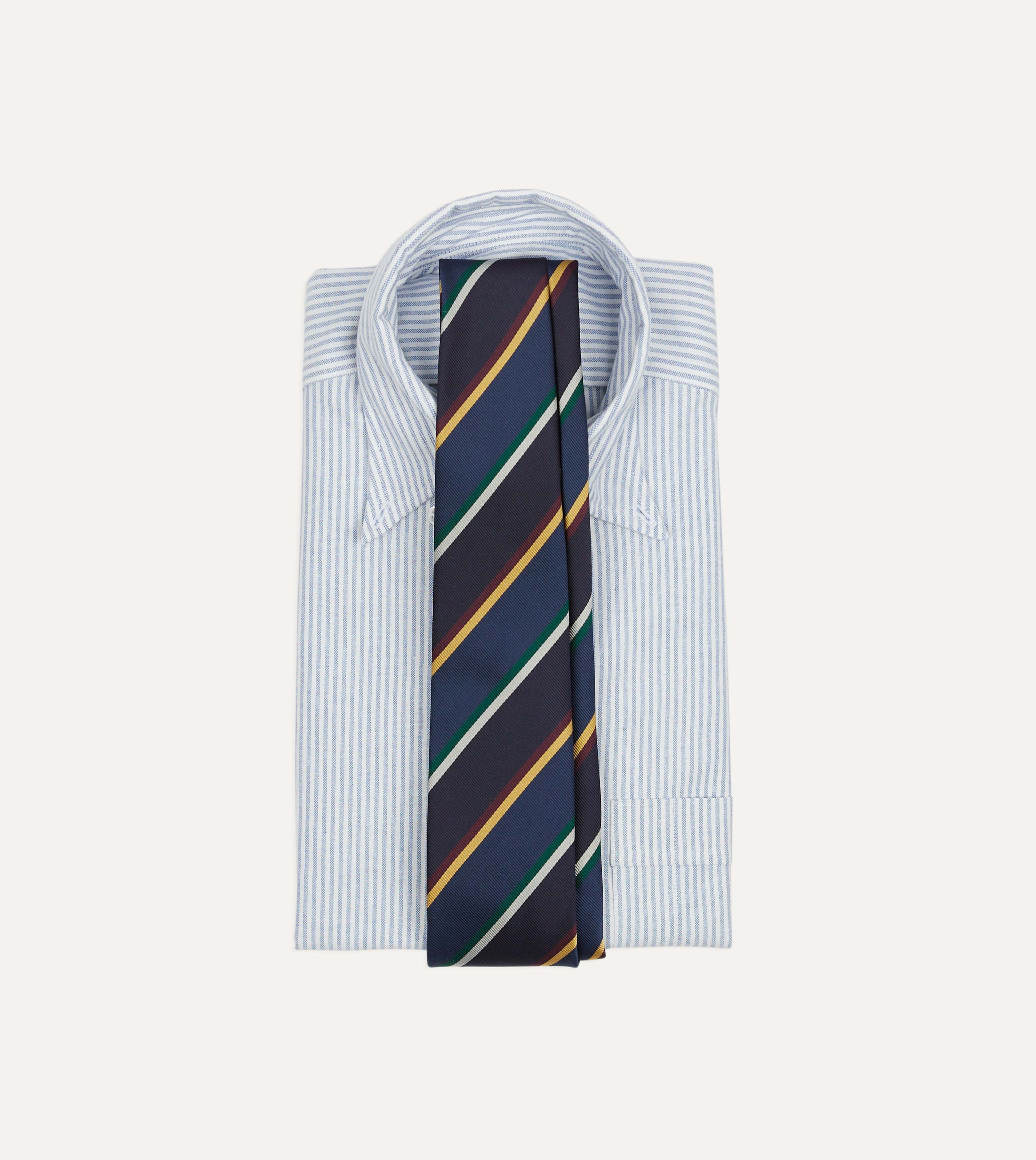 A striped silk tie is one of the most enduring pieces of neckwear available, redolent of earlier periods of style, while retaining a distinctly modern feel.