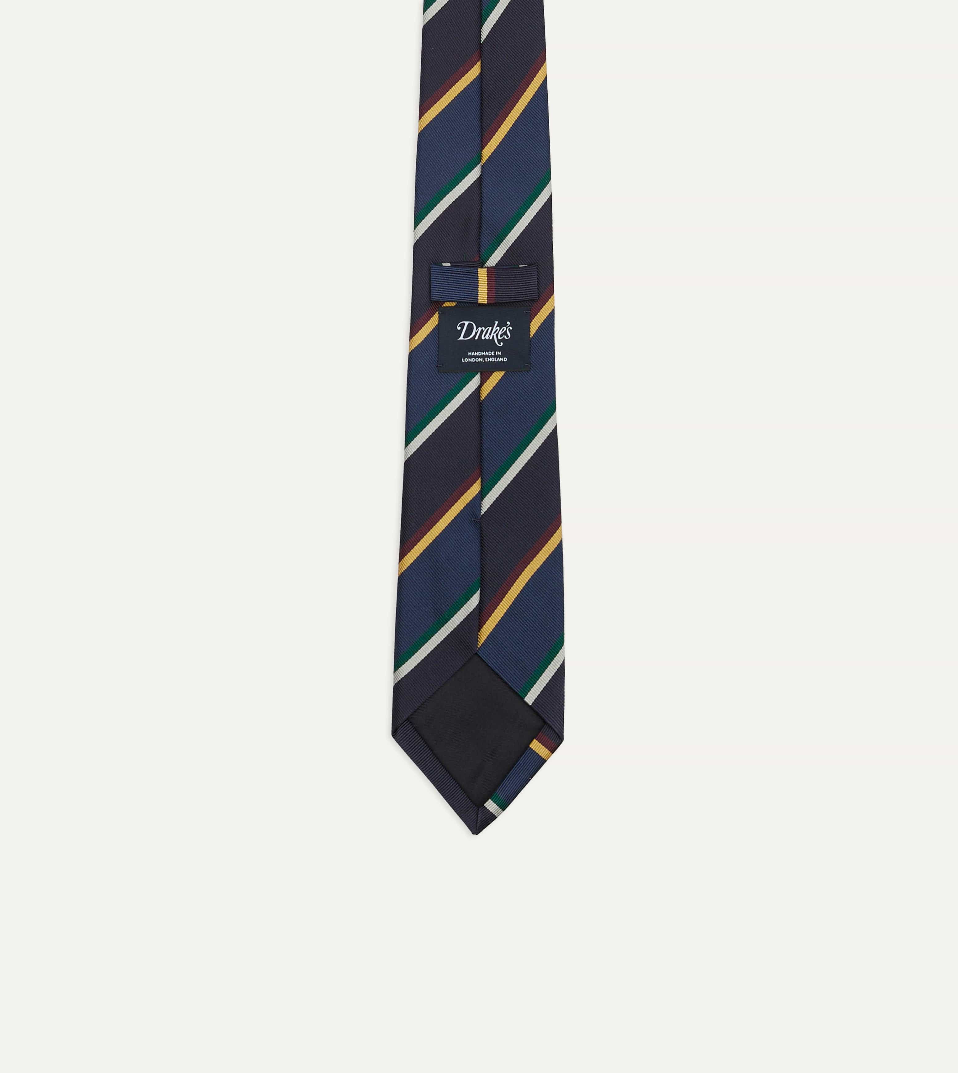 Navy, Blue and Red Multi Stripe Silk Tipped Tie