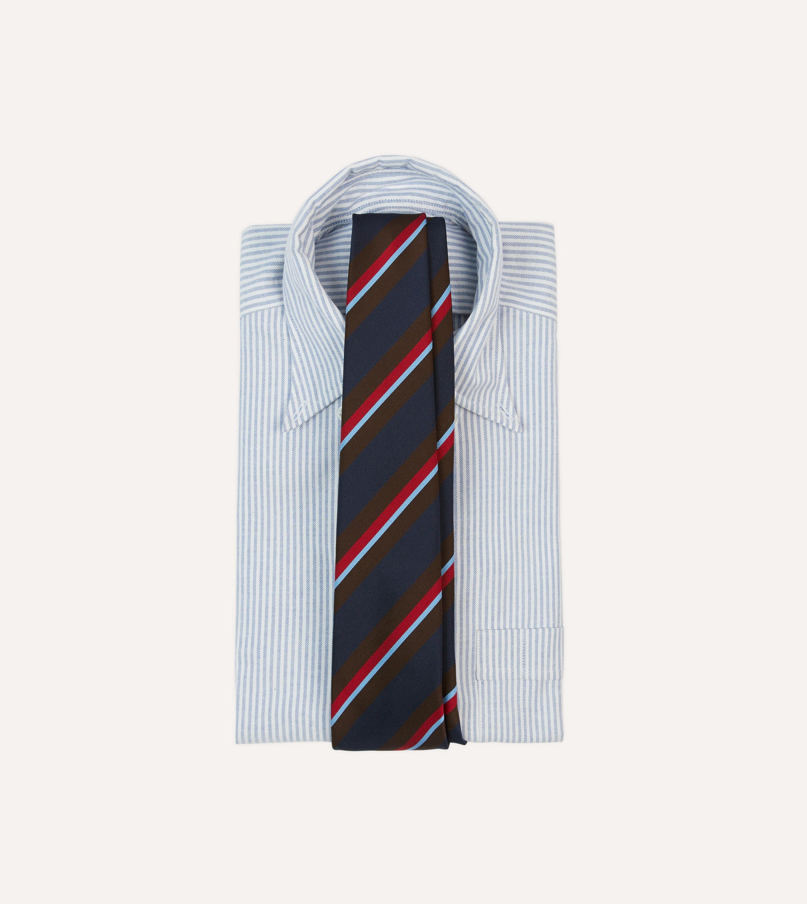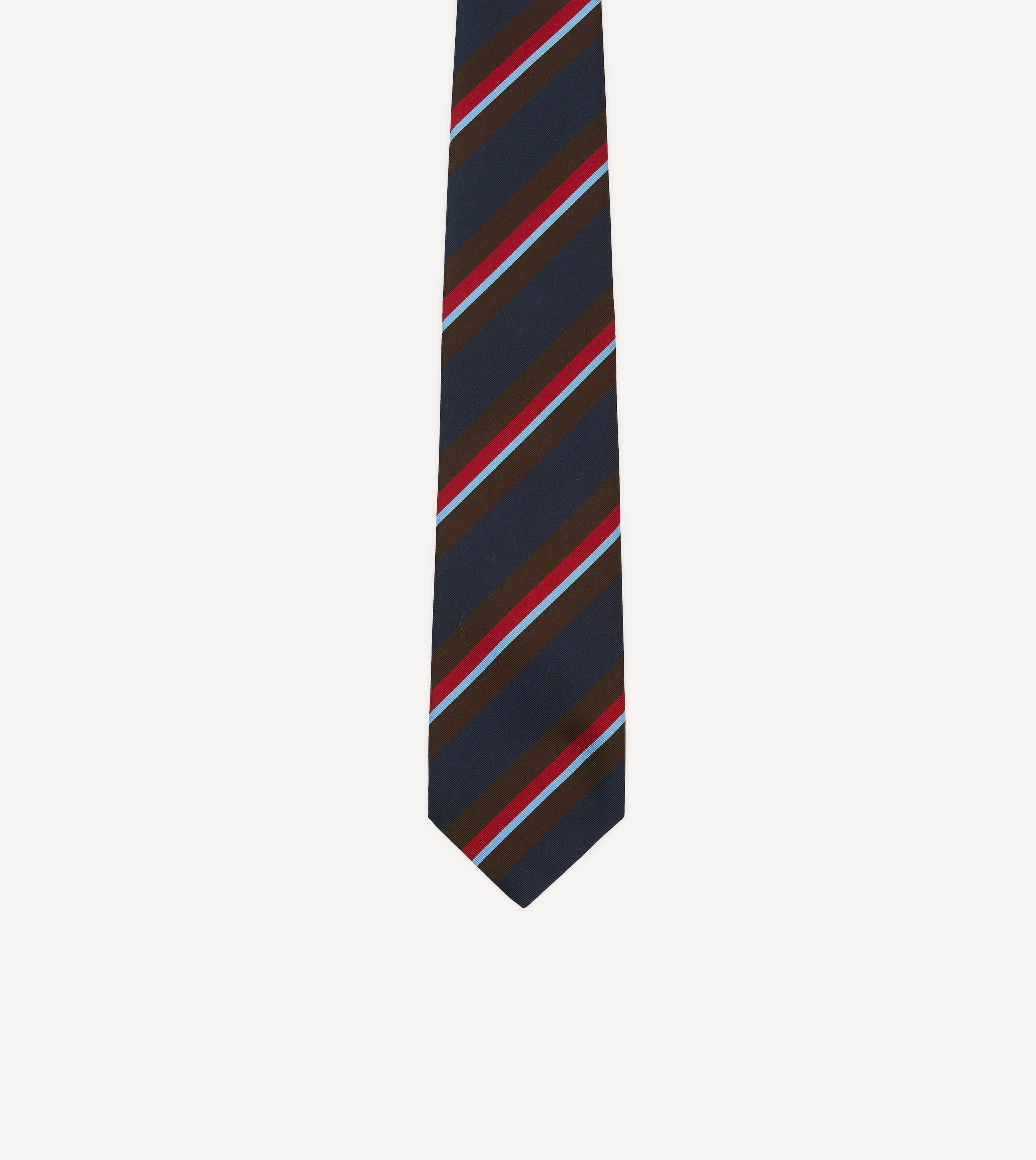 Navy, Brown and Red Stripe Mogador Silk Tipped Tie