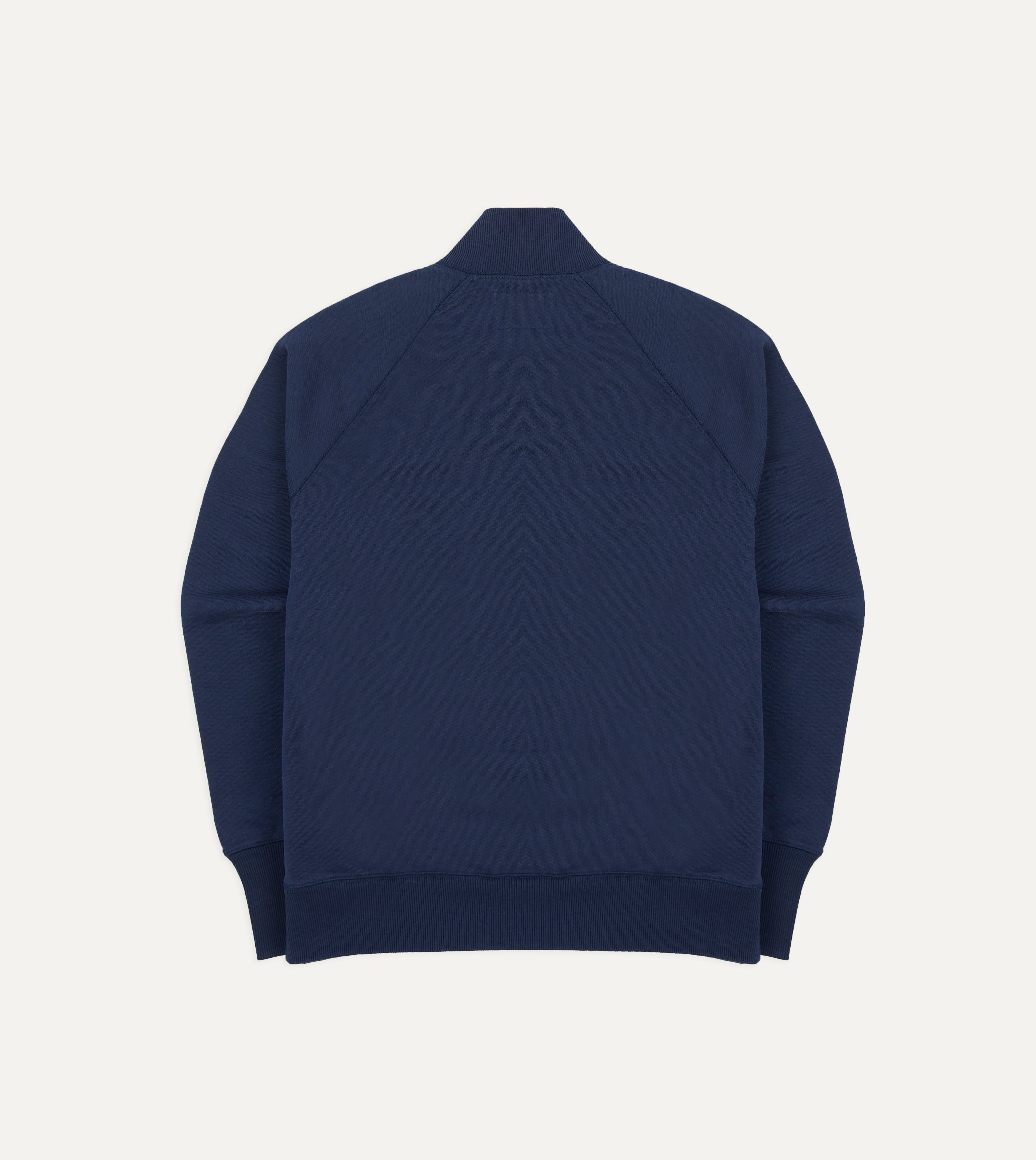Styled after vintage examples of mid-century running gear, this quarter zip sweatshirt is made from a densely woven 16.2oz cotton jersey and features ribbed cuffs, a kangaroo pocket, raglan sleeves, and our monogram motif, chain stitched in wool on the sleeve.